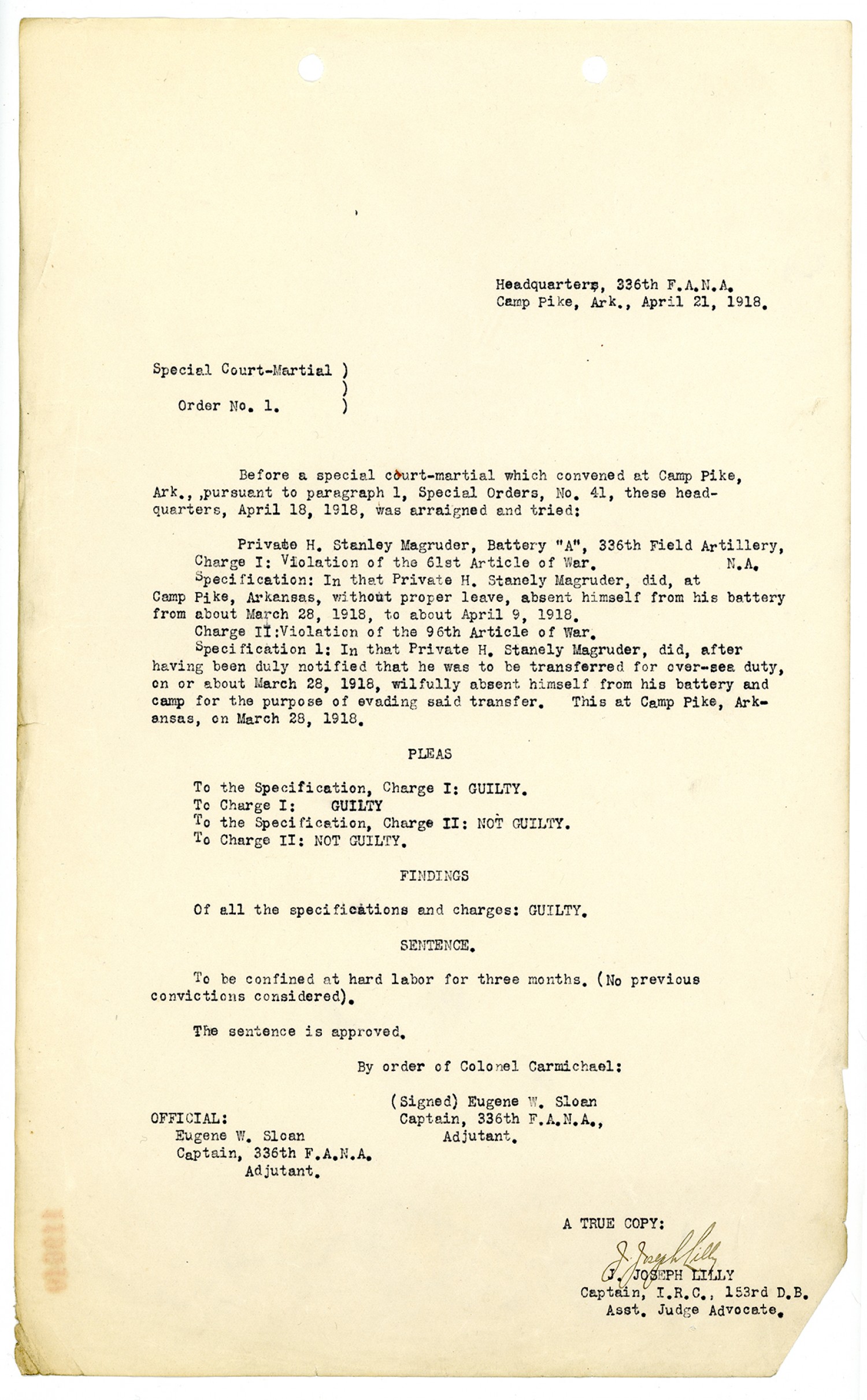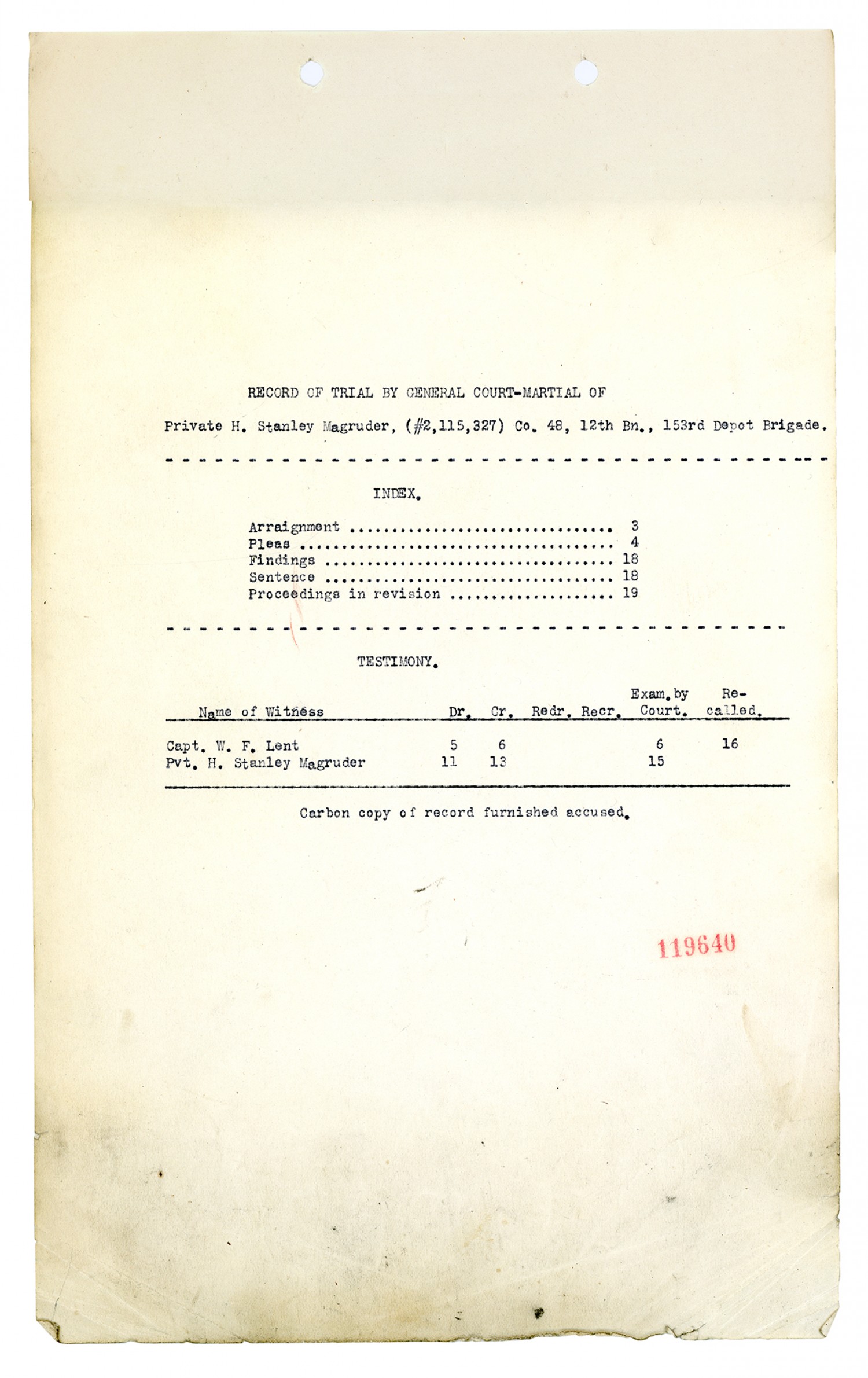| Source | Magruder, H. Stanley; Court-Martial Case Files, 1917-1938; Records of the Office of the Judge Advocate General (Army), 1792-2010, Record Group 153; National Archives and Records Administration-National Personnel Records Center (St. Louis). |