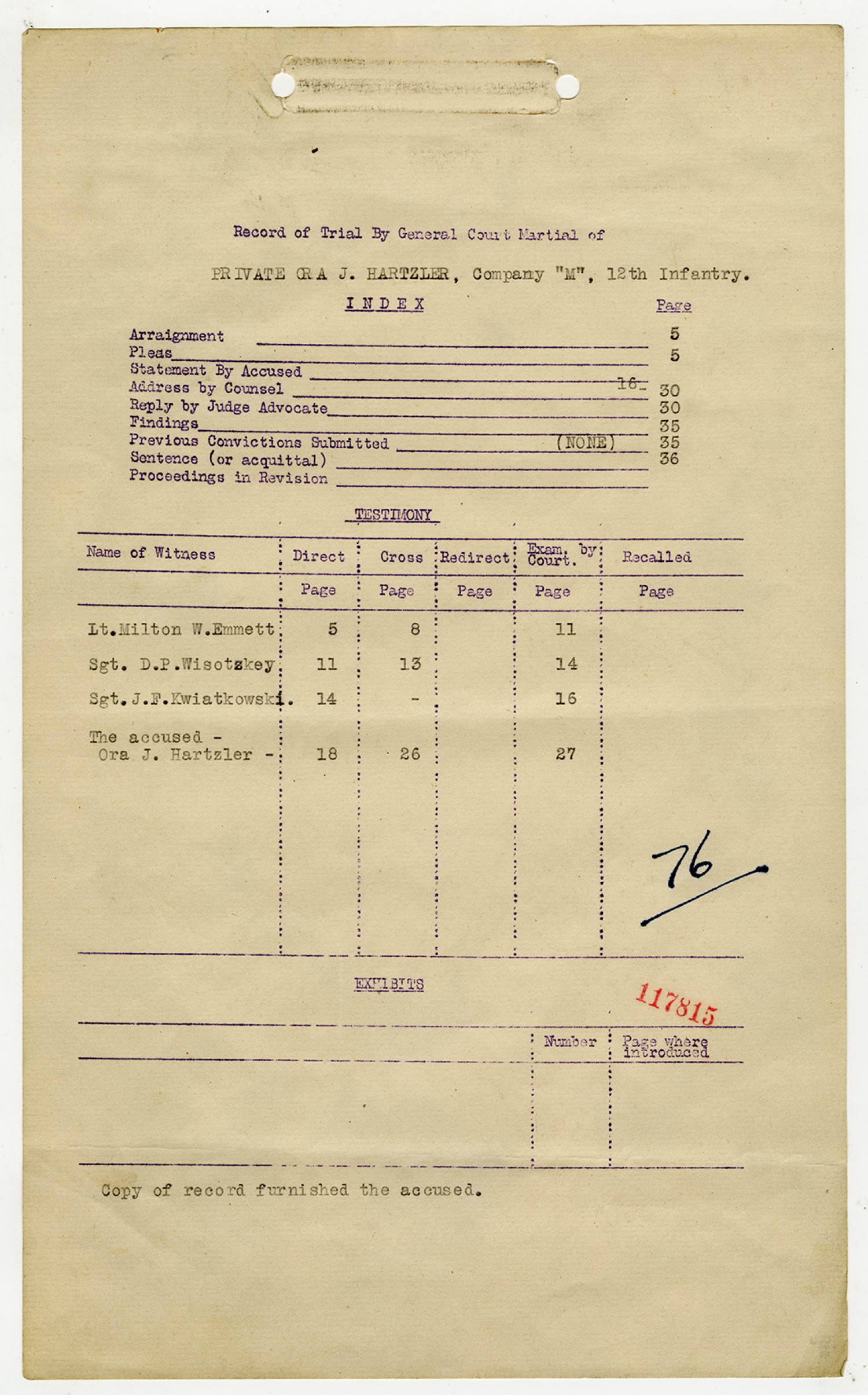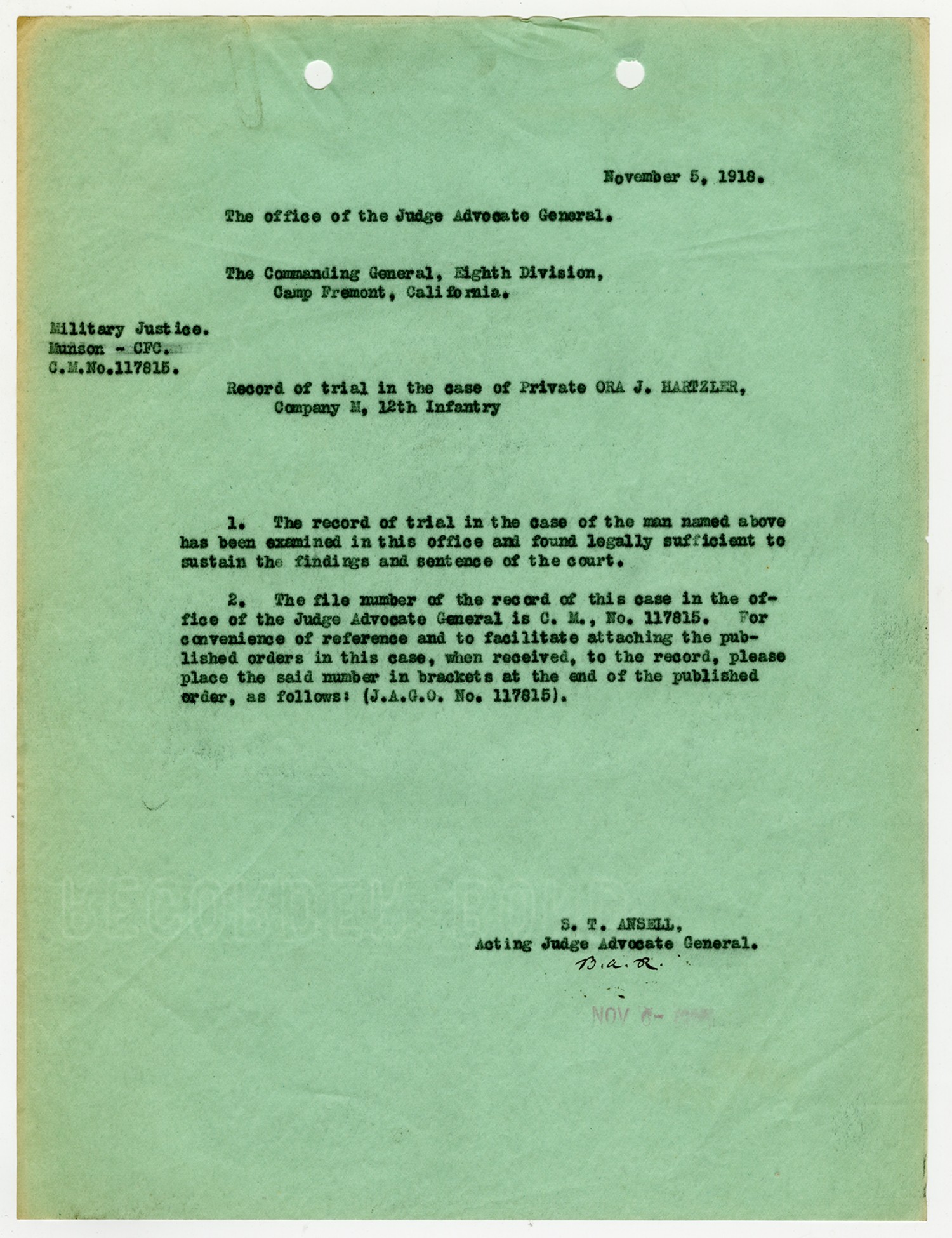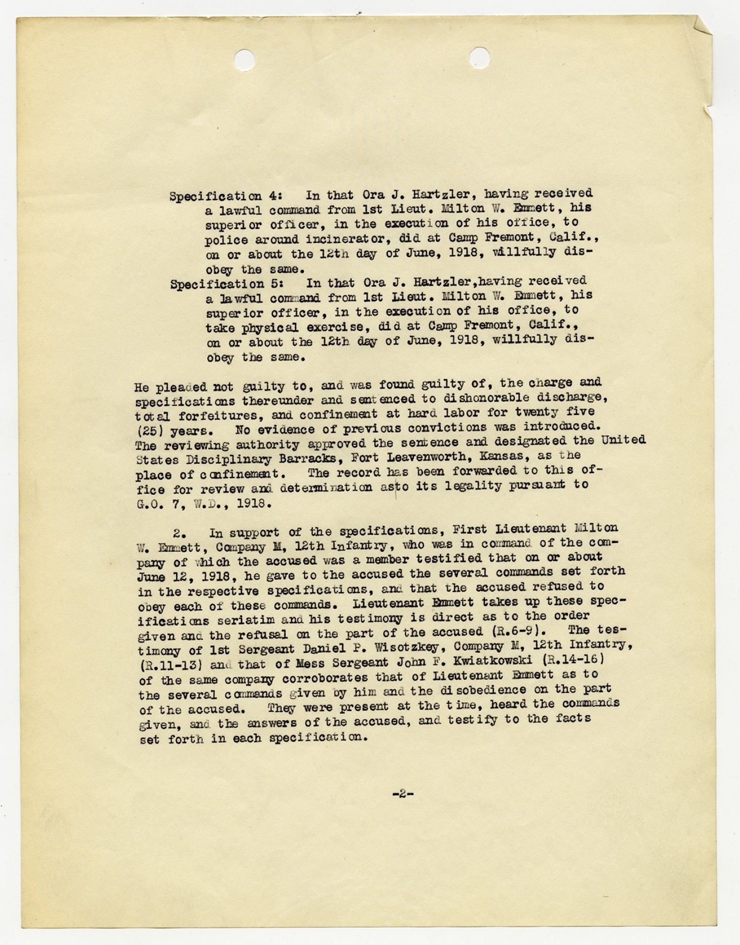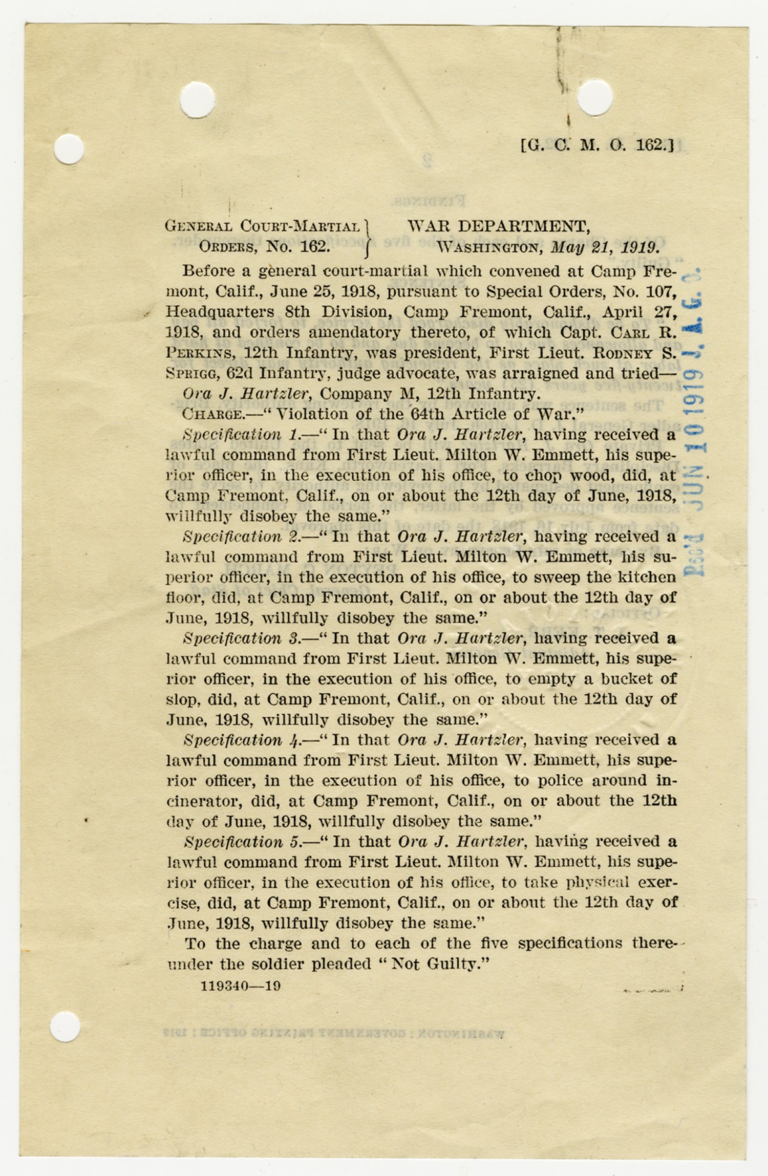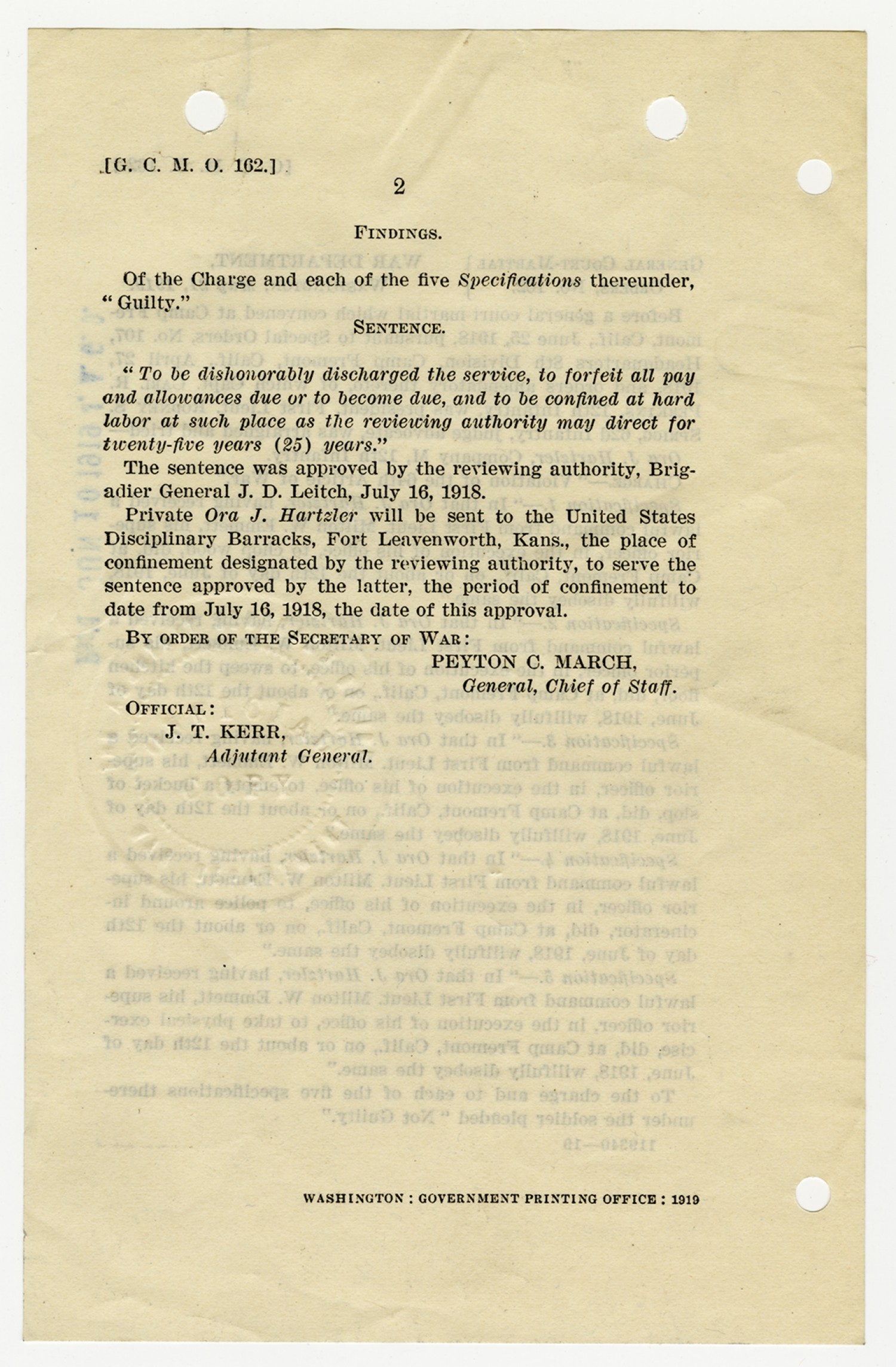 | Source | Hartzler, Ora; Court-Martial Case Files, 1917-1938; Records of the Office of the Judge Advocate General (Army), 1792-2010, Record Group 153; National Archives and Records Administration-National Personnel Records Center (St. Louis). |