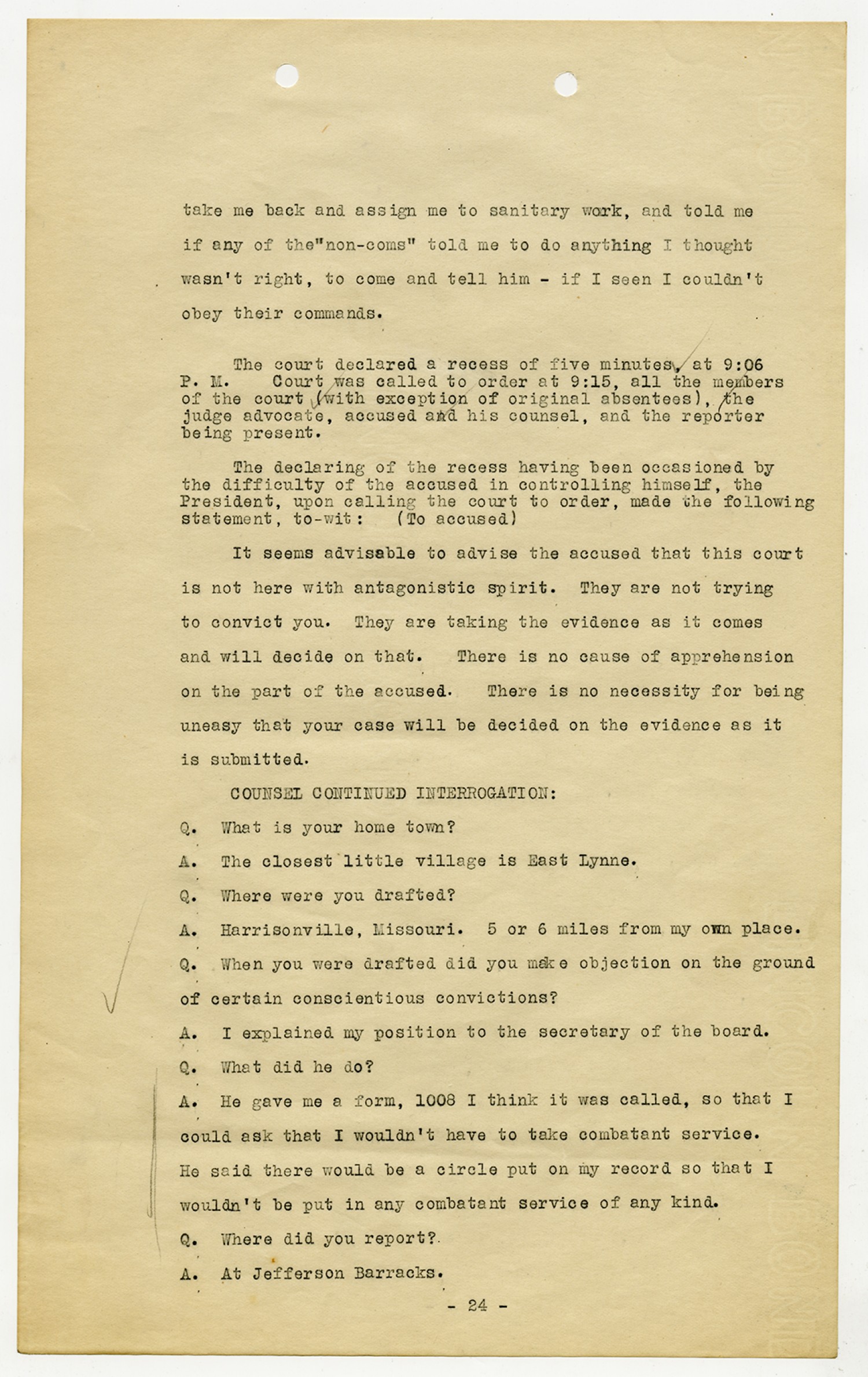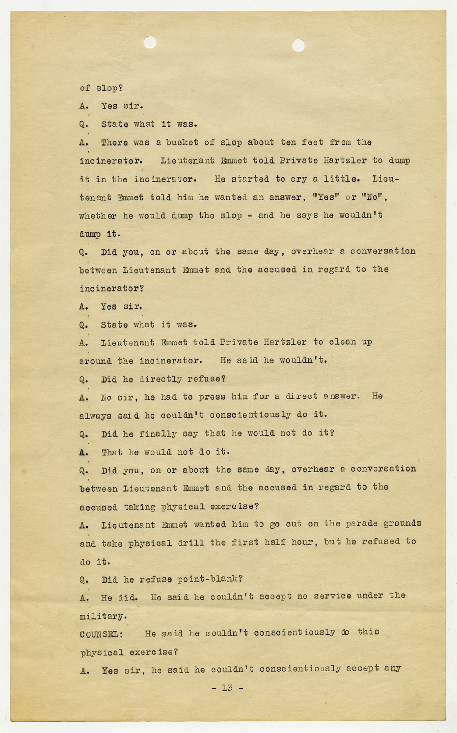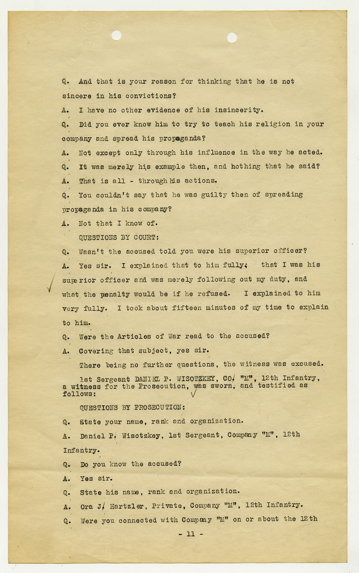 Ora Hartzler - Court Martial Files