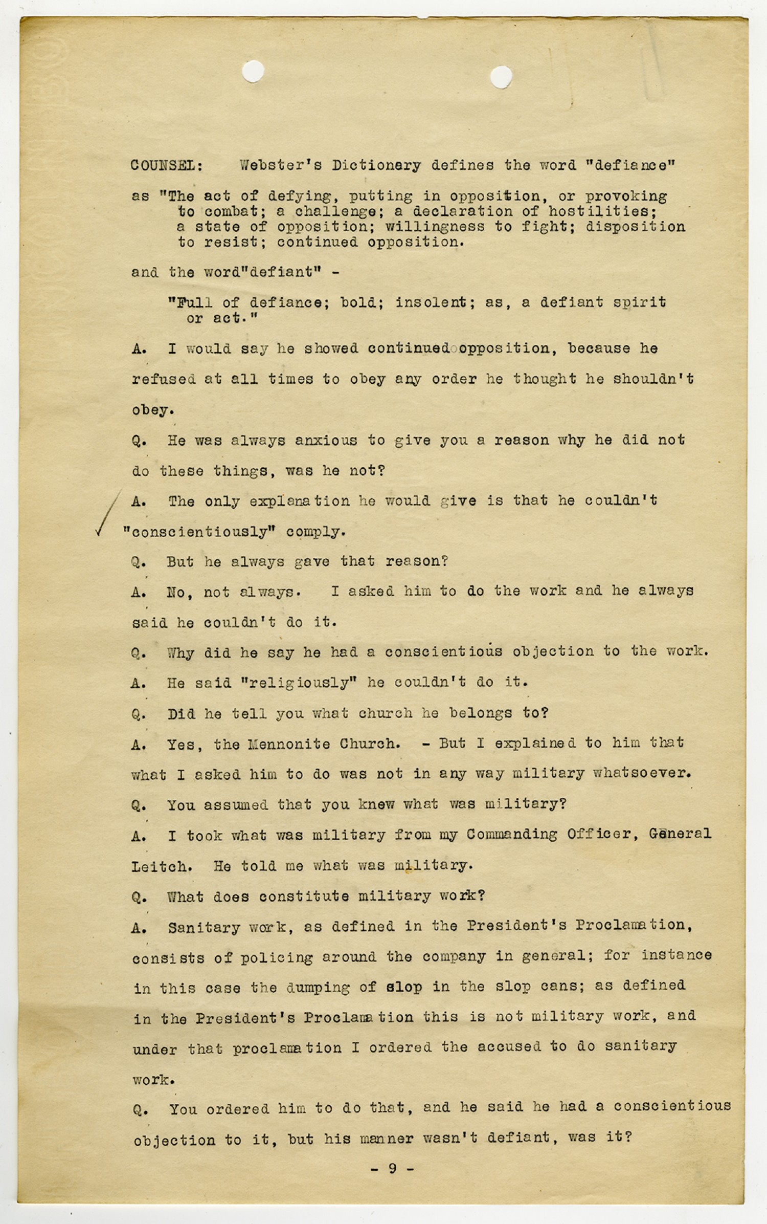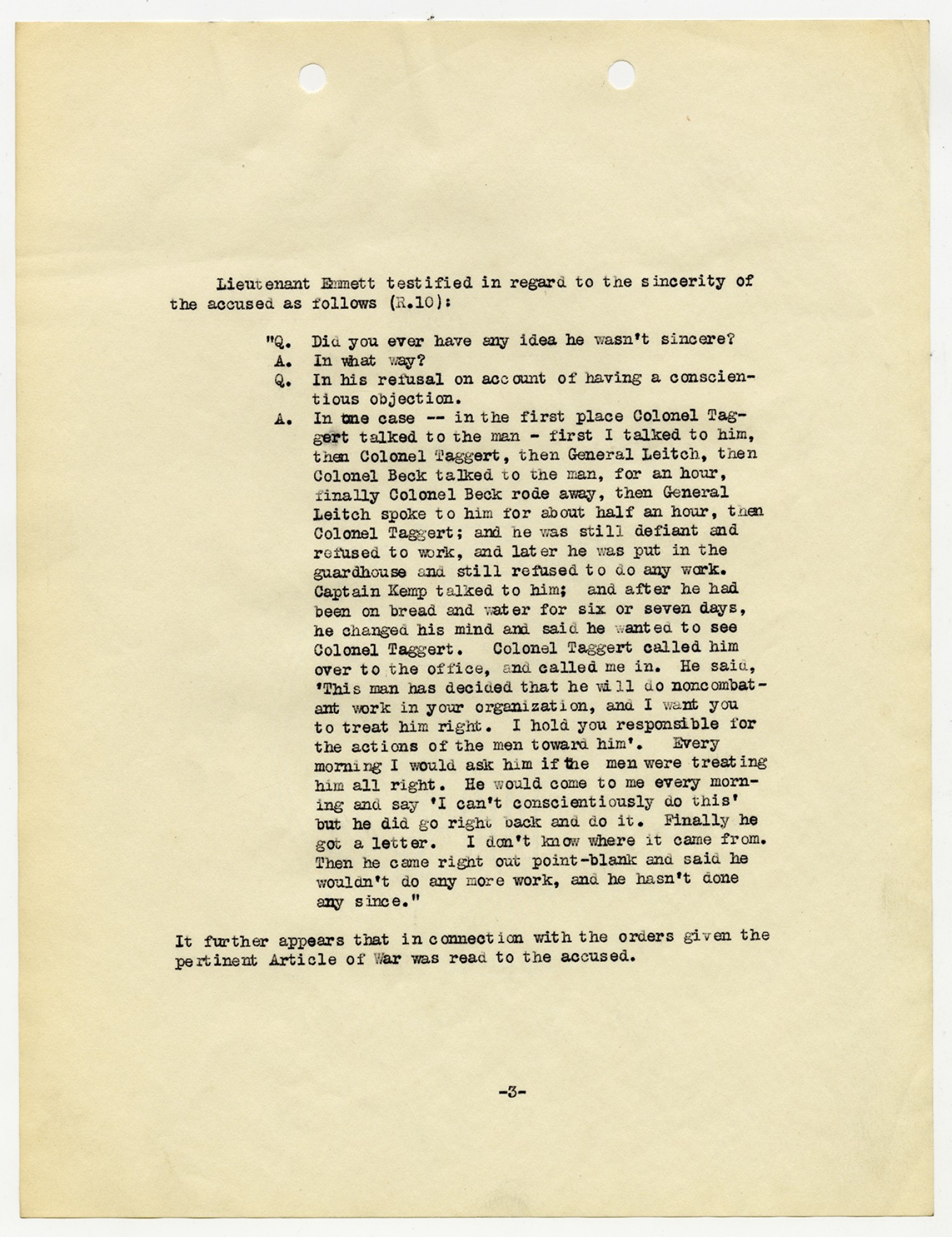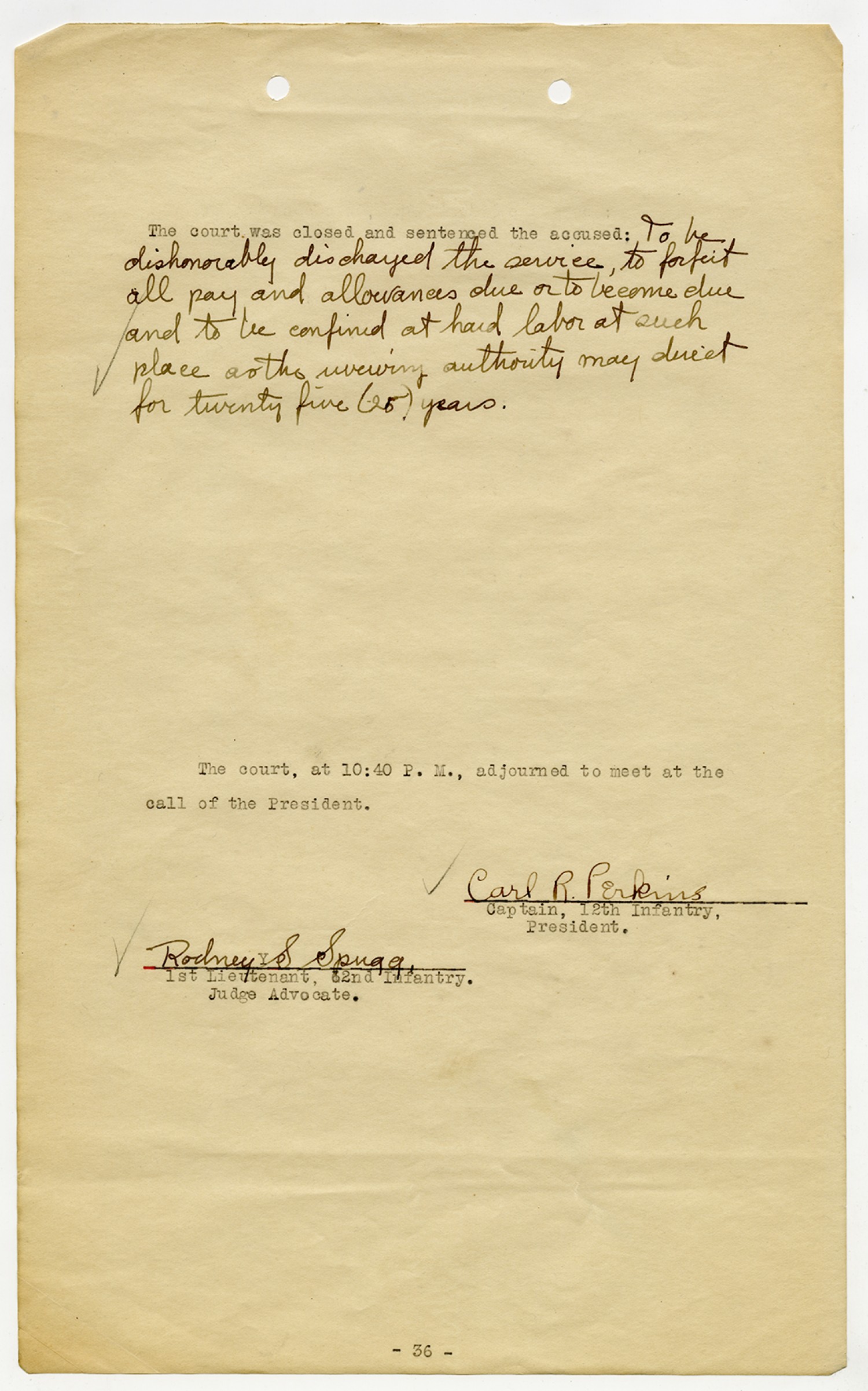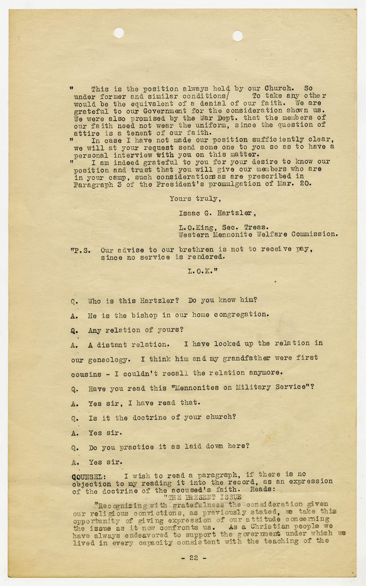 Ora Hartzler - Court Martial Files