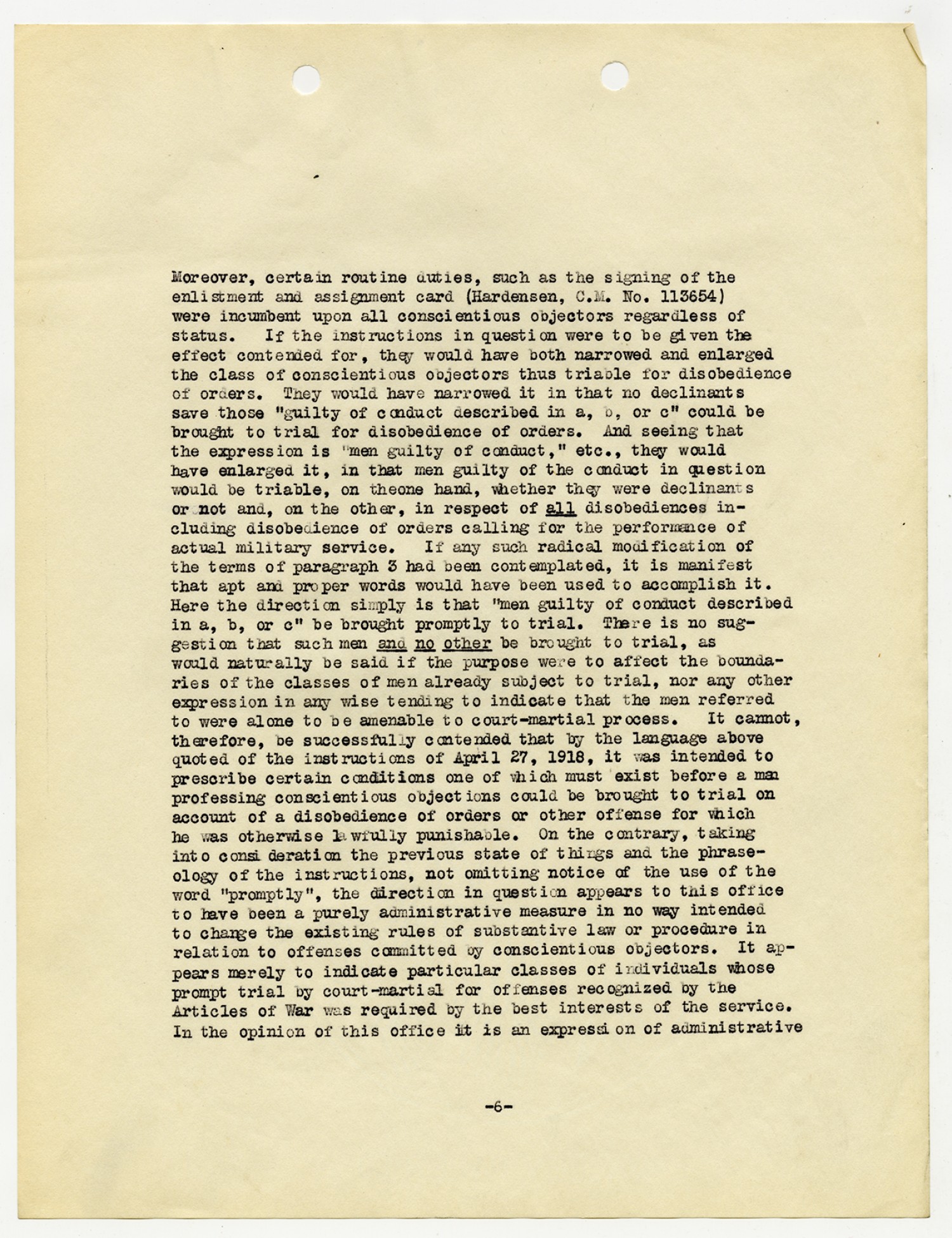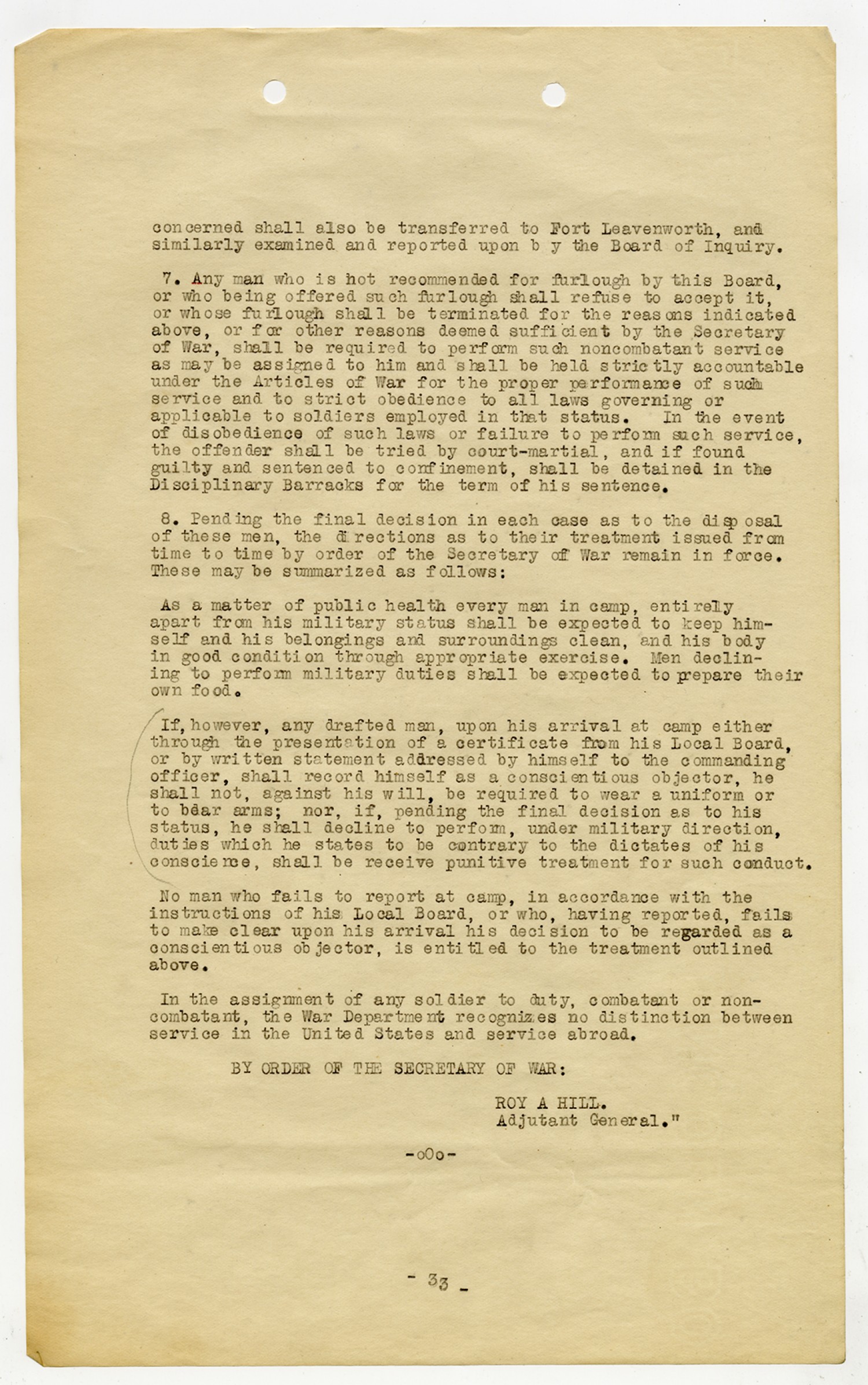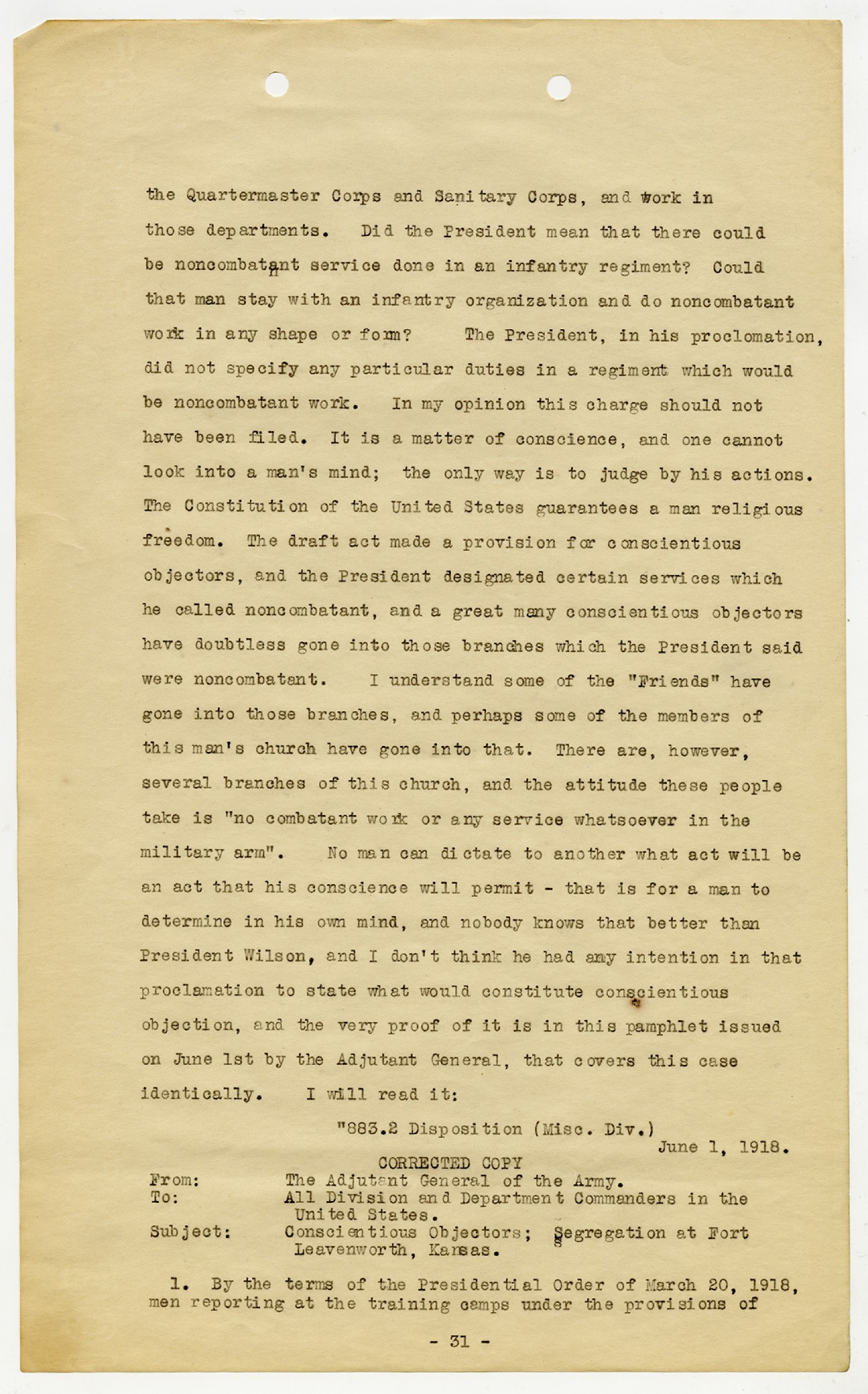 Enoch H. Crowder letter to the Adjutant General - February 8, 1919