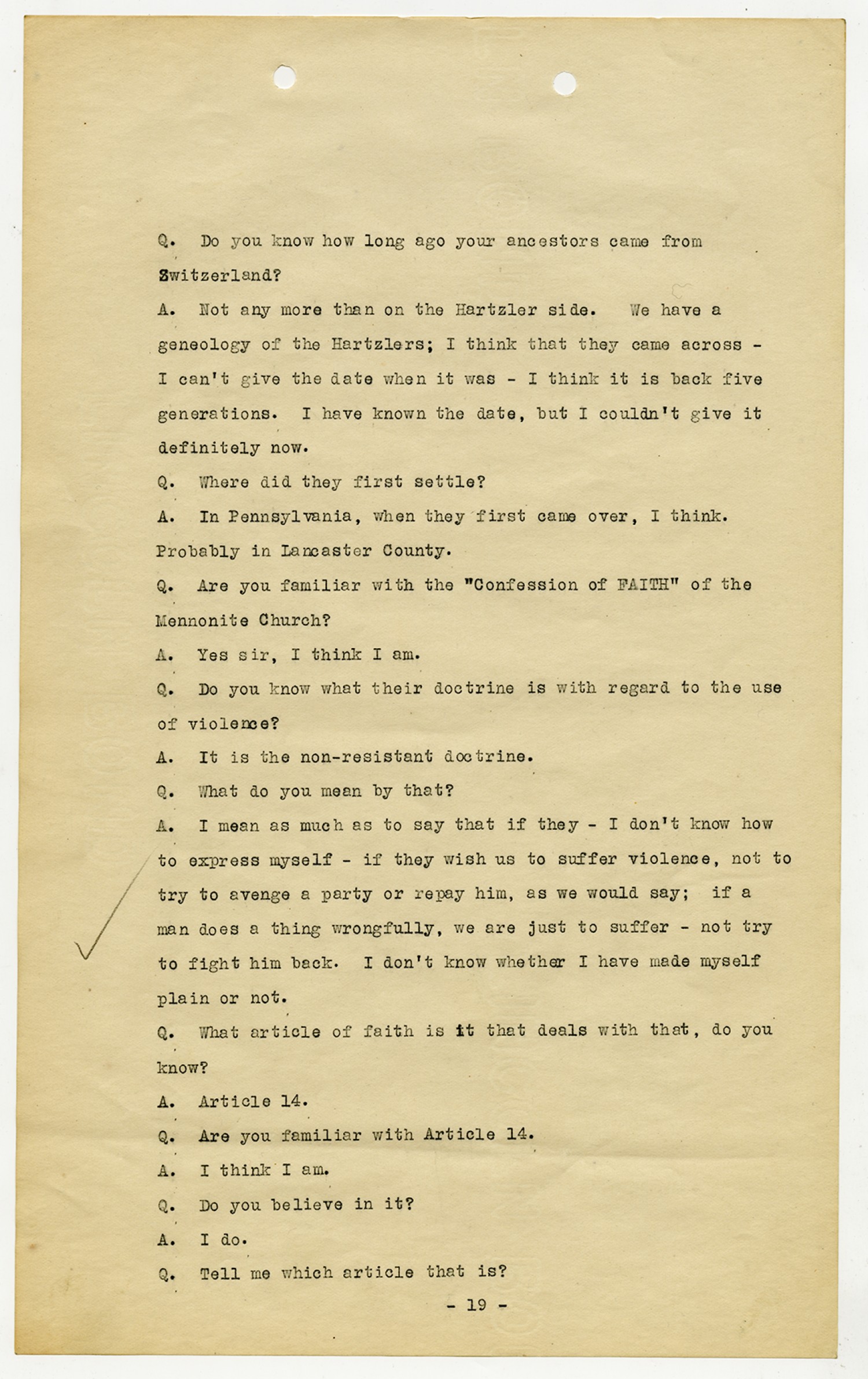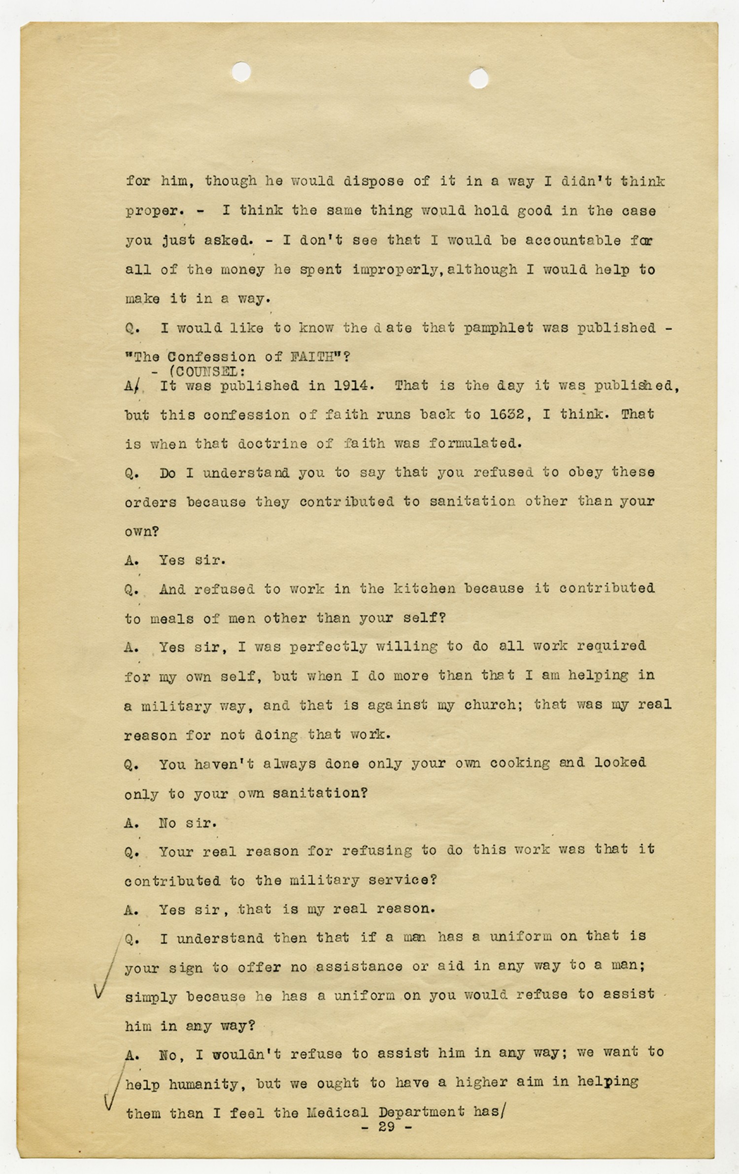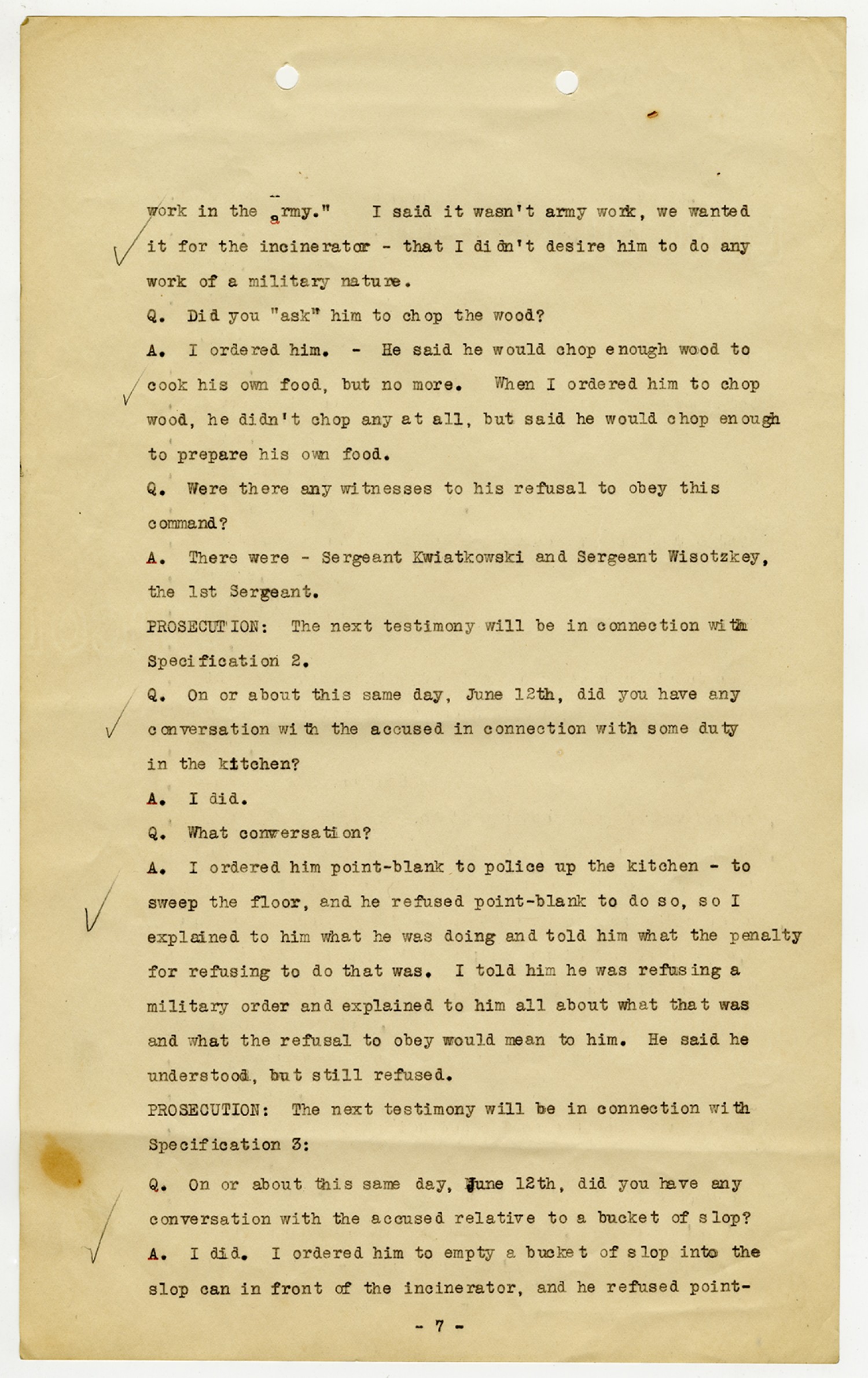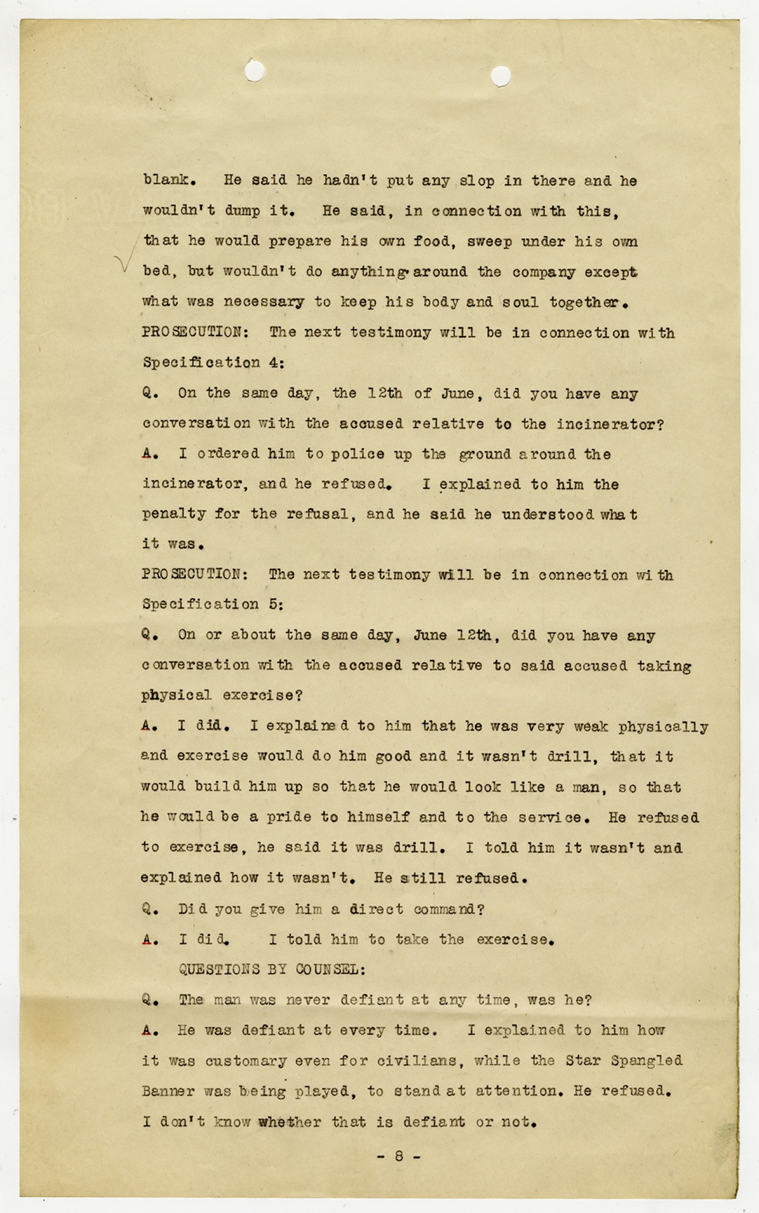Ora Hartzler Charge Sheet - June 12, 1918