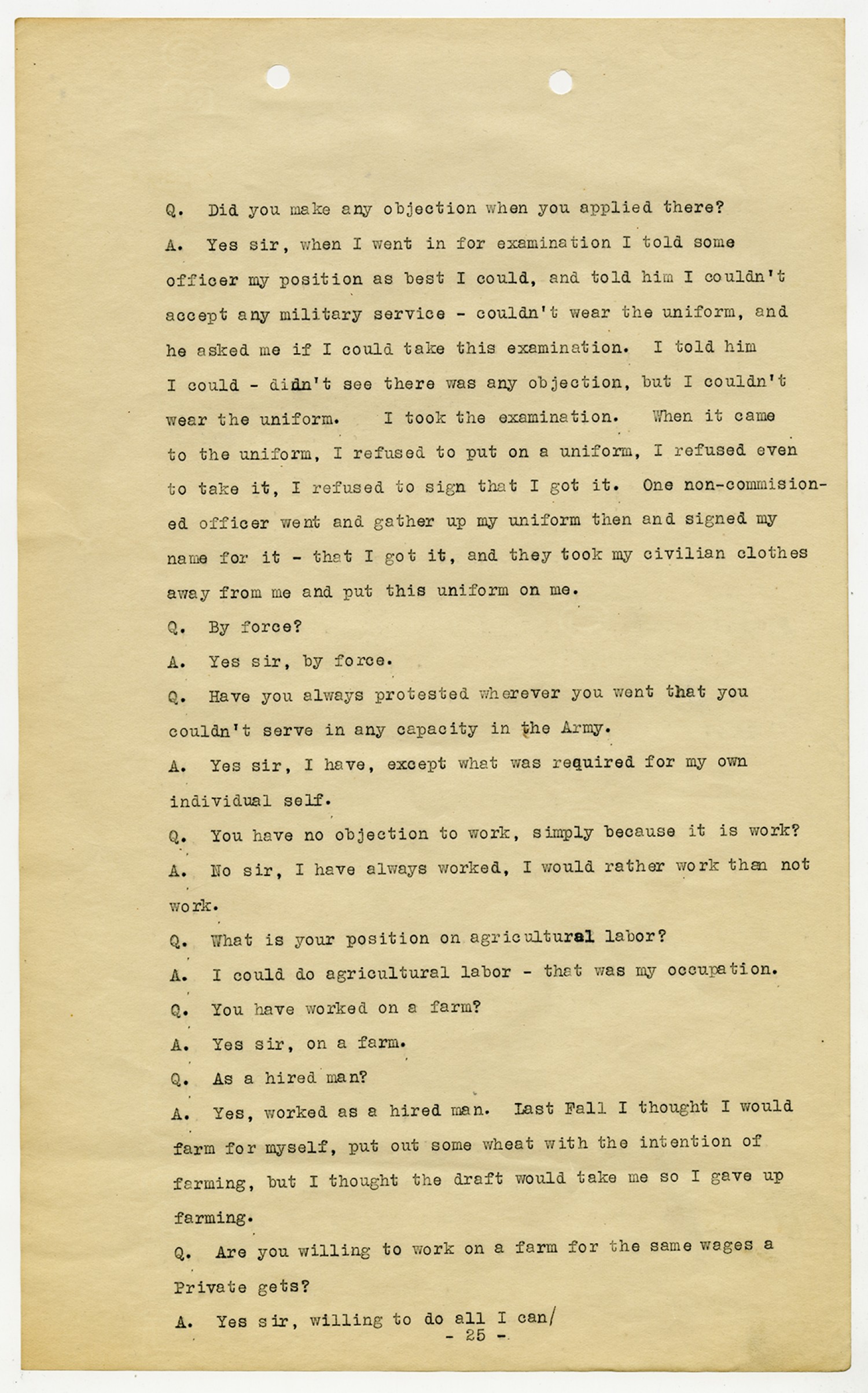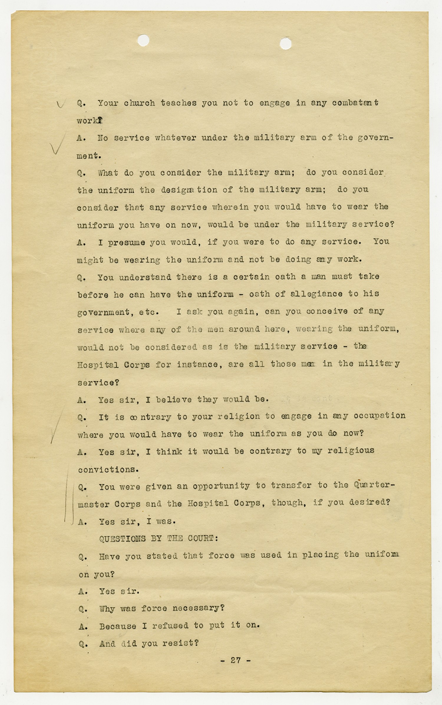 | Description | <p>Court Martial file for Ora Hartzler. Ora Hartzler served with Company M, 12th, Infantry and was a conscientious objector to World War I. The file documents Ora's arrest, trial, and sentencing.</p> |