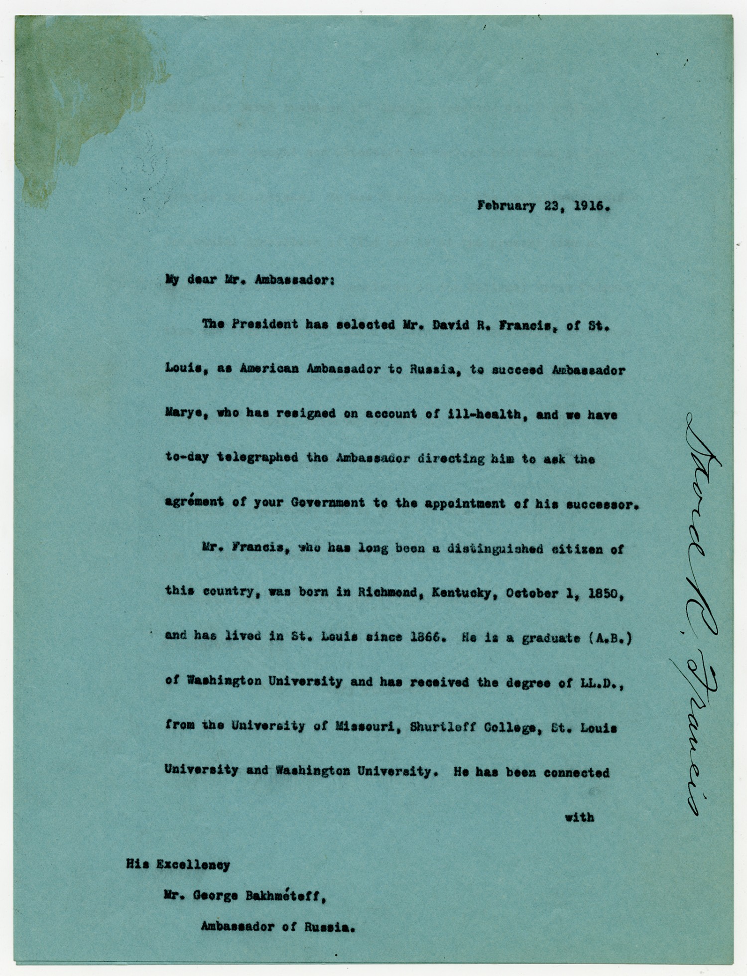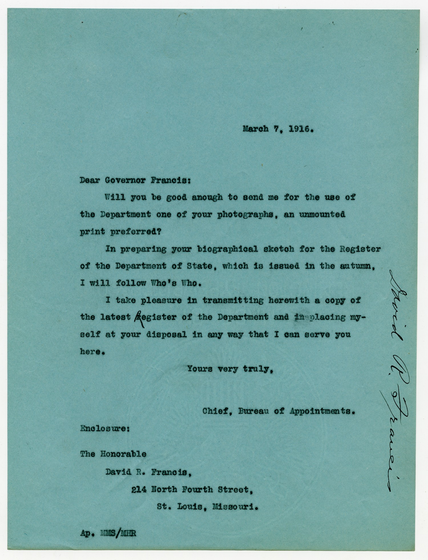 Letter to David R. Francis - March 7, 1916