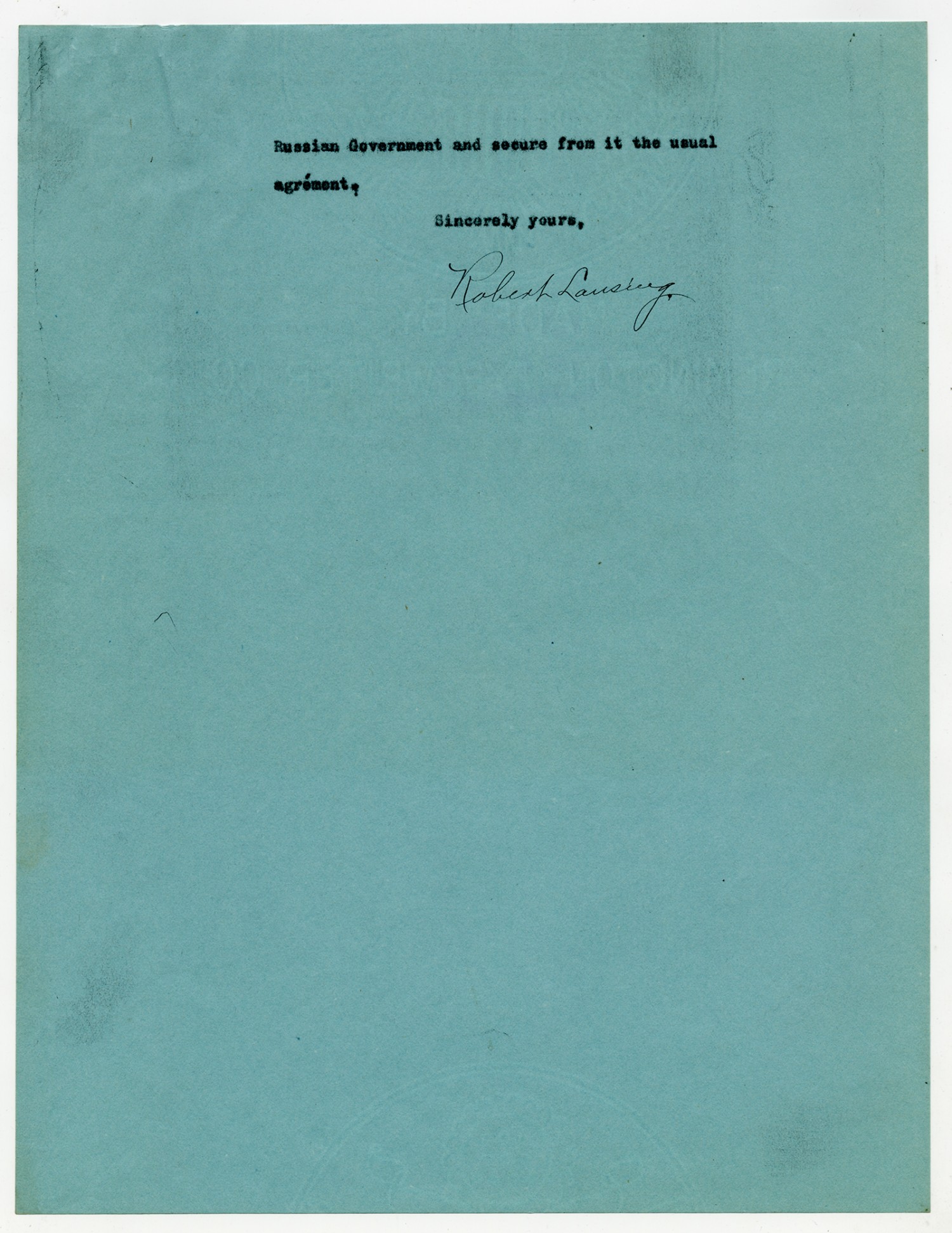 Robert Lansing letter to George Bakhmetoff - February 23, 1916