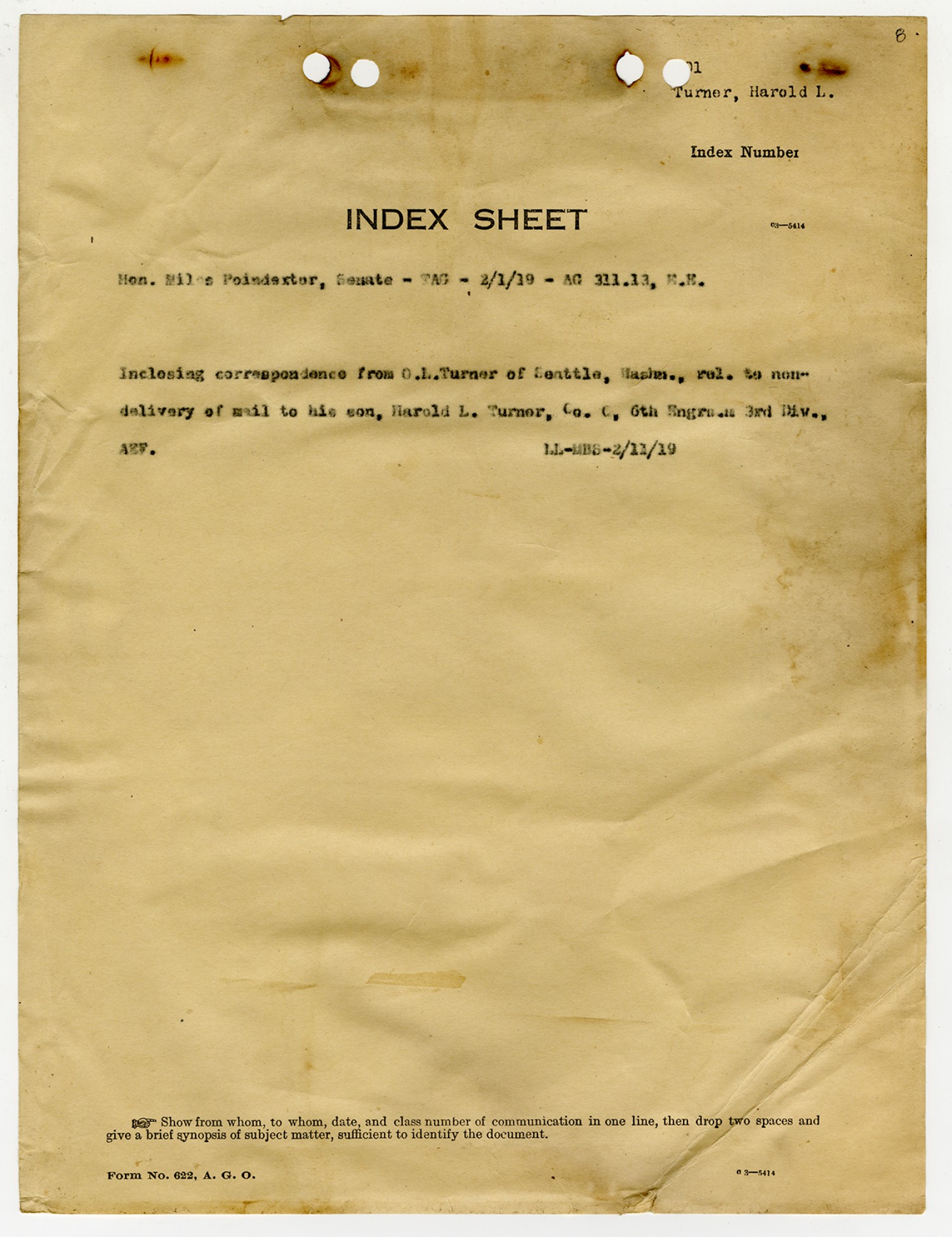 Index Sheet - February 1, 1919