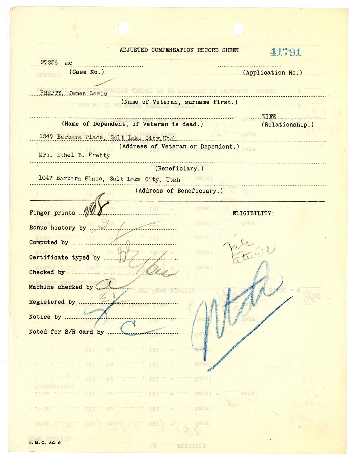 | Source | Pretty, James L.; Official Military Personnel Files, 1912-1998; Records of the Army Staff, 1903-2009, Record Group 319; National Archives and Records Administration-National Personnel Records Center (St. Louis). |