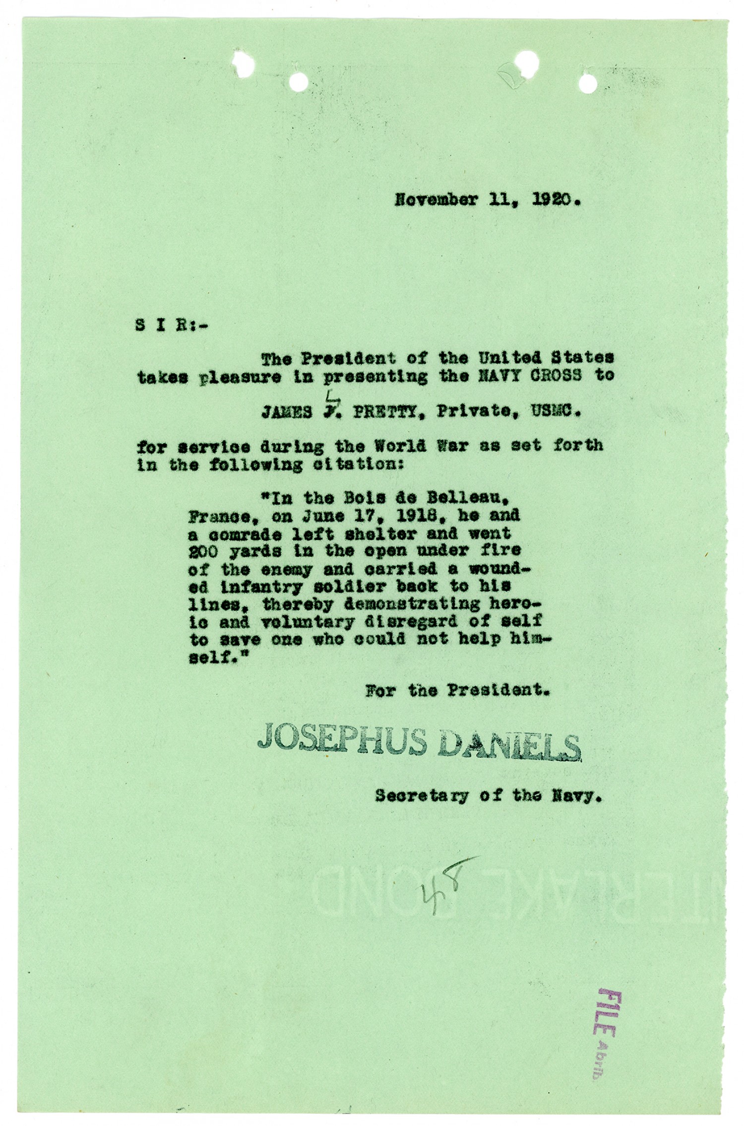 Josephus Daniels letter to James L. Pretty - November 11, 1920
