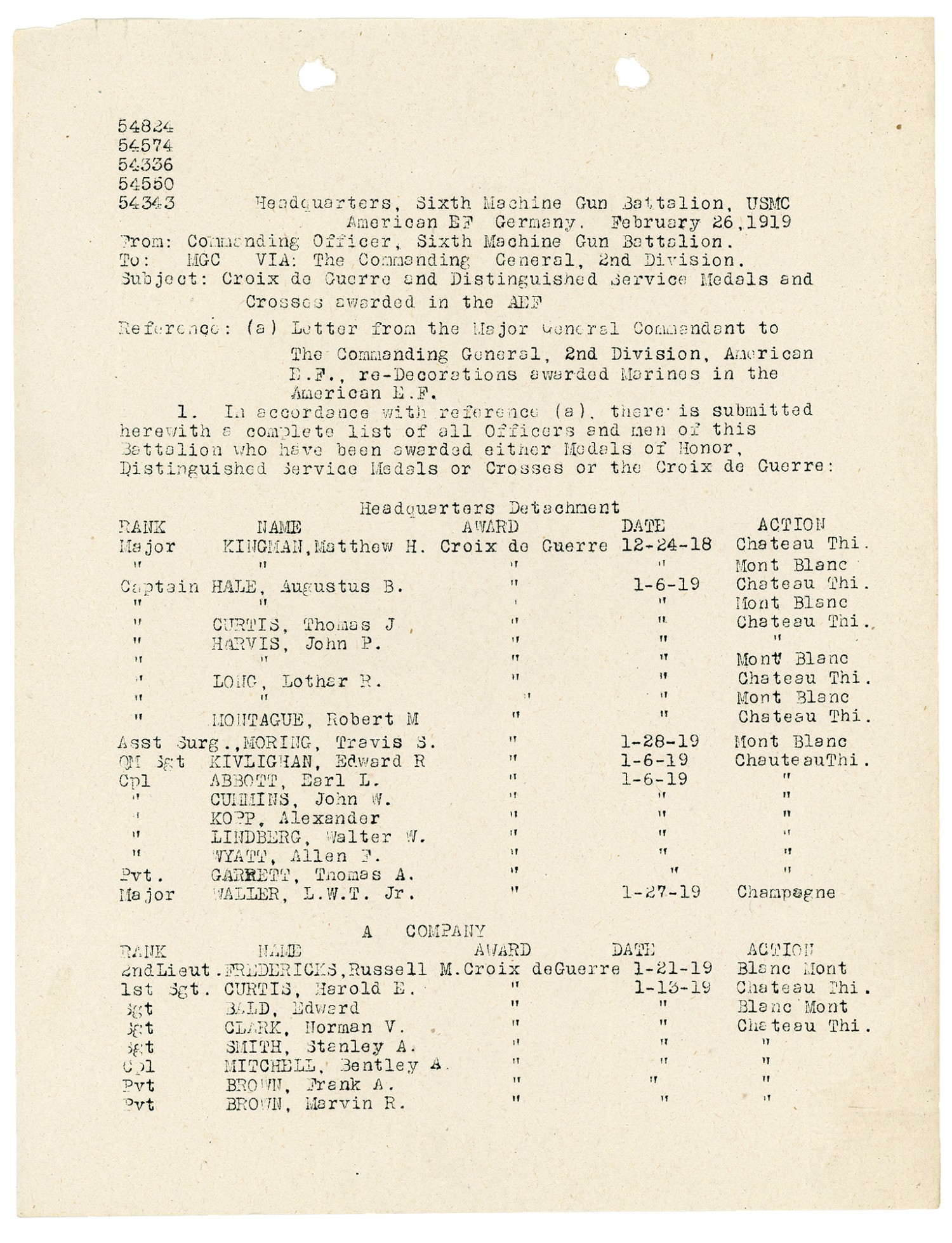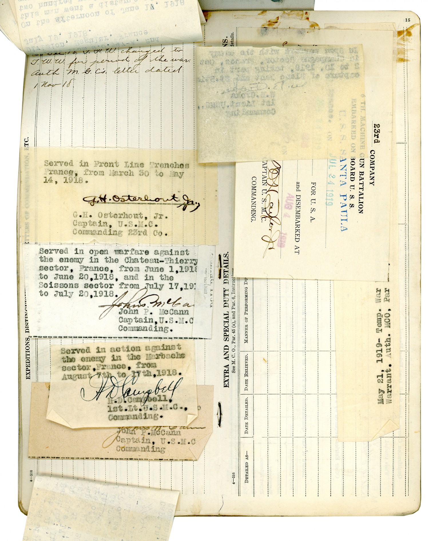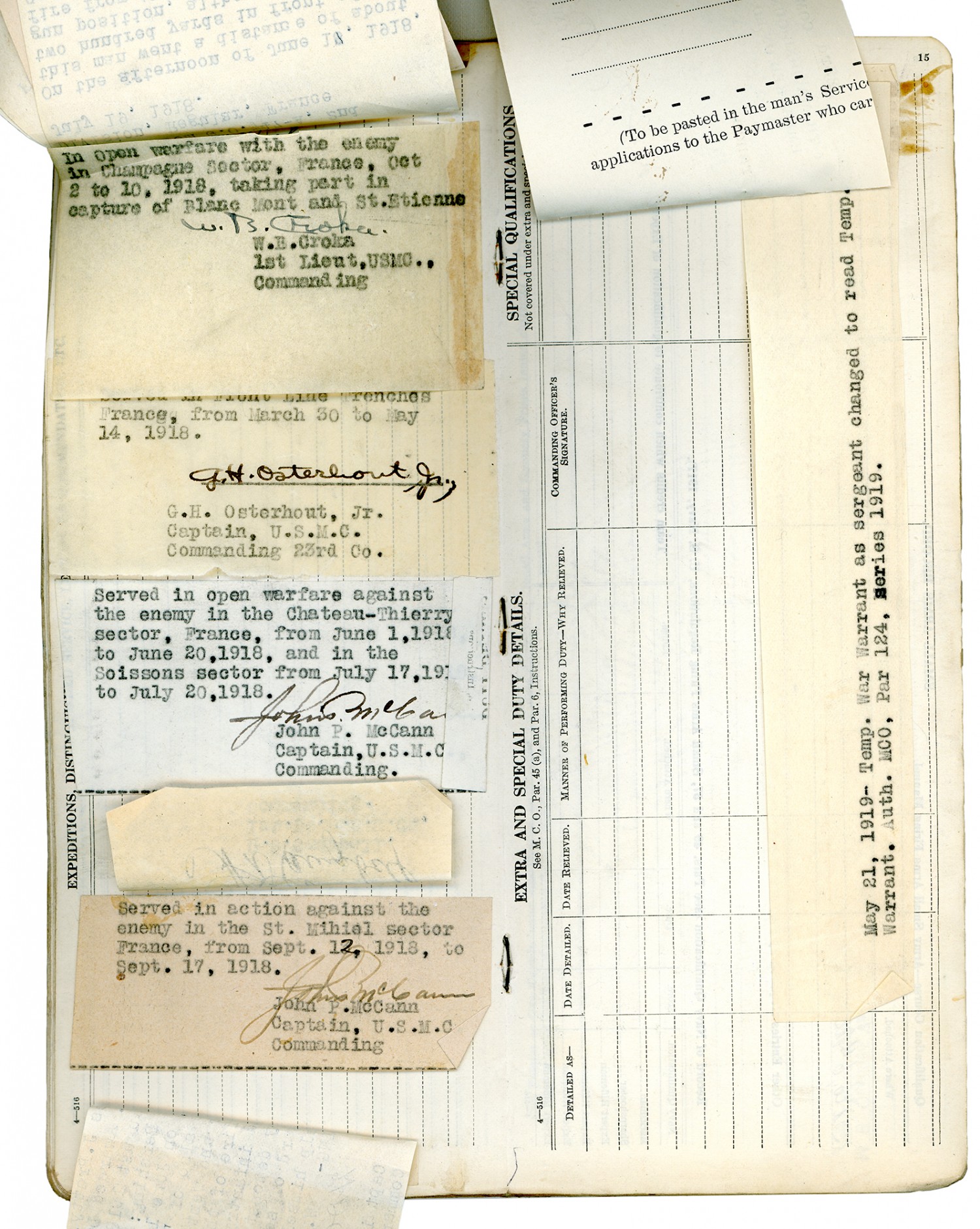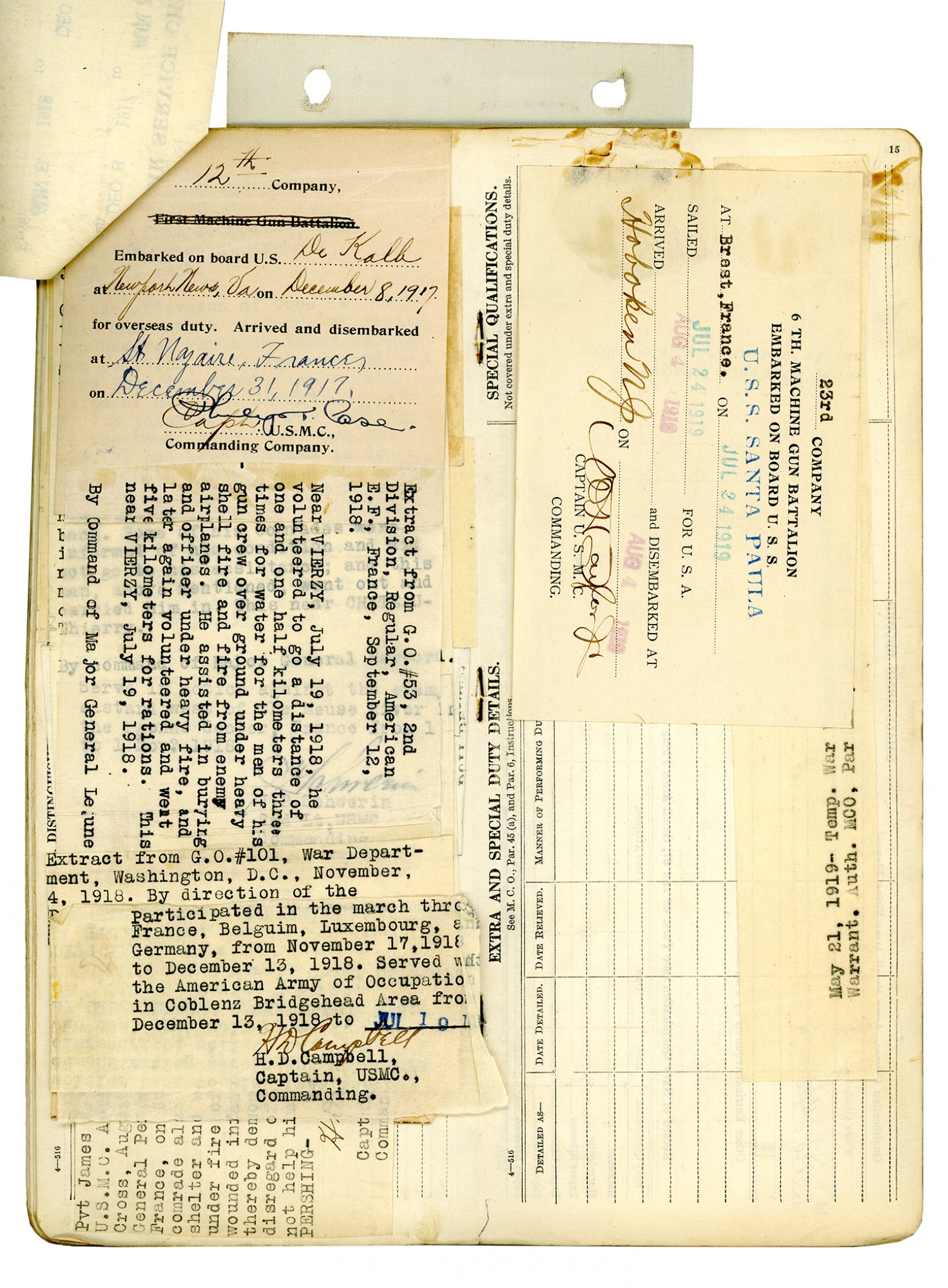 | Subject LCSH | United States. Marine Corps--1910-1920; Distinguished Service Cross (US); Machine guns--1910-1920; Belleau, Bois de (France); Croix de guerre (France); Rhineland (German territory under Allied occupation, 1918-1930); Rhineland (Germany); Champagne (France |
