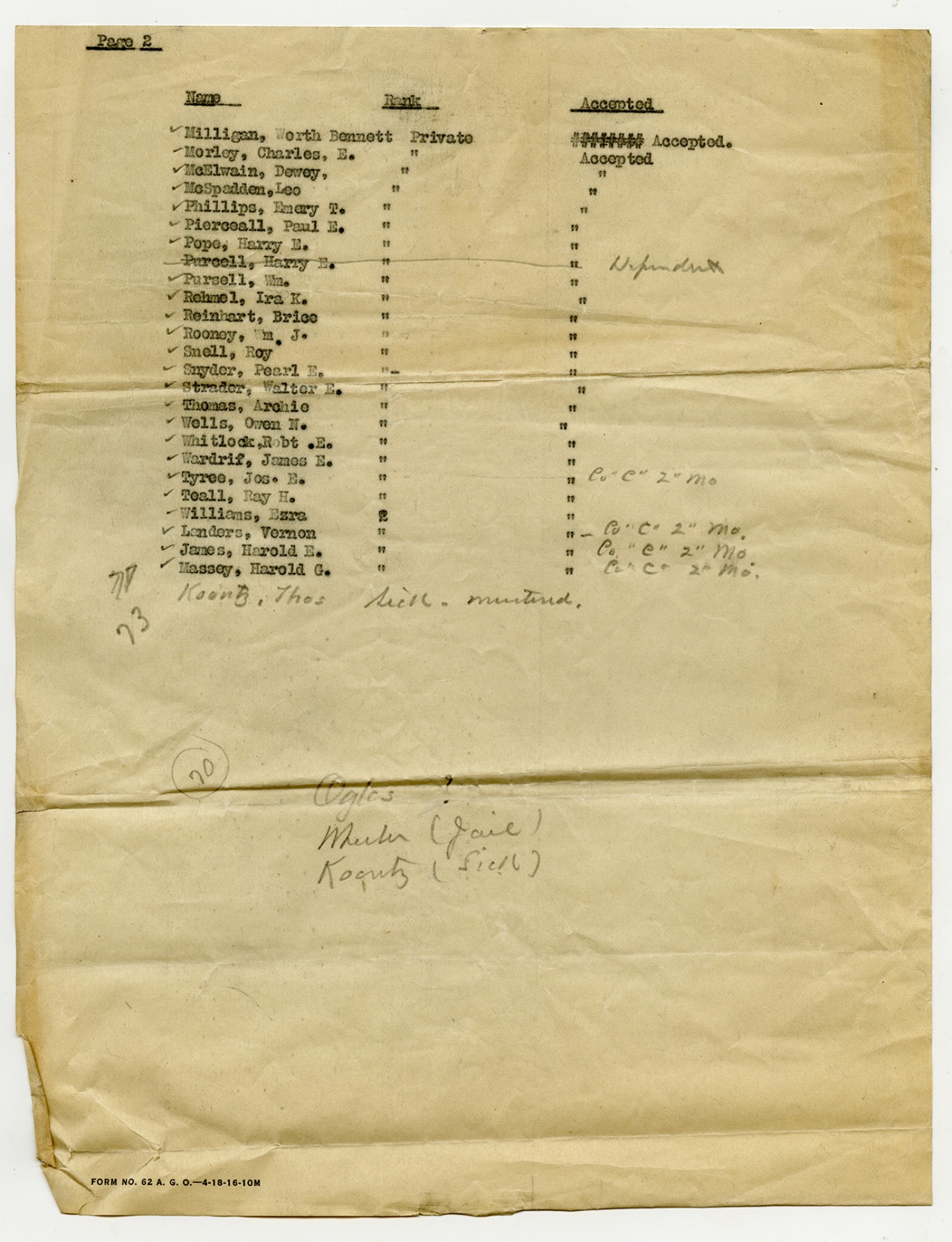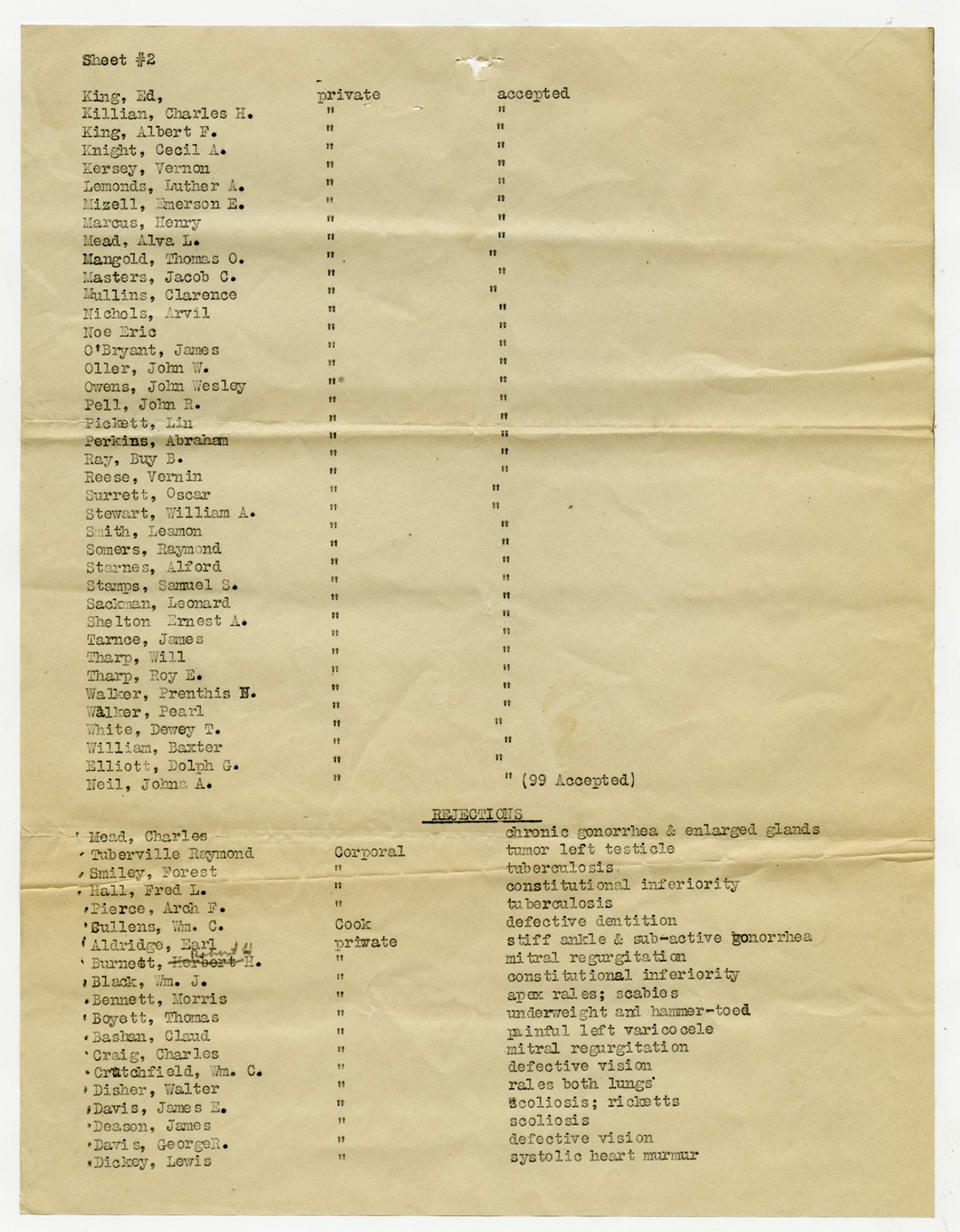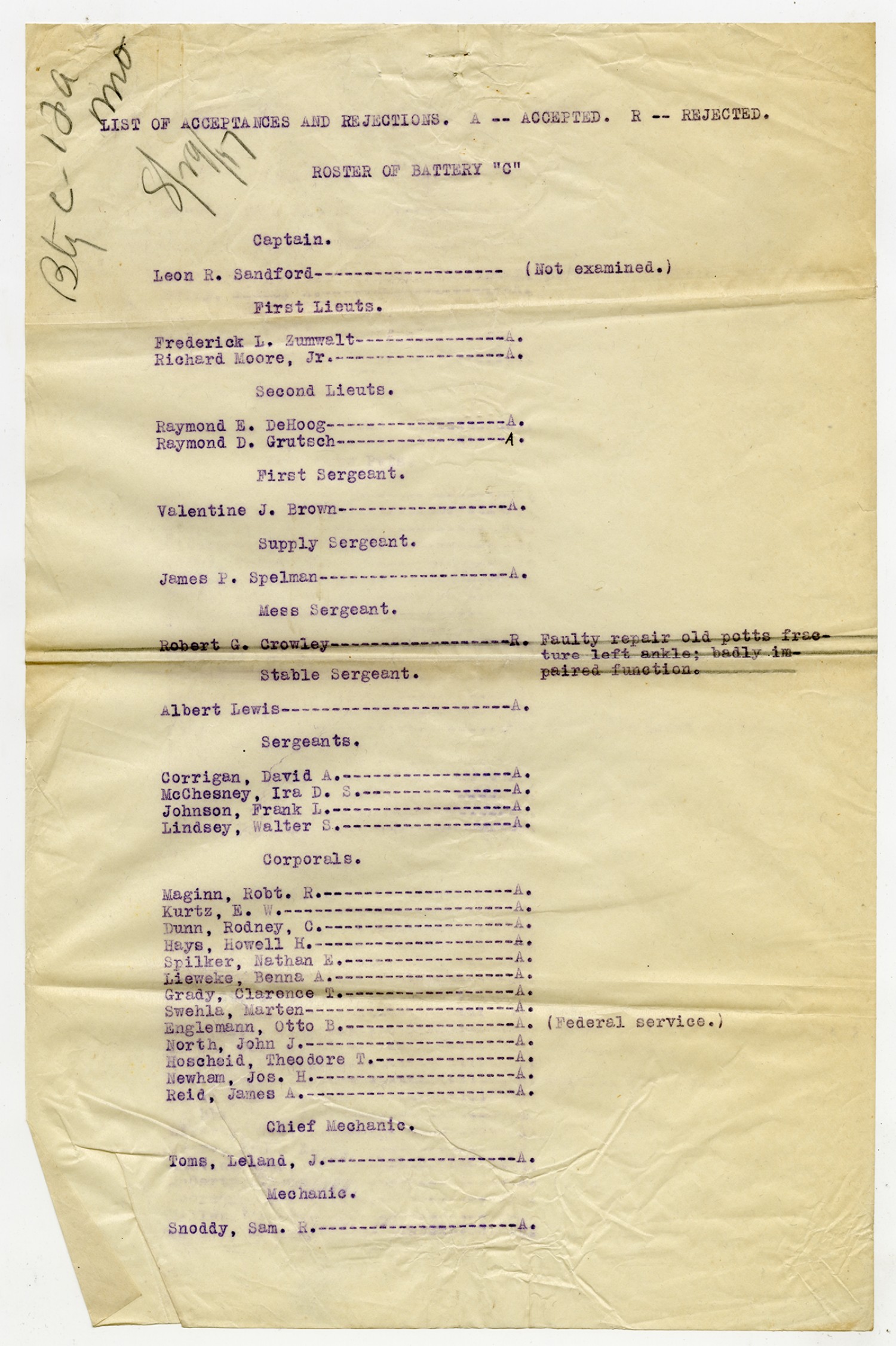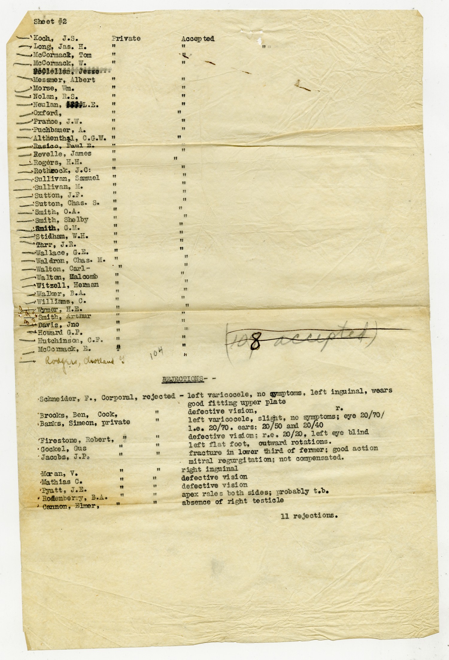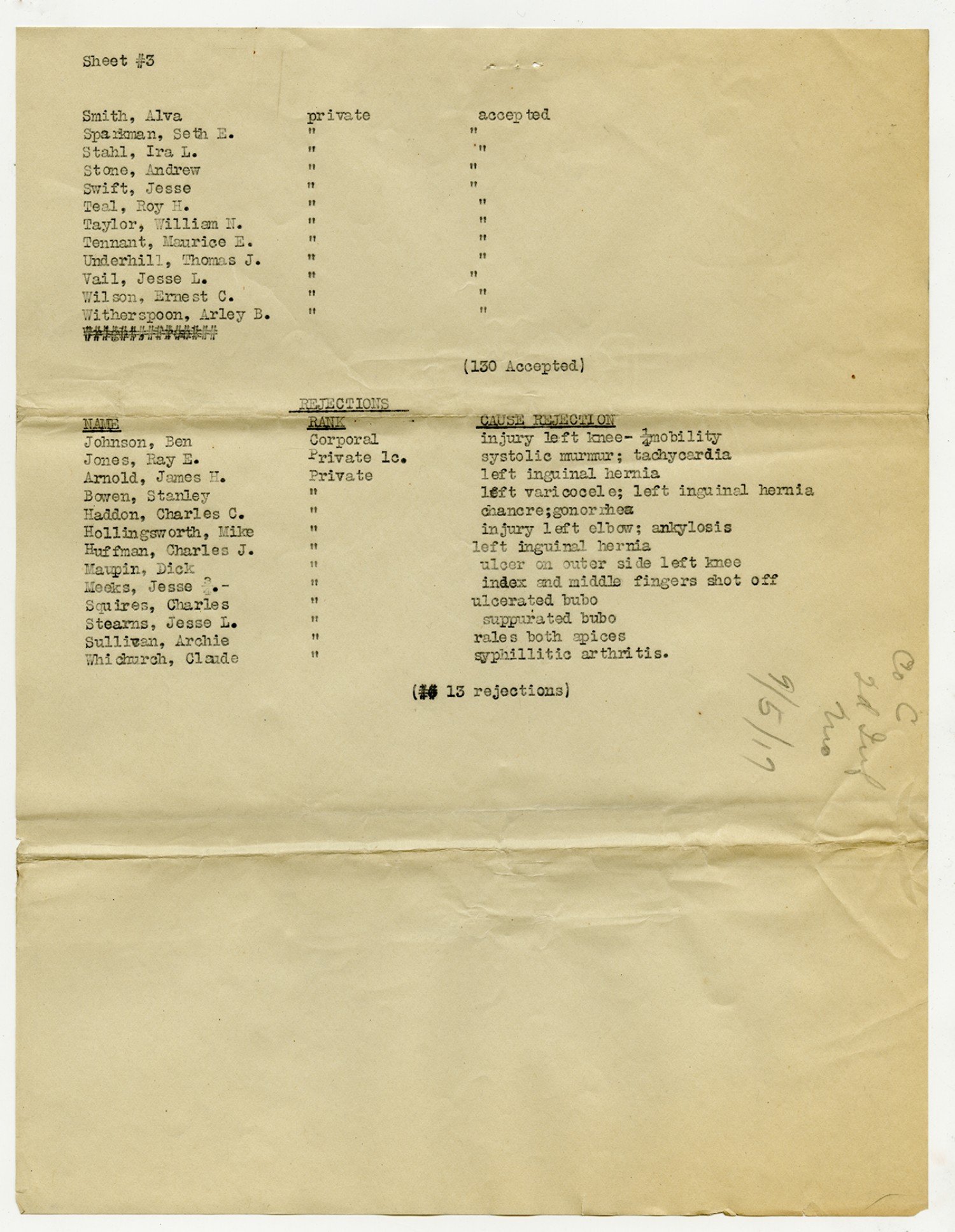 Men Accepted and Rejected in Company C, Signal Corps - n.d.