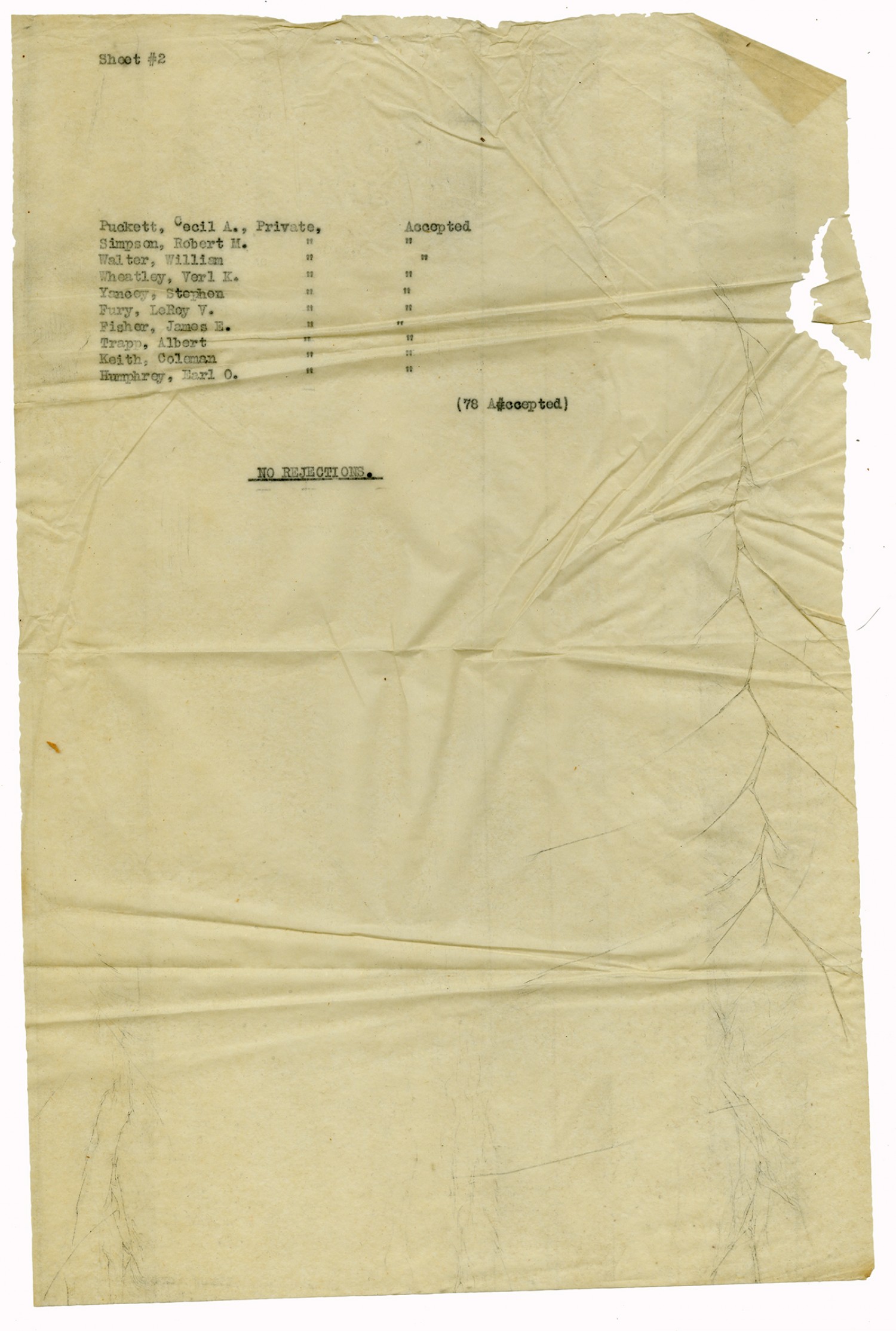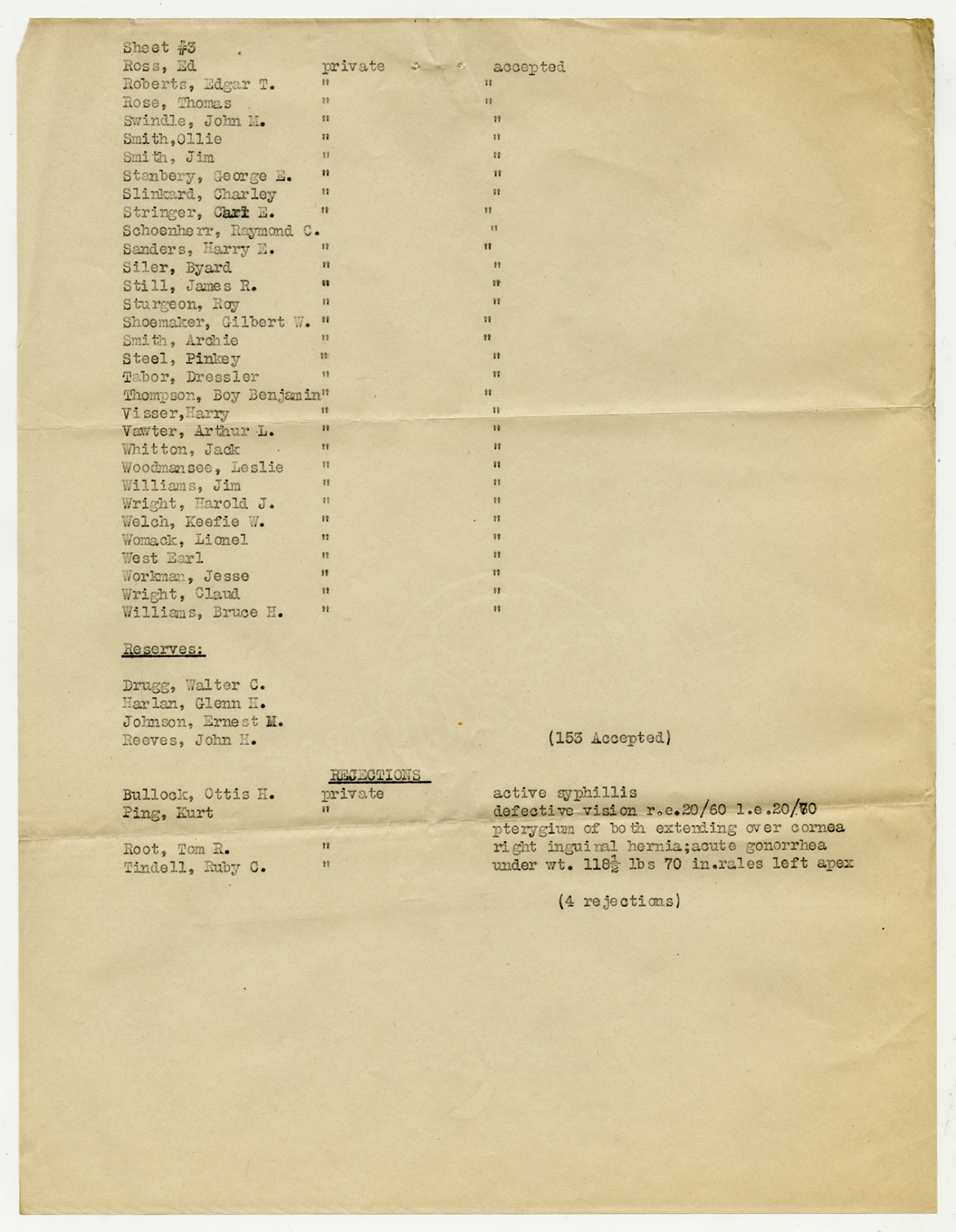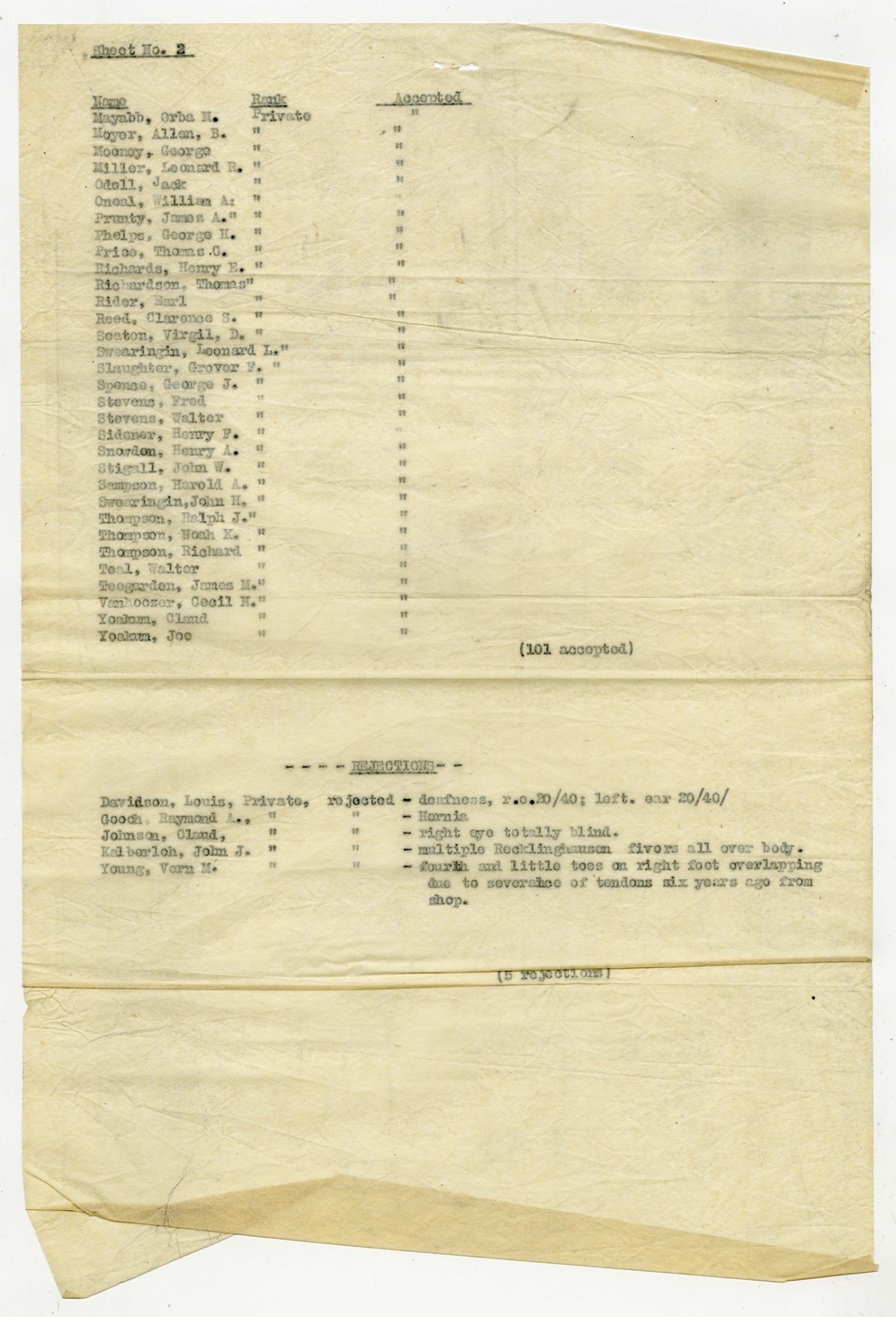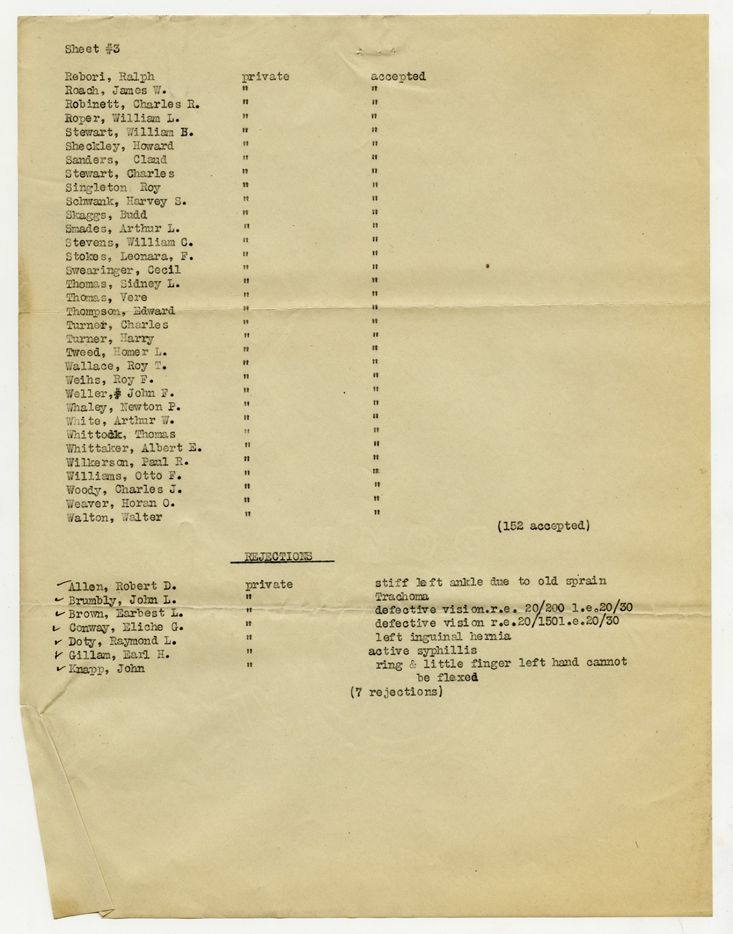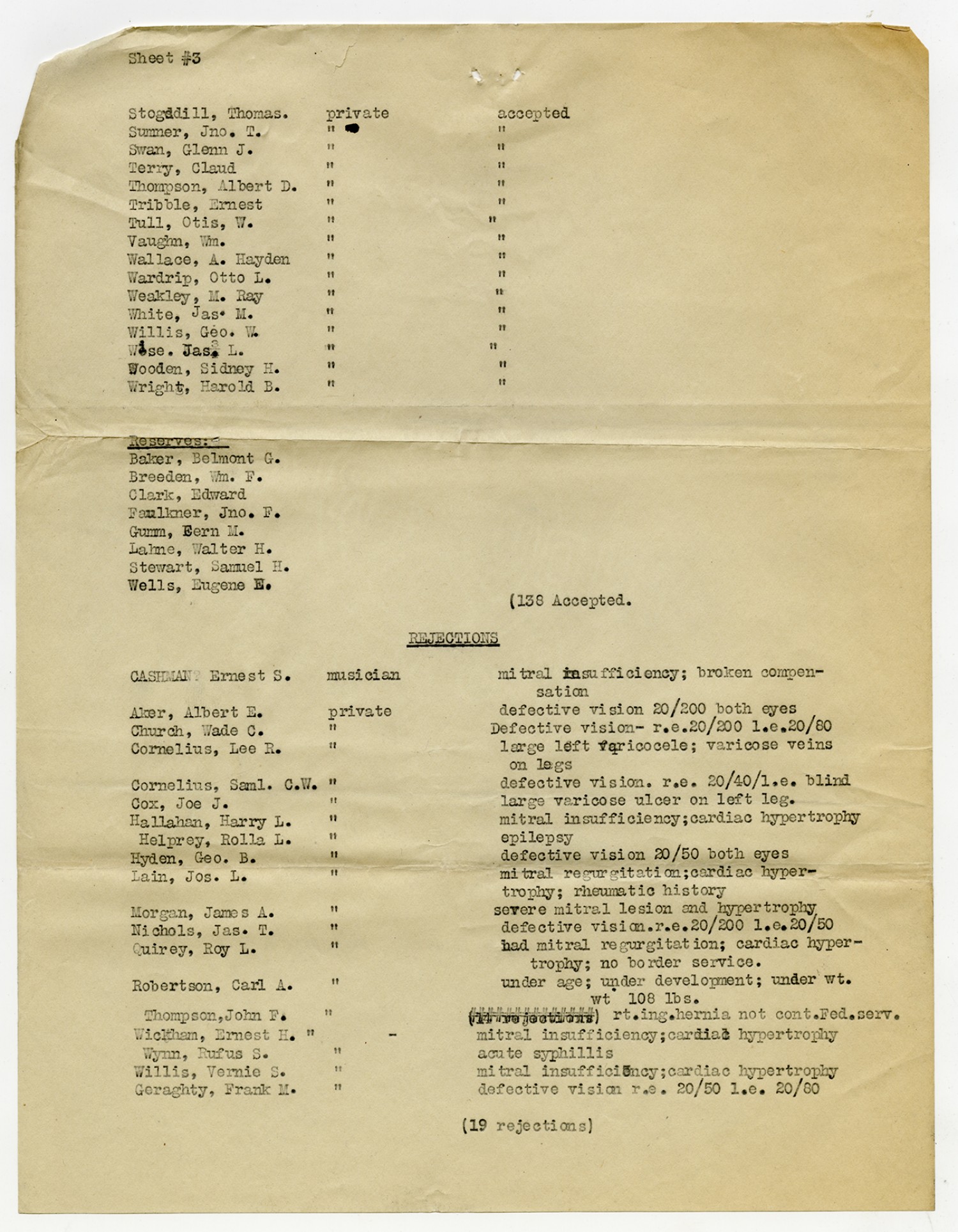 Men Accepted and Rejected in Company C, Signal Corps - n.d.