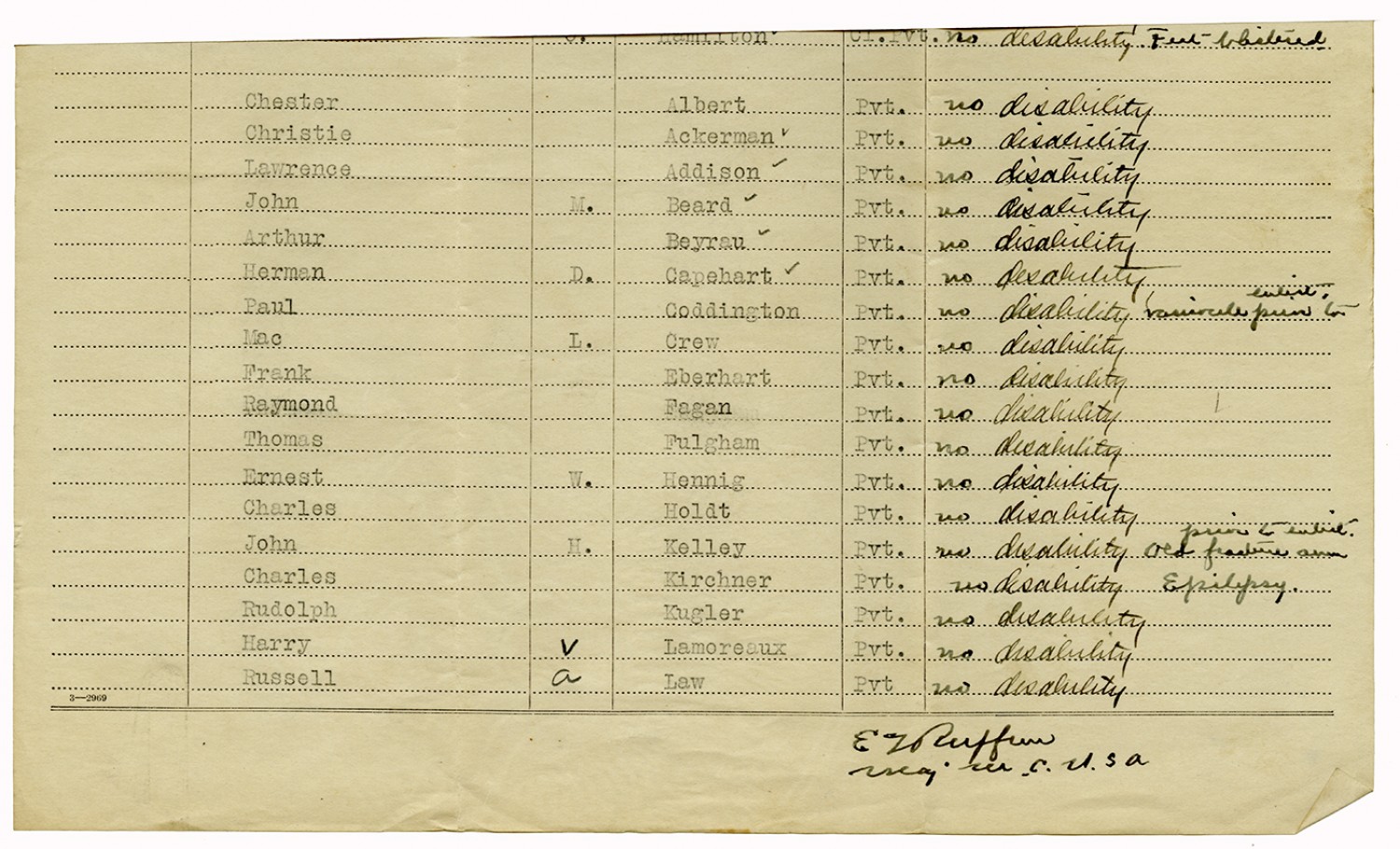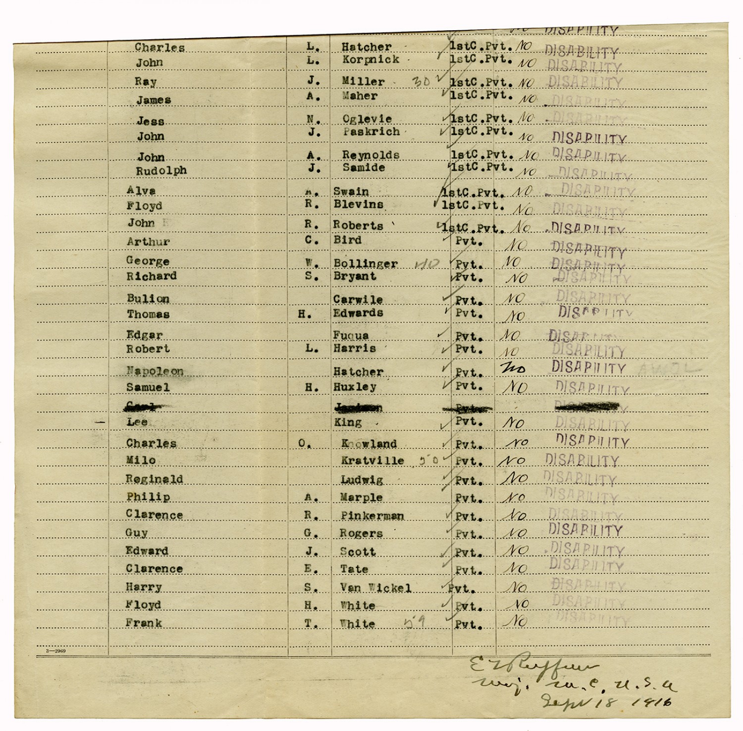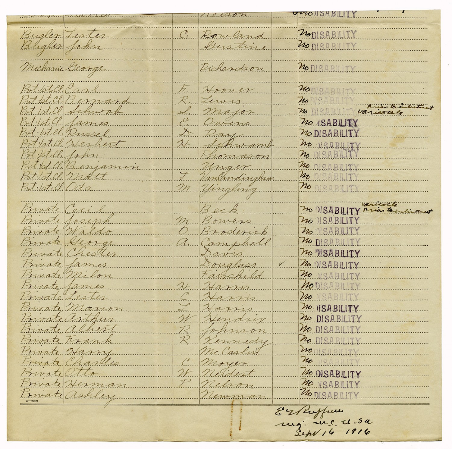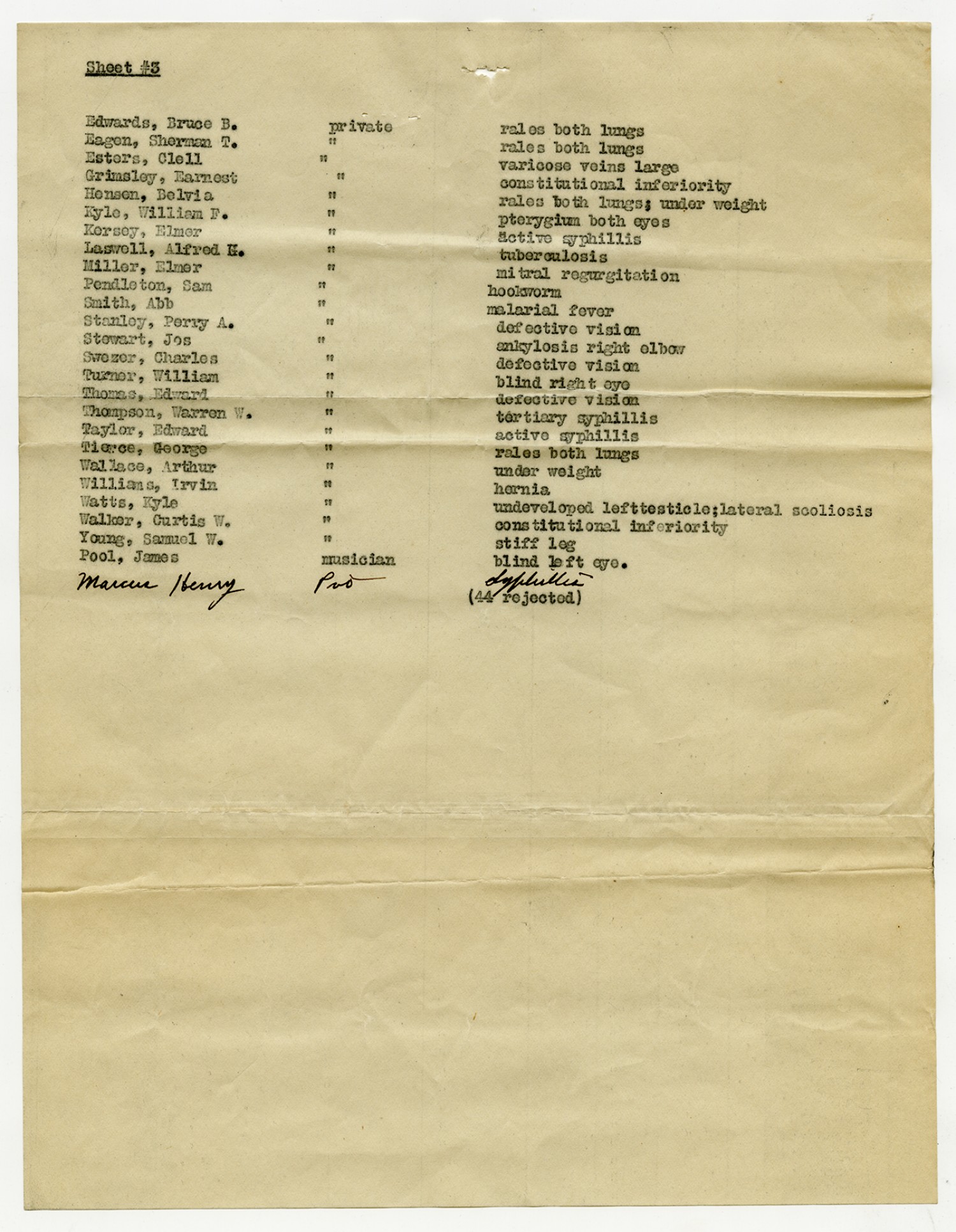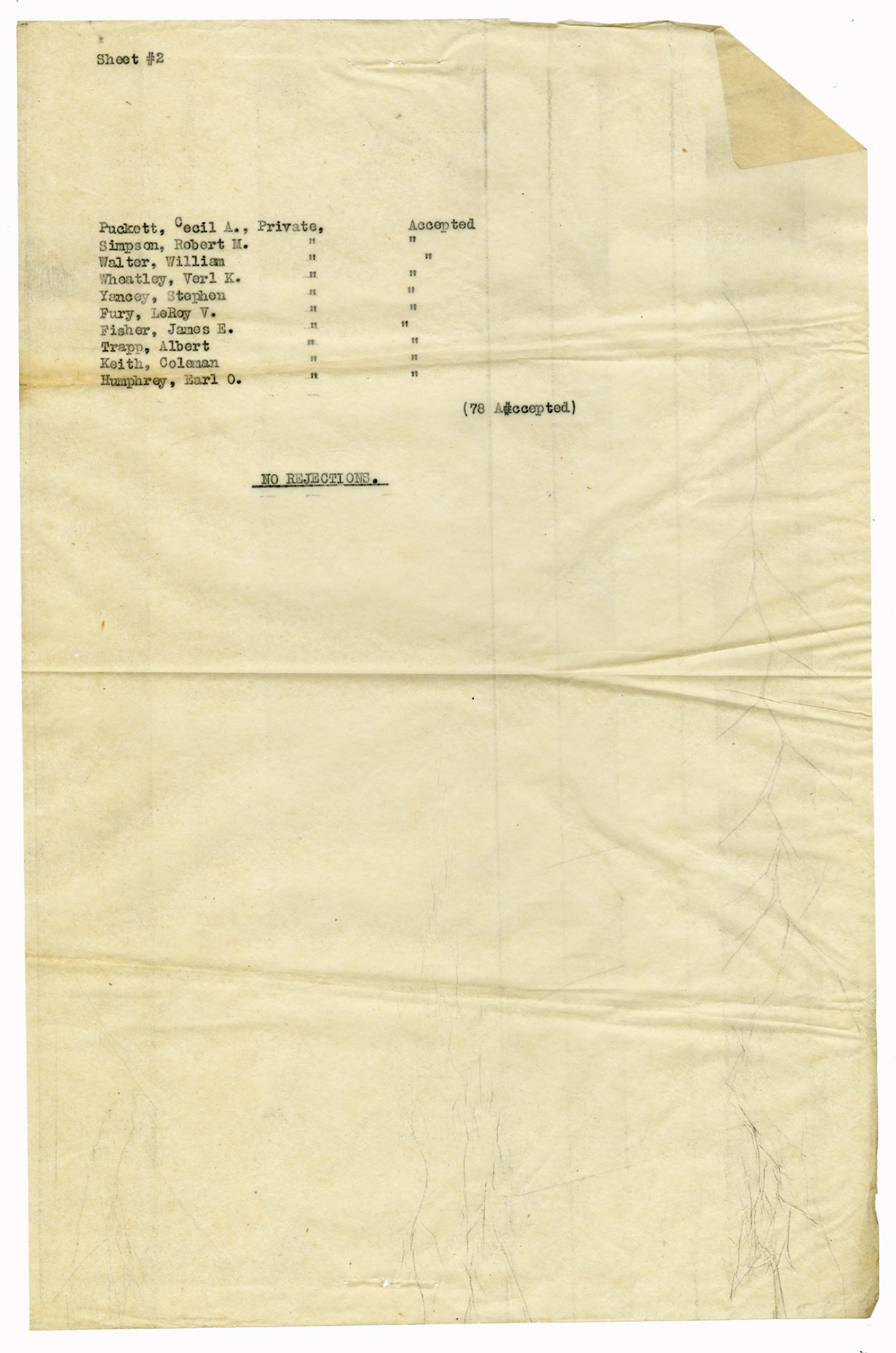 Men Accepted and Rejected in Company C, Signal Corps - n.d.