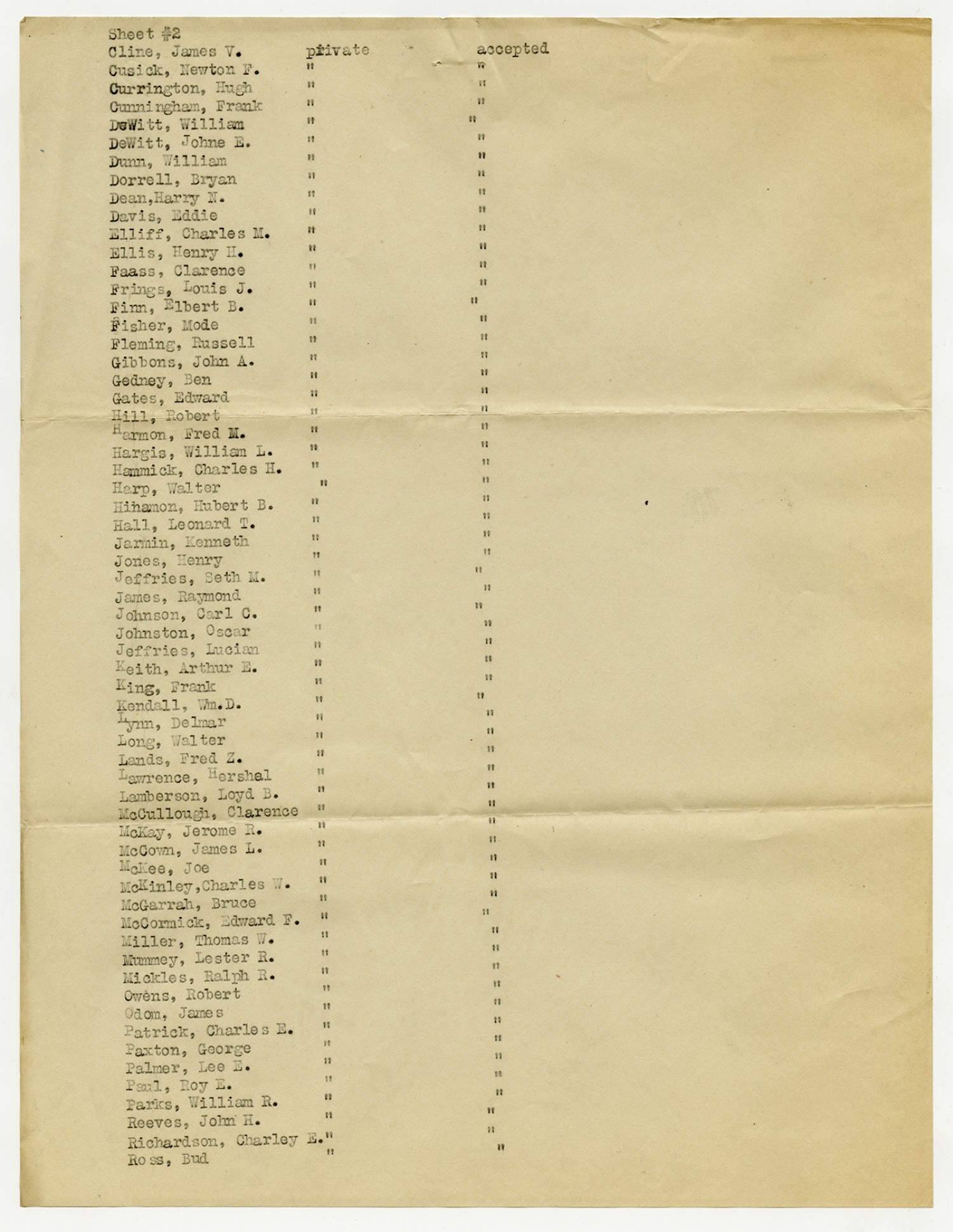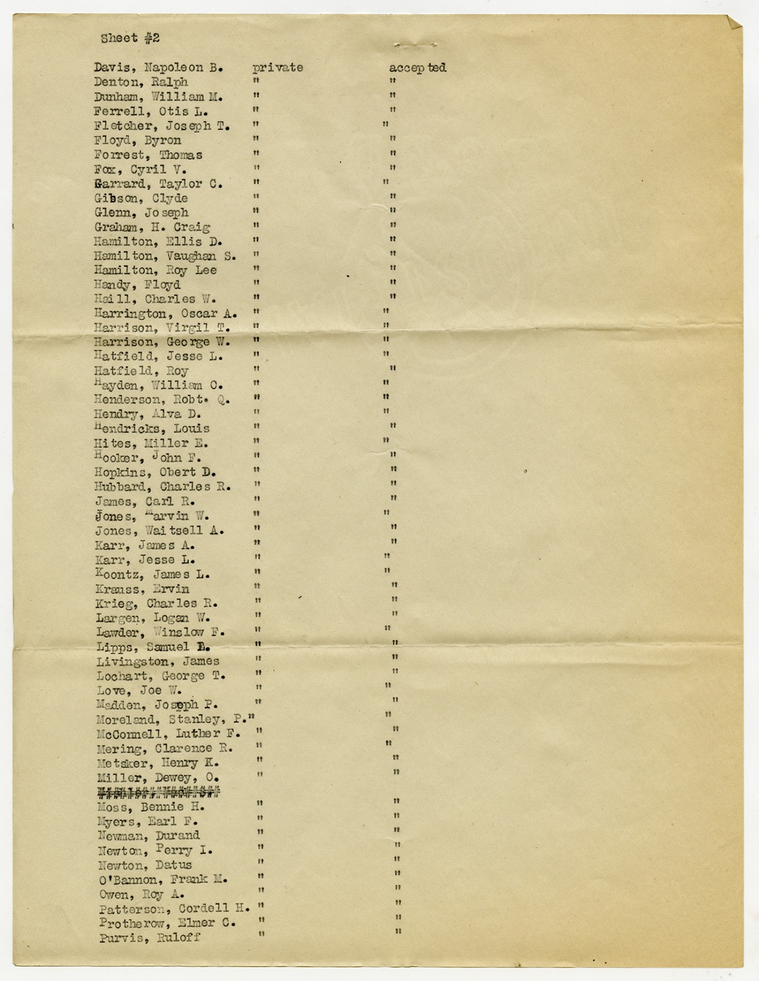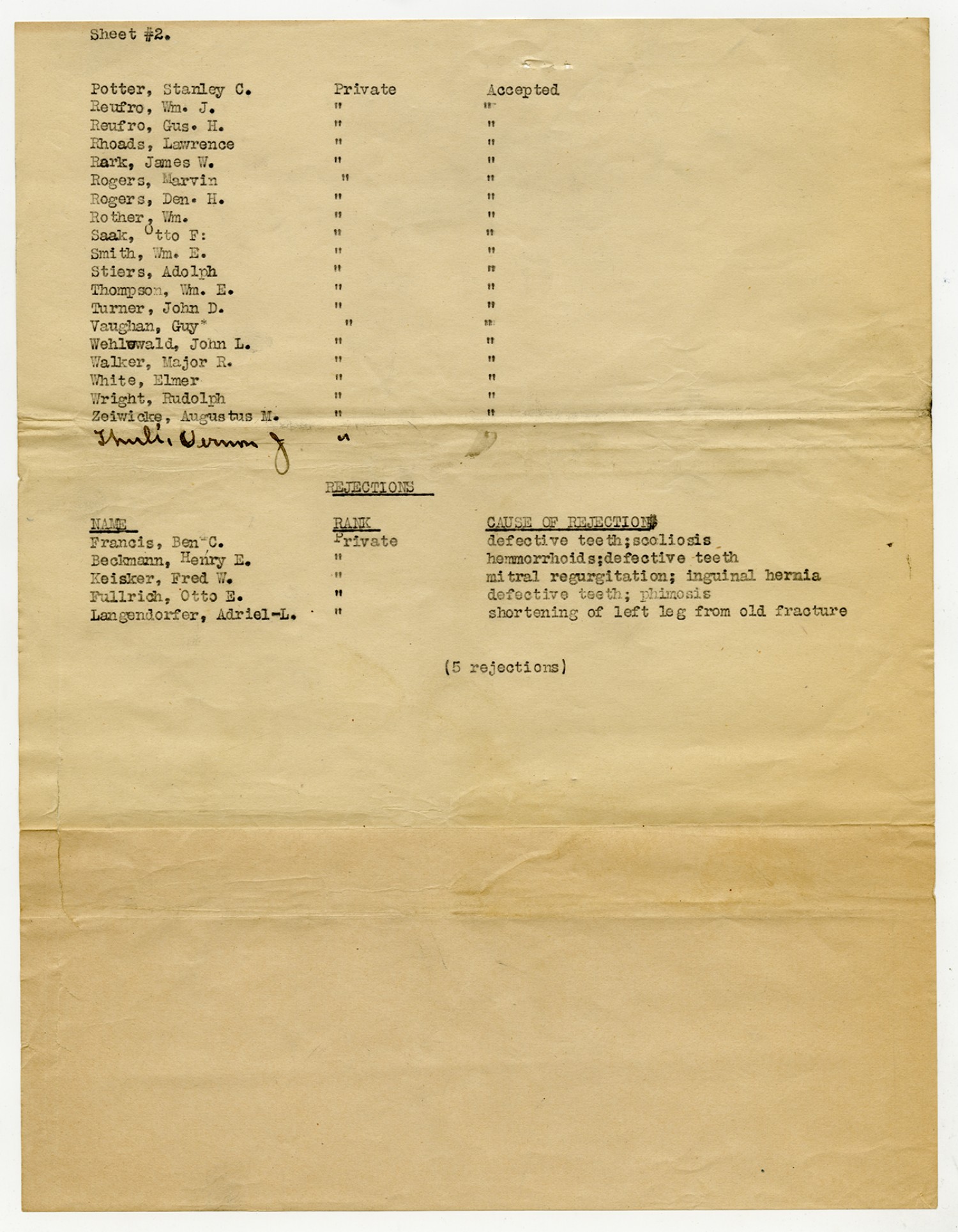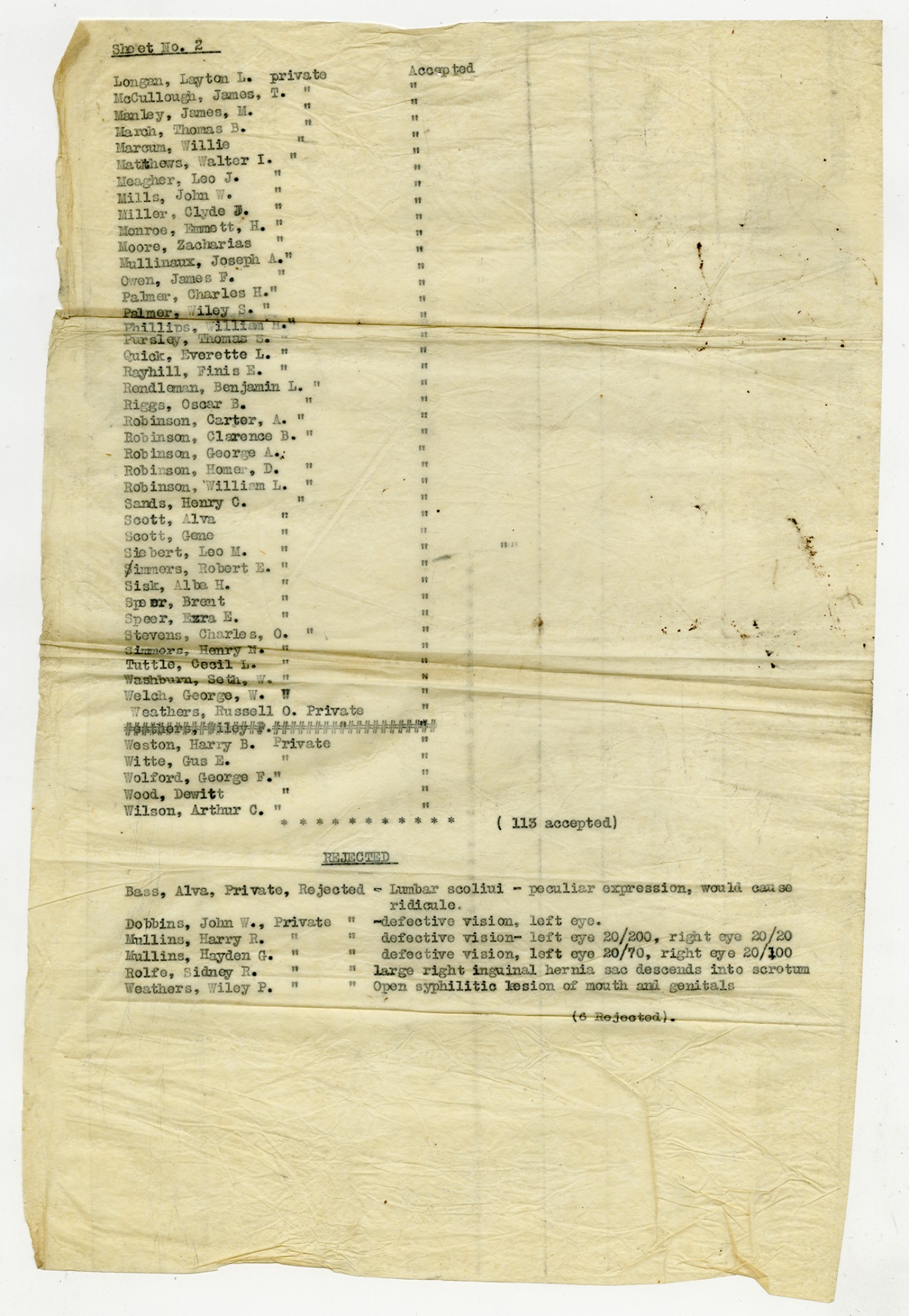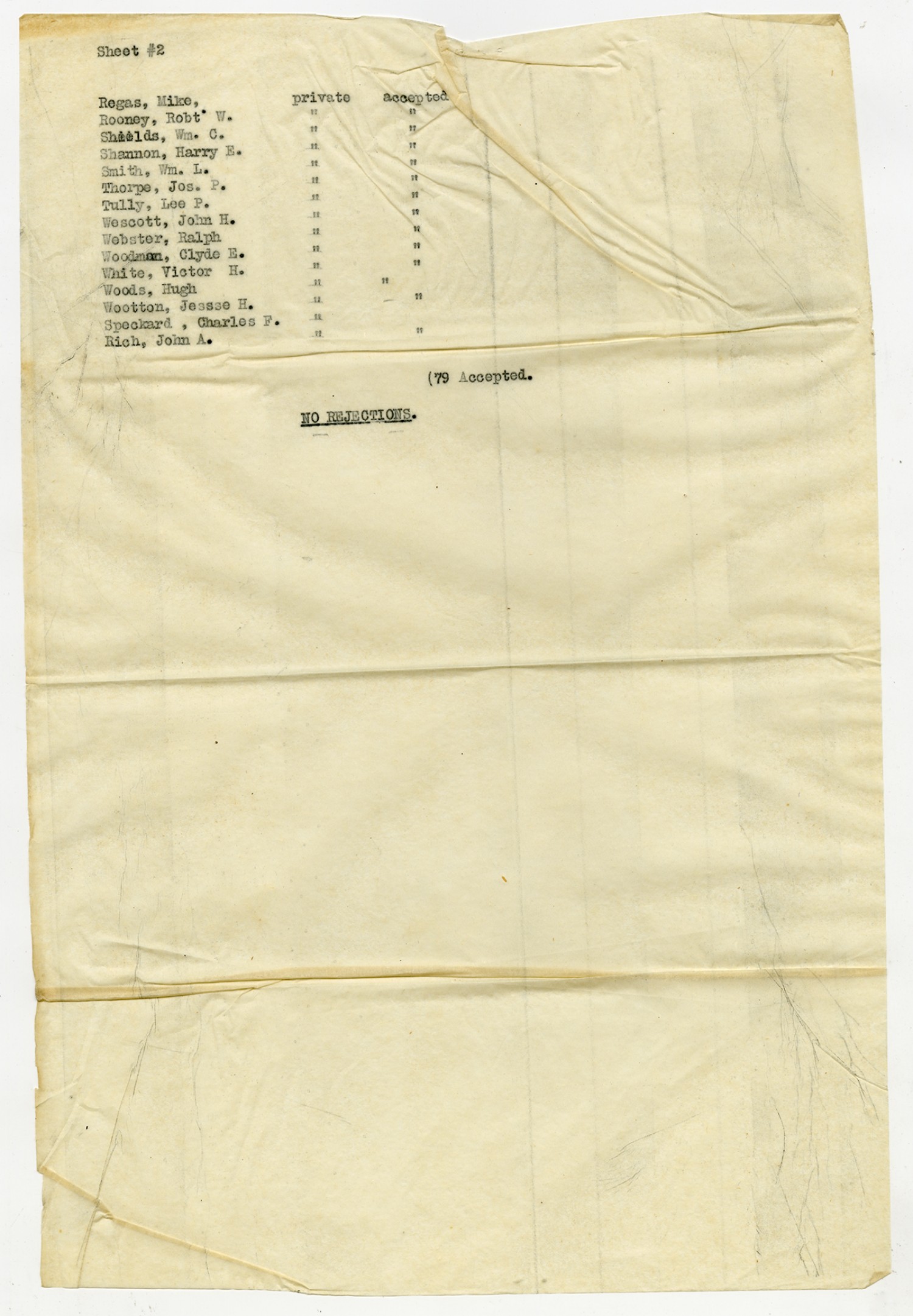 Men Accepted and Rejected to the Machine Gun Company, Second Regiment - September 5, 1917