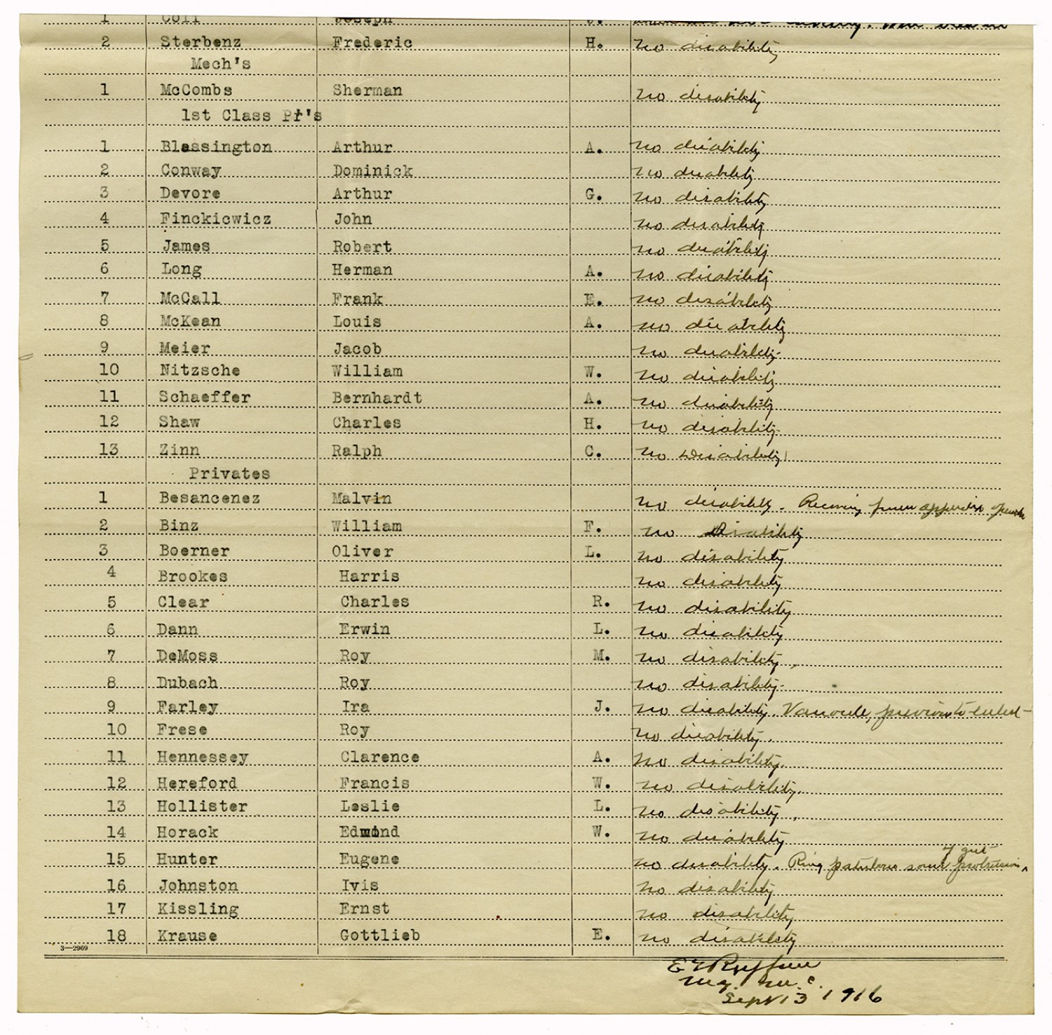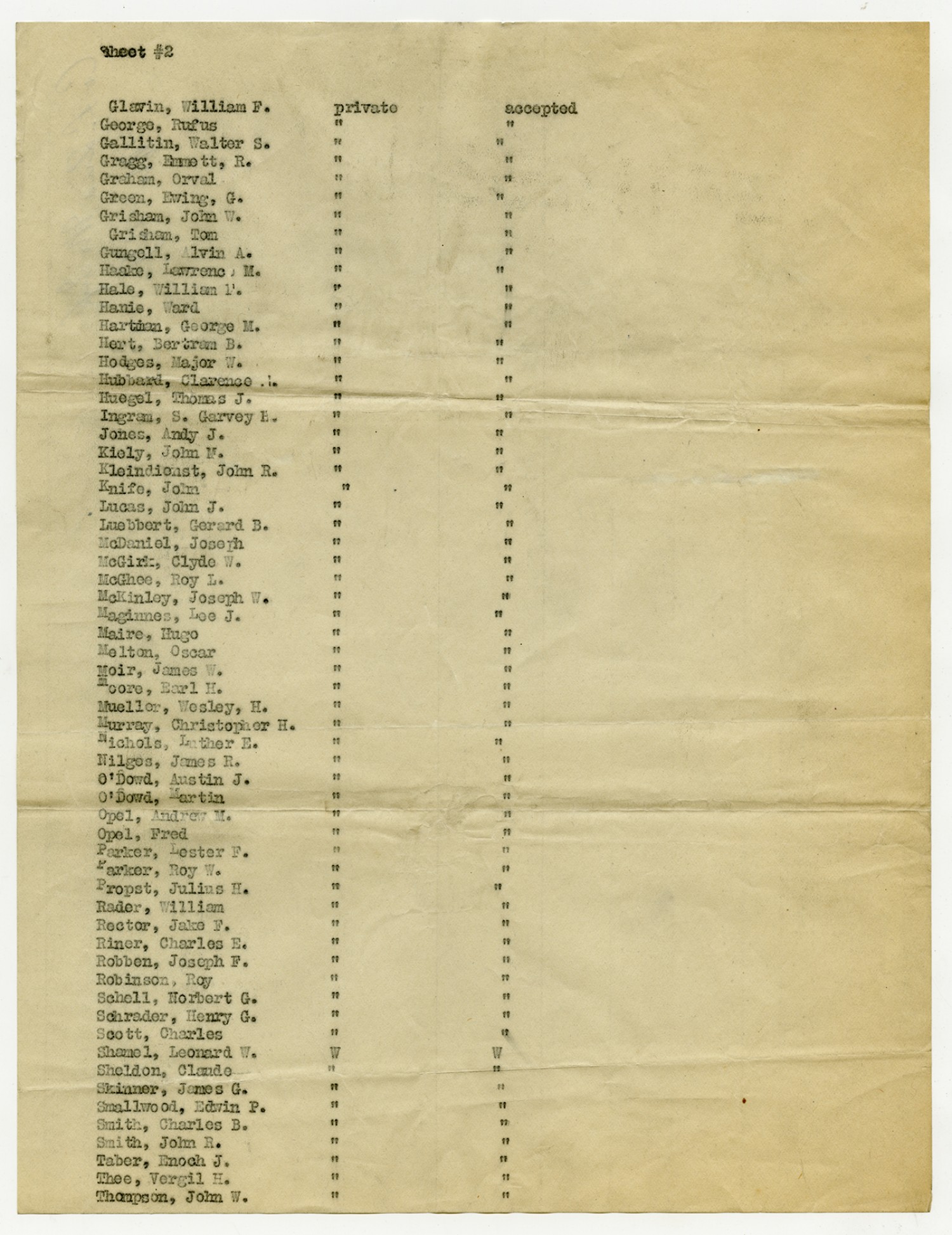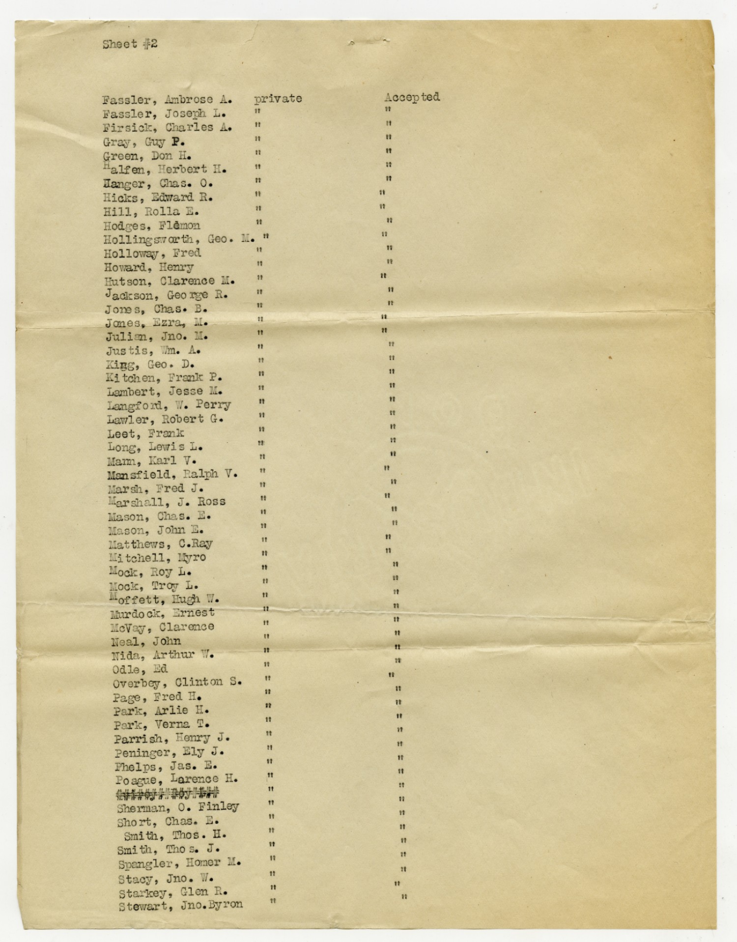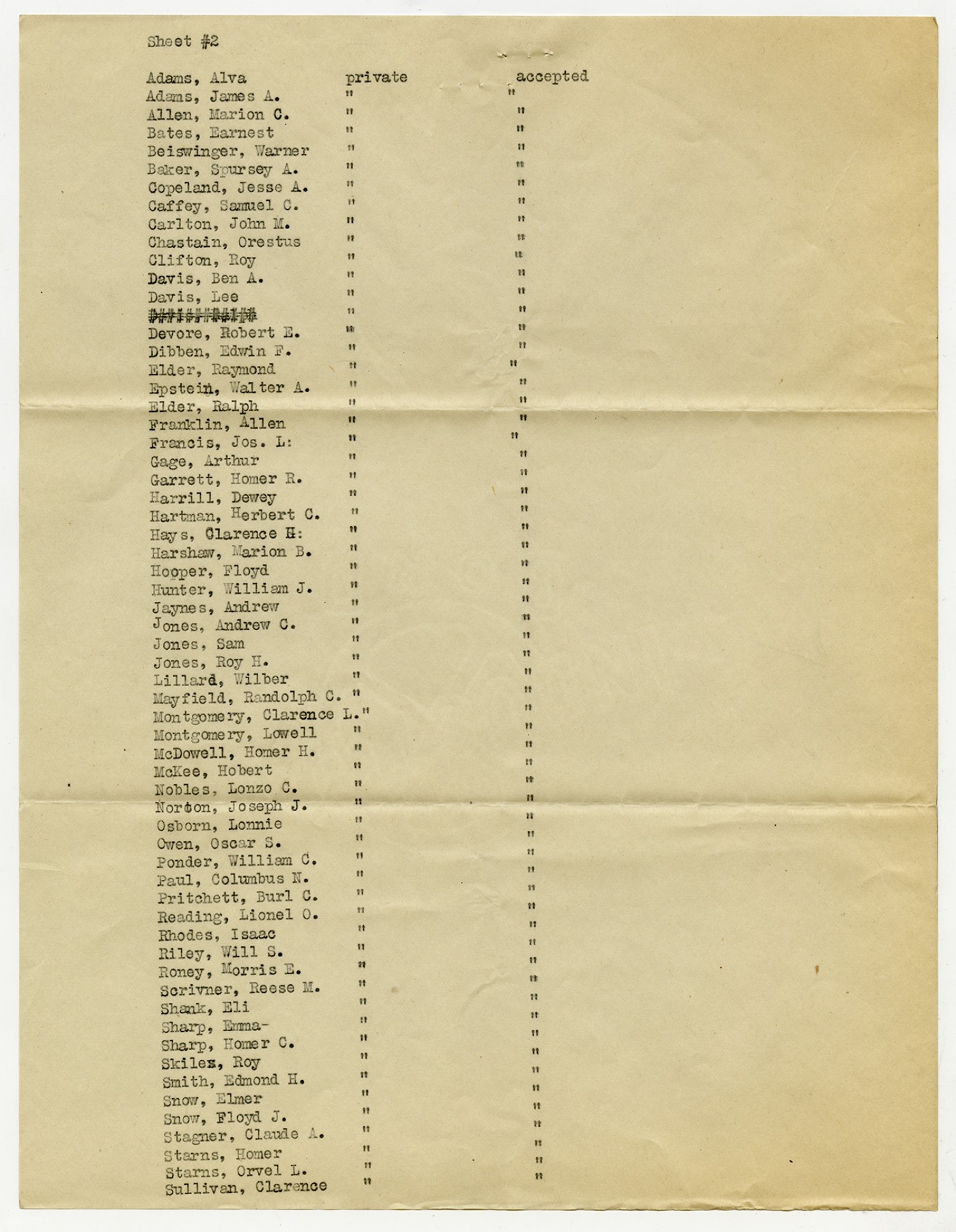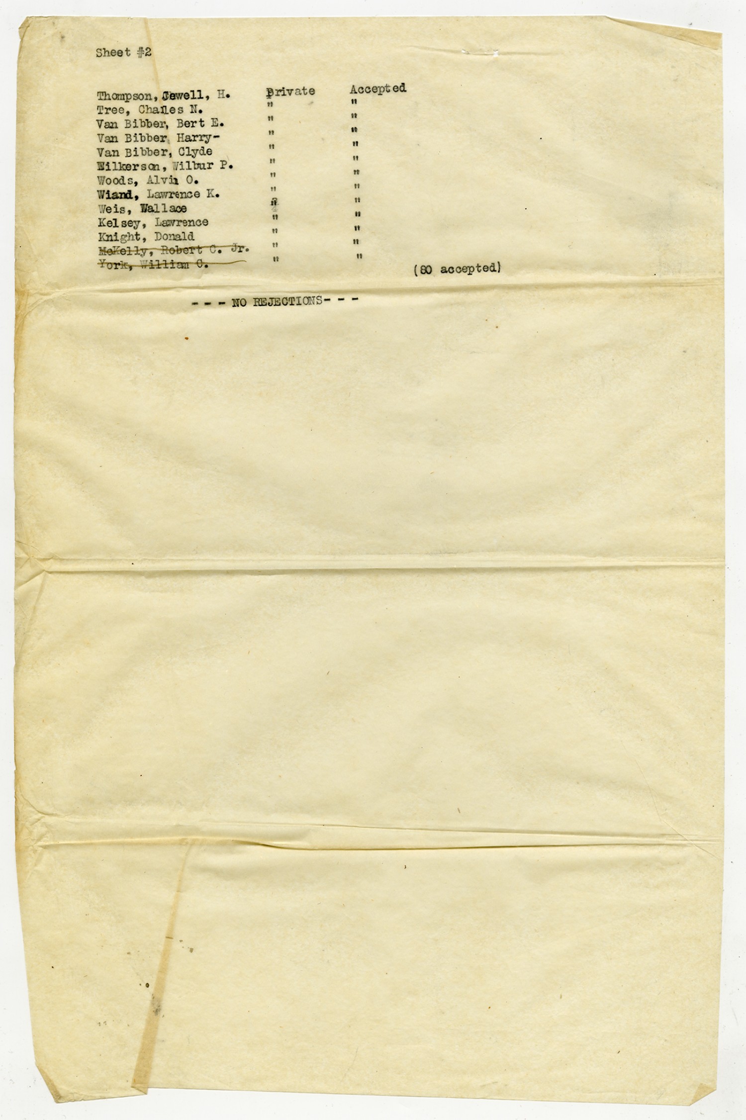 Men Accepted and Rejected to the Machine Gun Company, Second Regiment - September 5, 1917