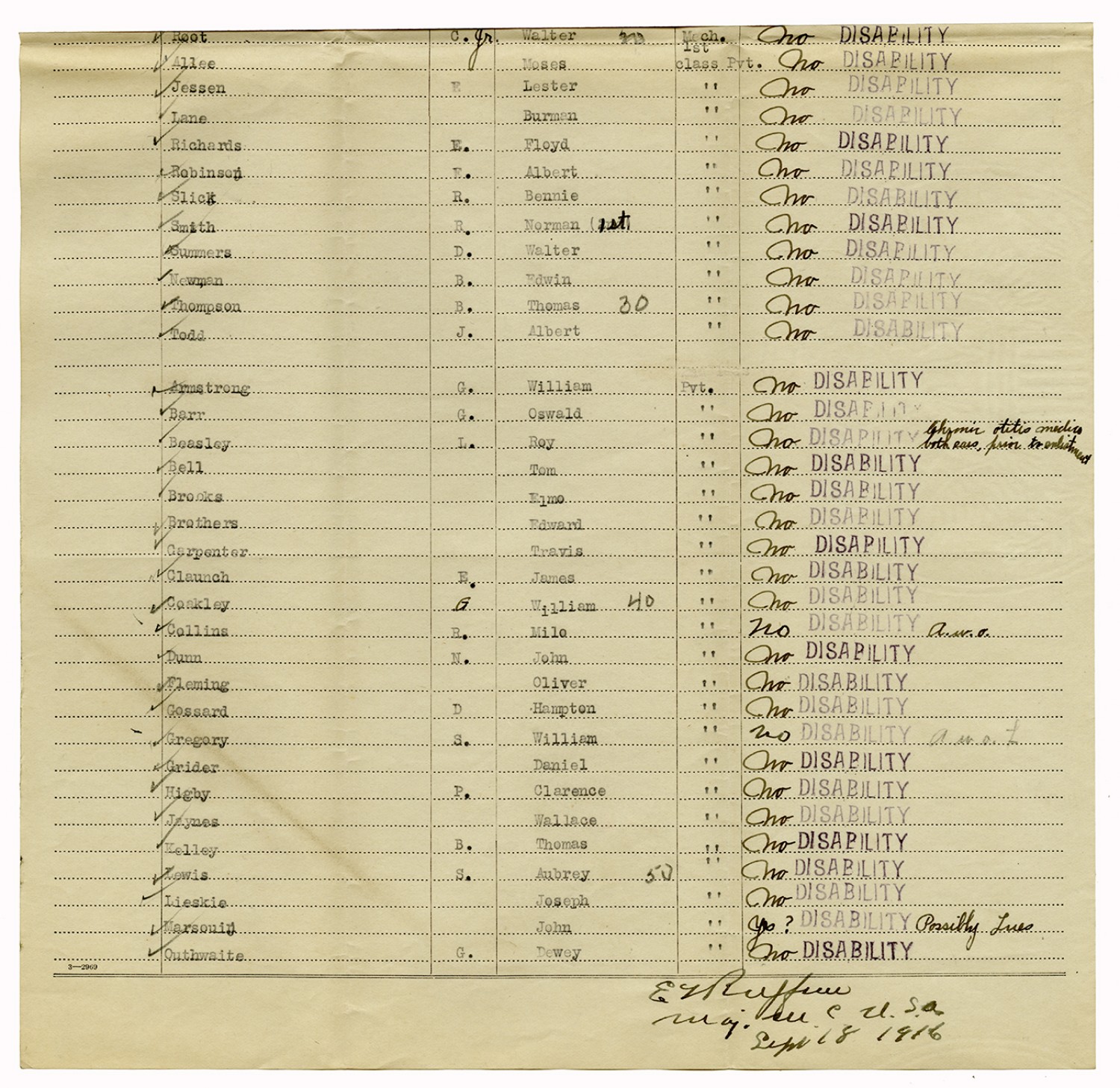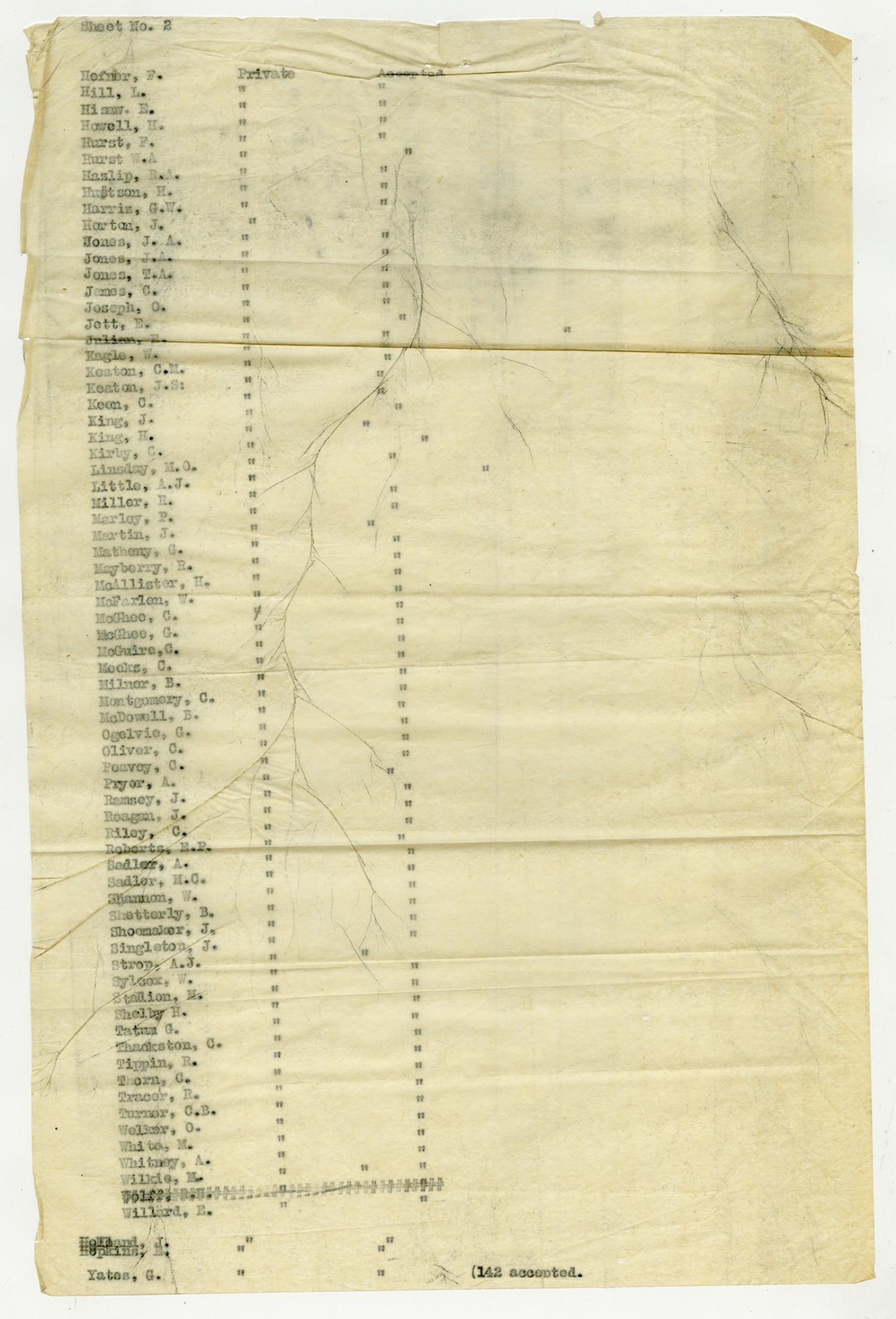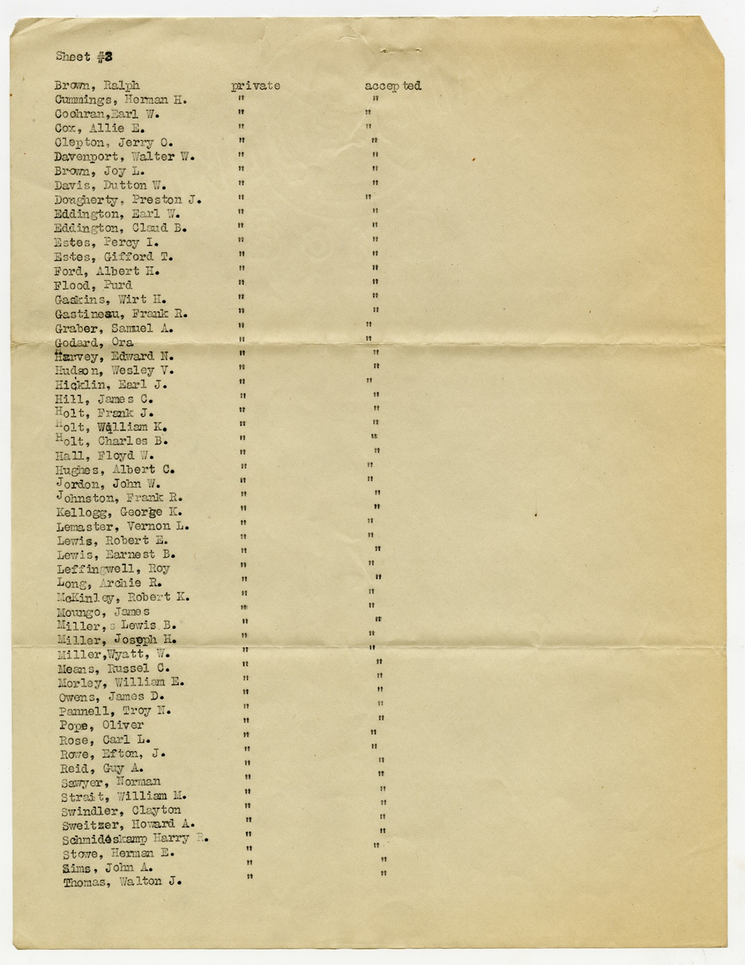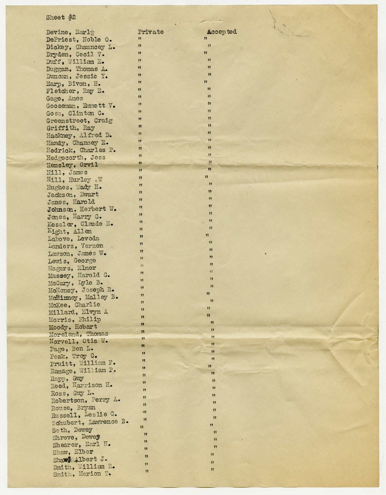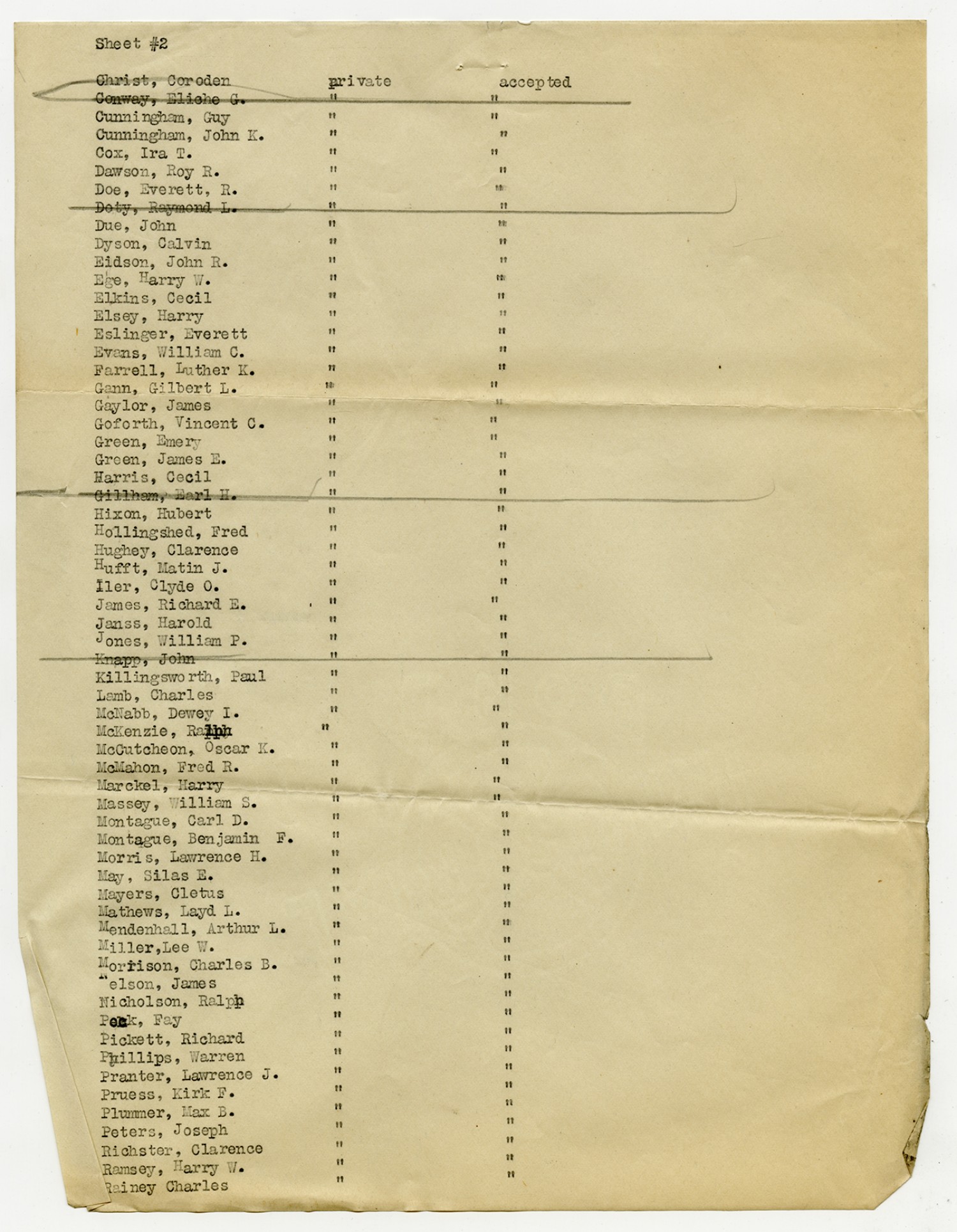 Men Accepted and Rejected to the Machine Gun Company, Second Regiment - September 5, 1917
