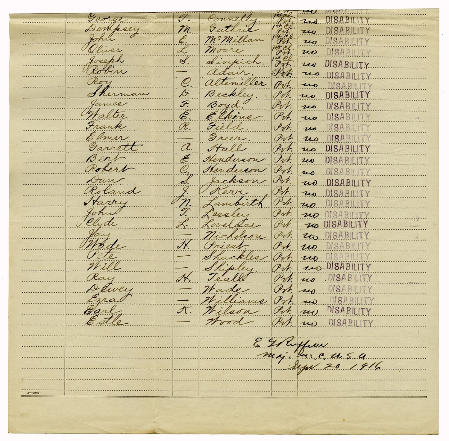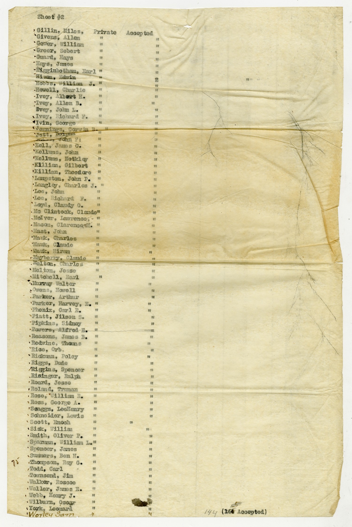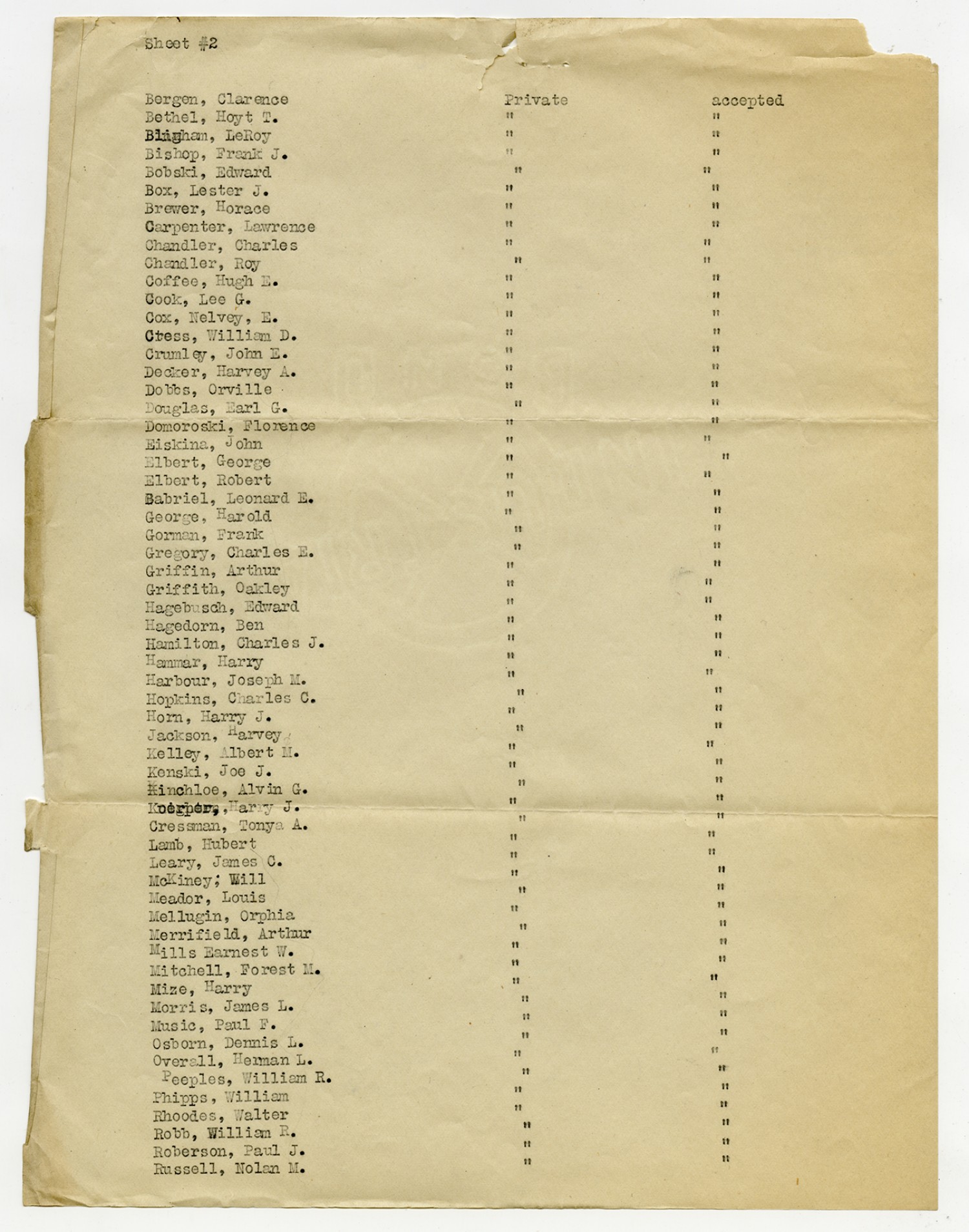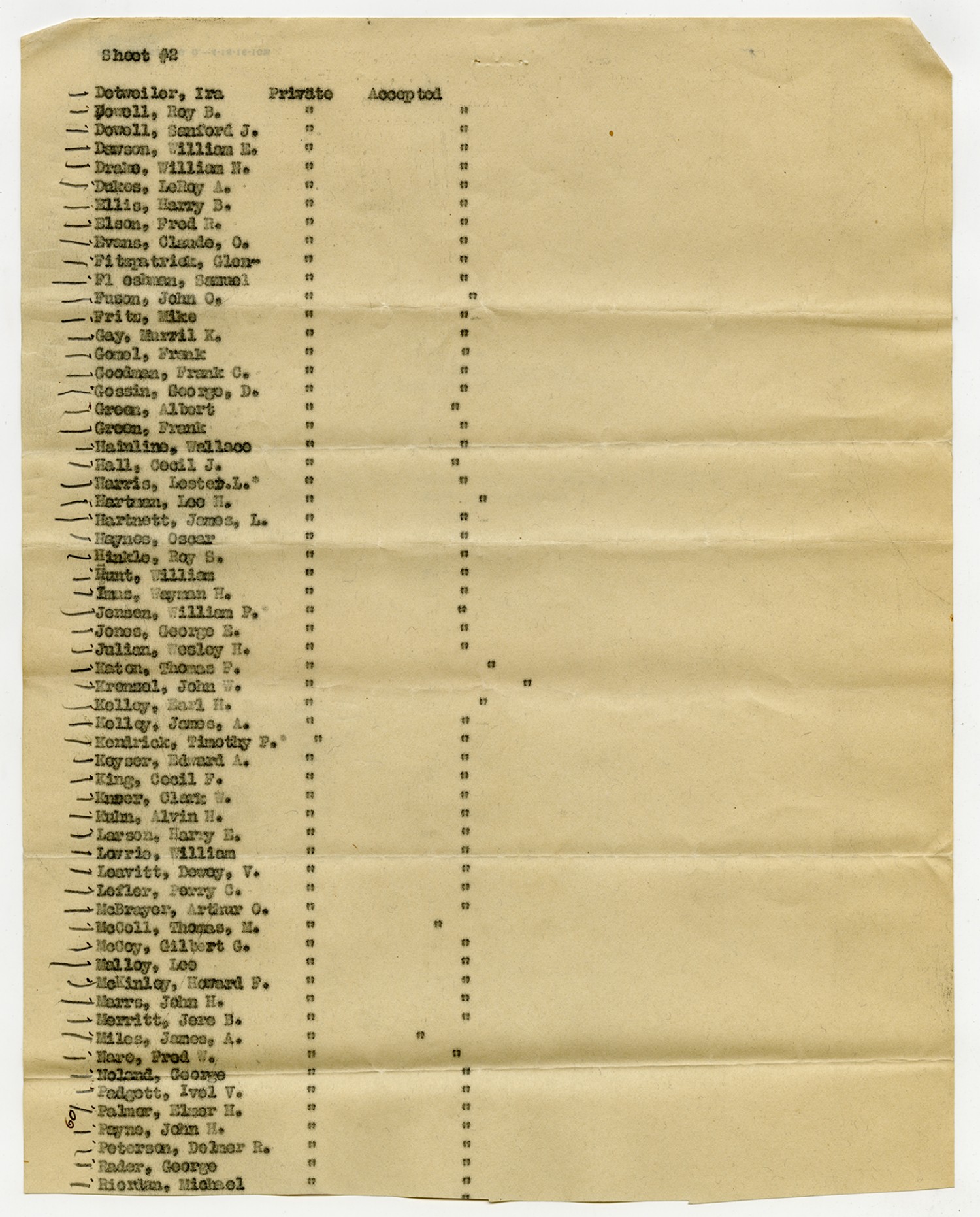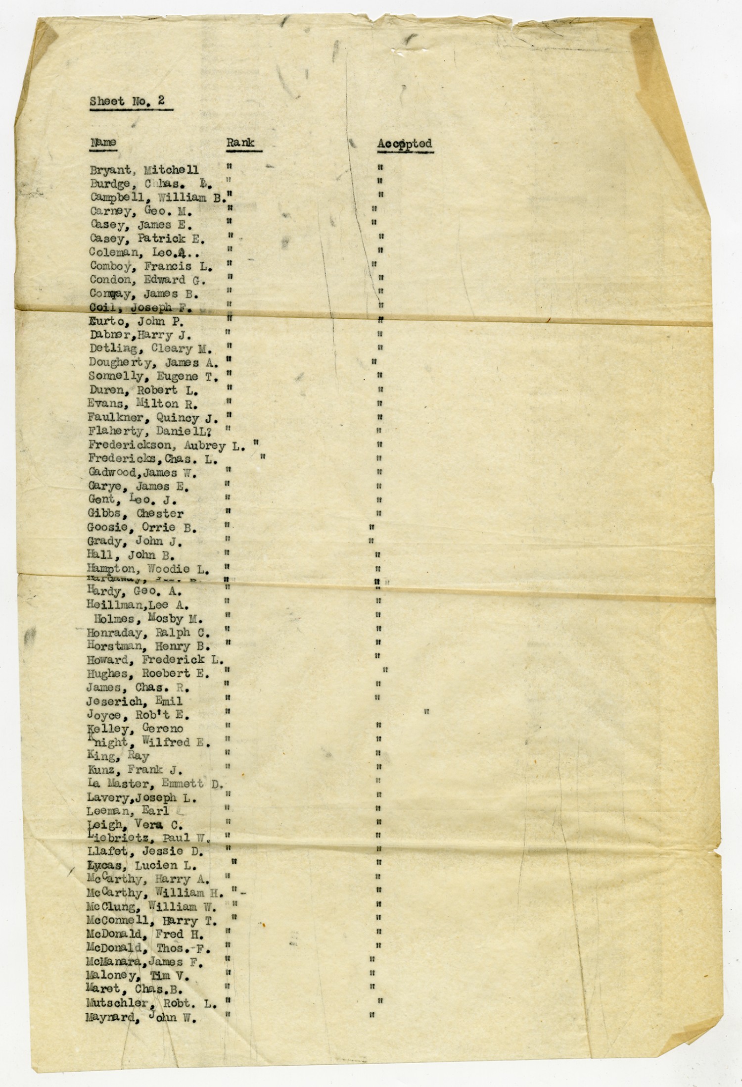 Men Accepted and Rejected to the Machine Gun Company, Second Regiment - September 5, 1917