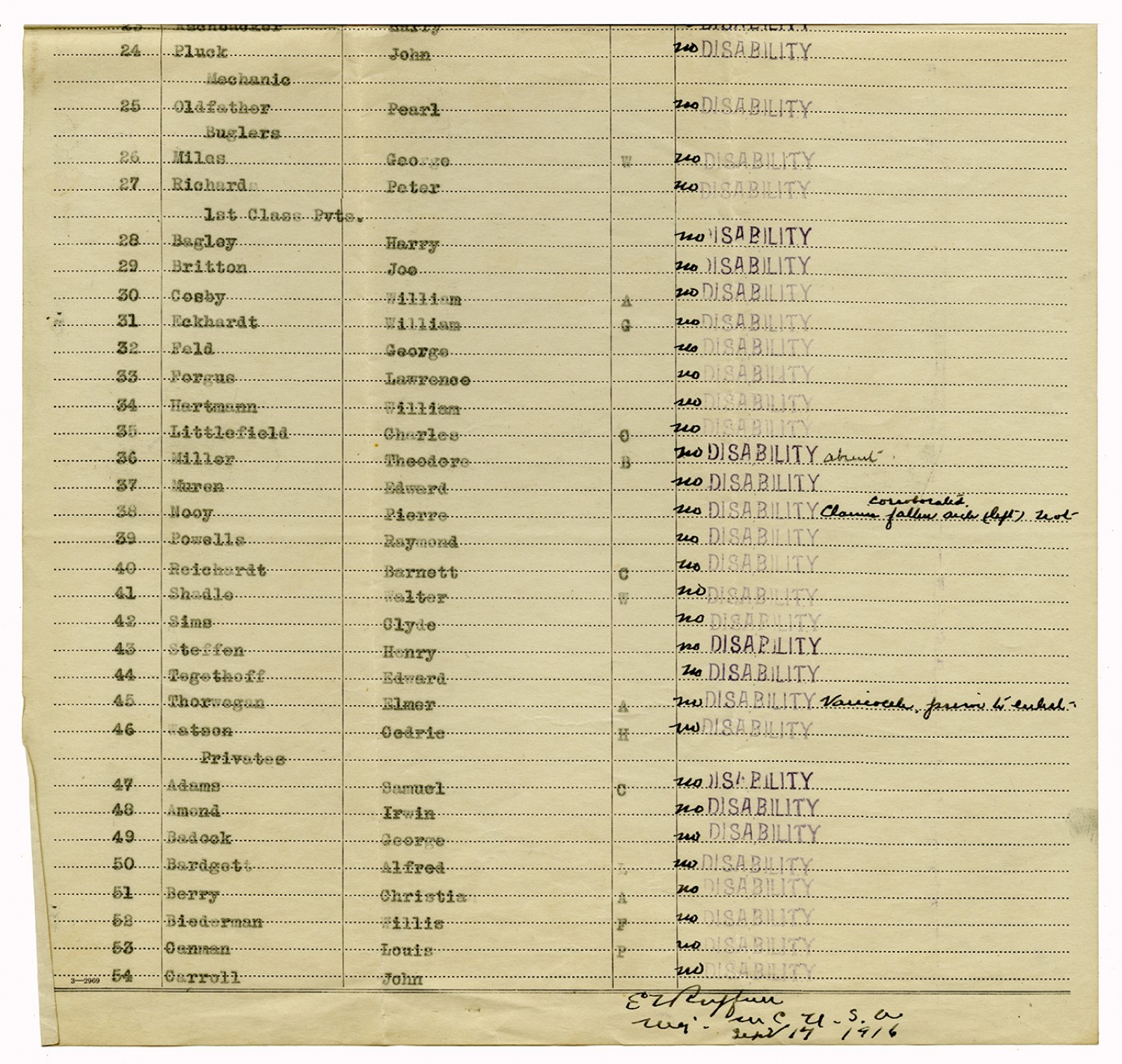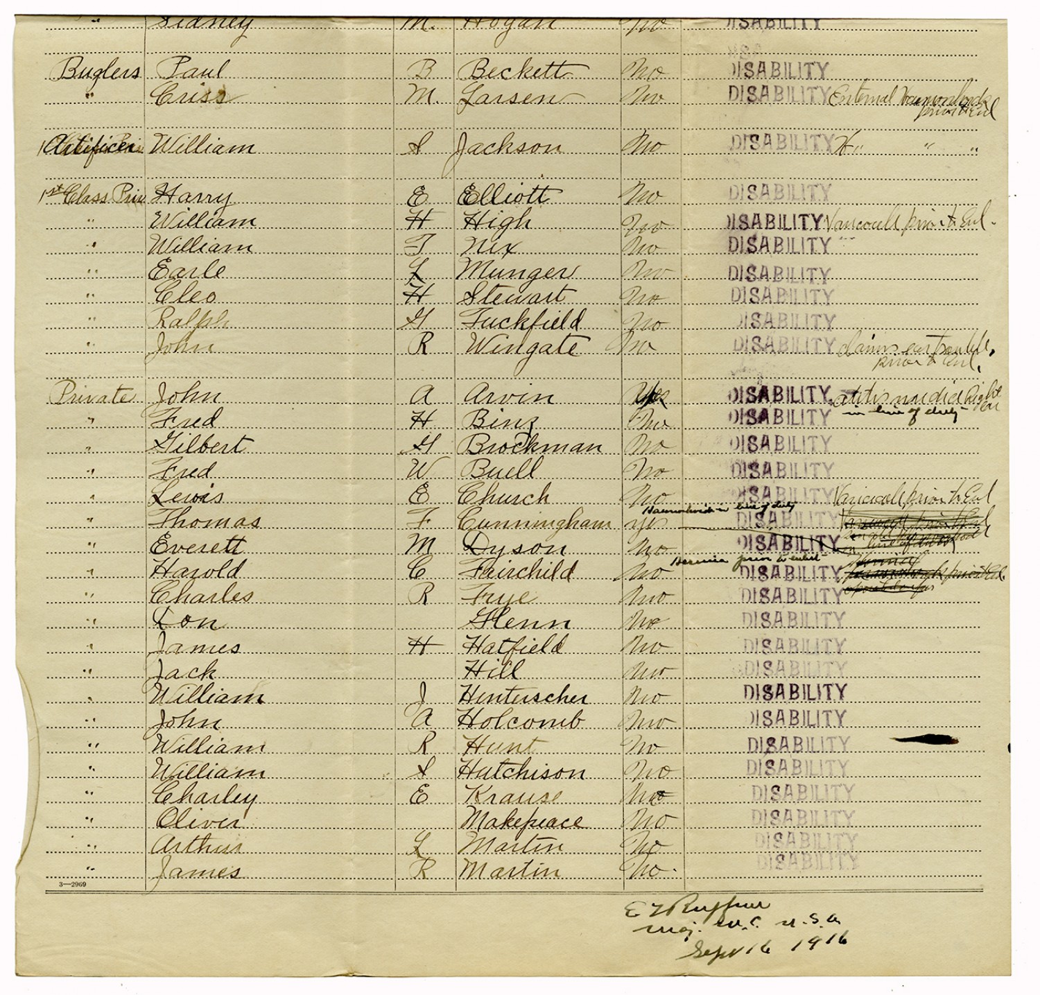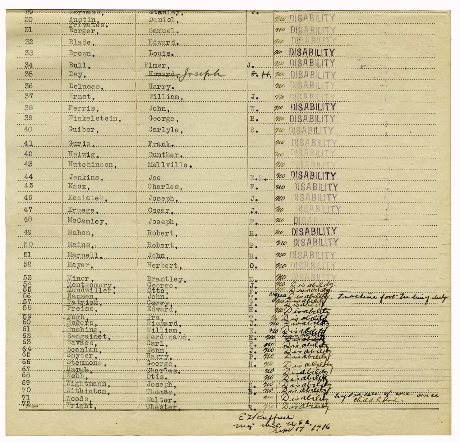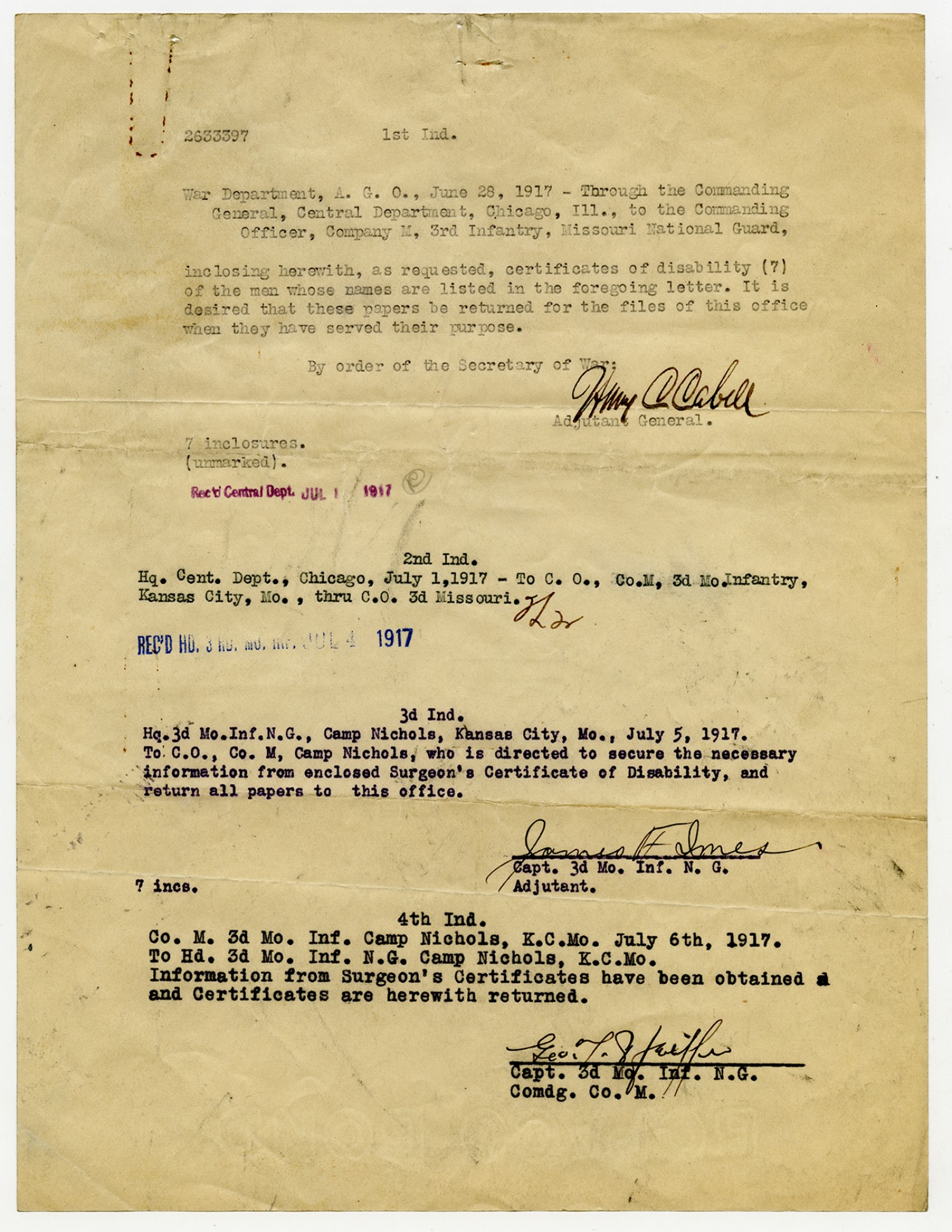 Indorsements for Disability - July 1, 1917