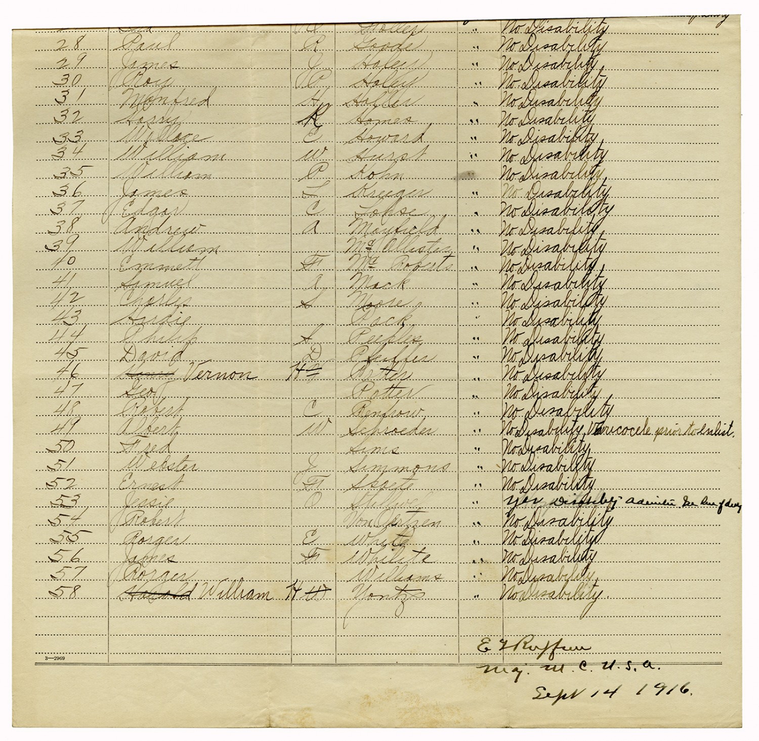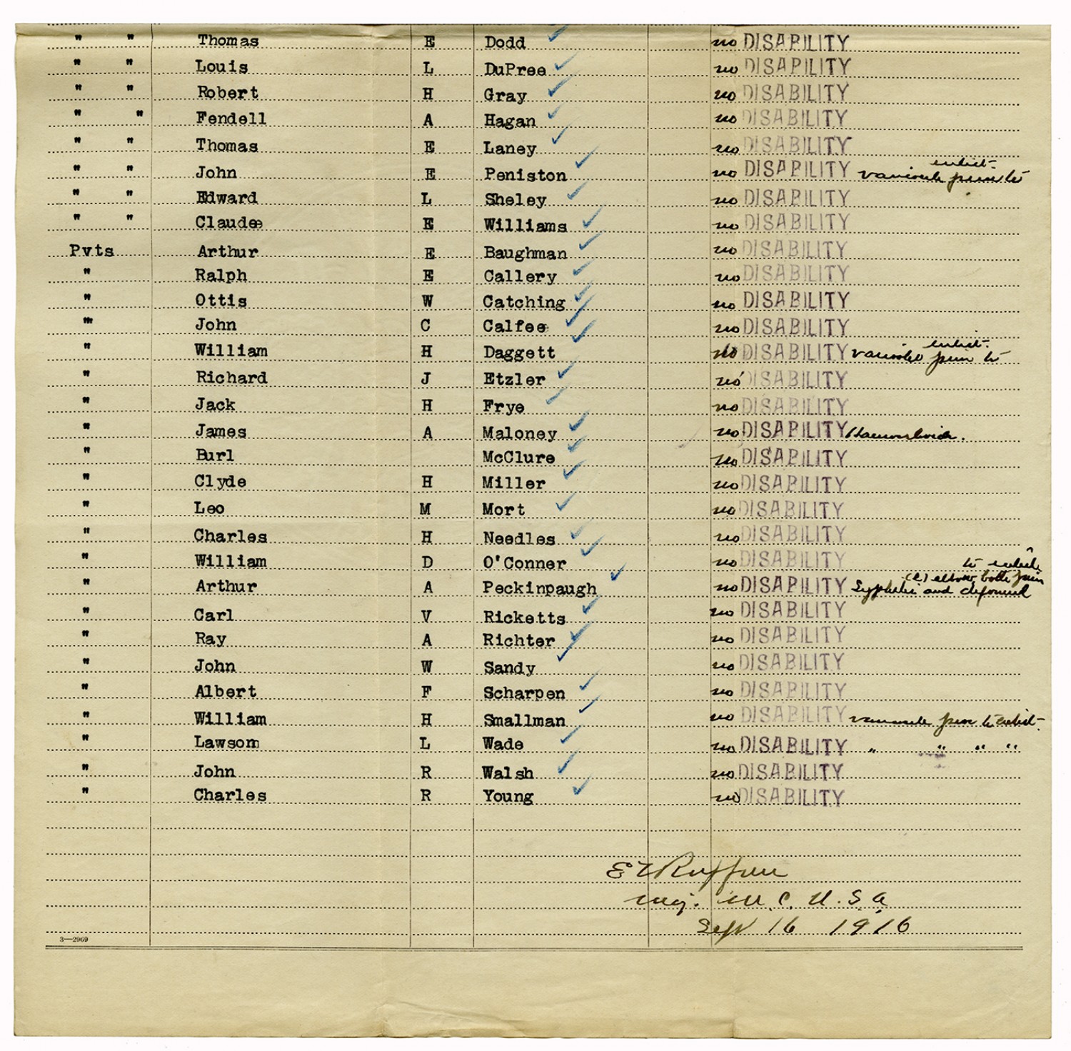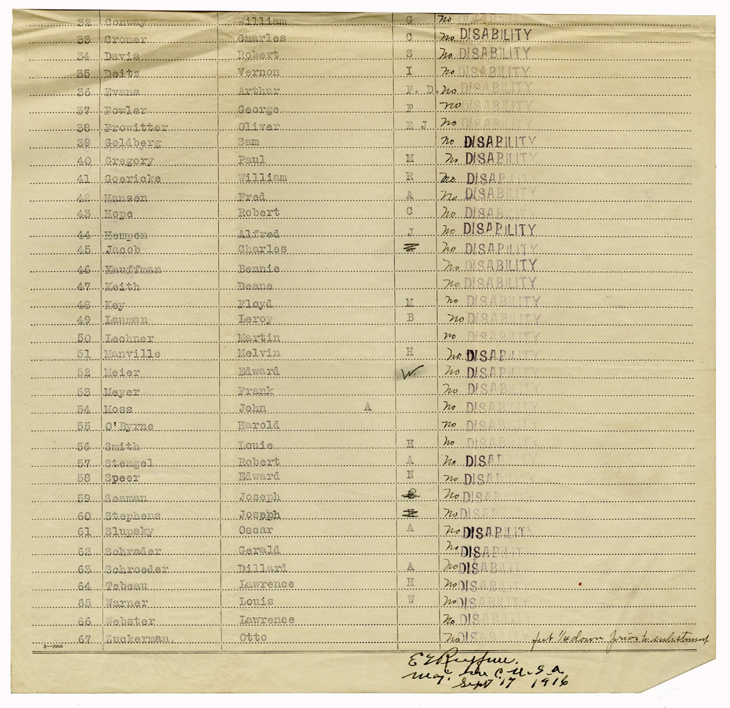 Indorsements for Disability - July 1, 1917