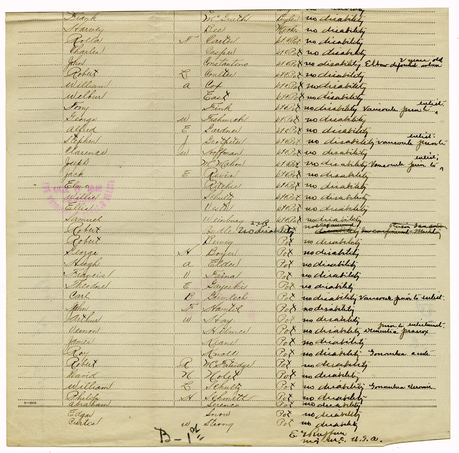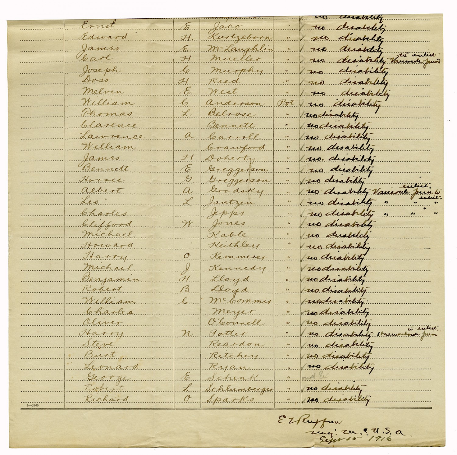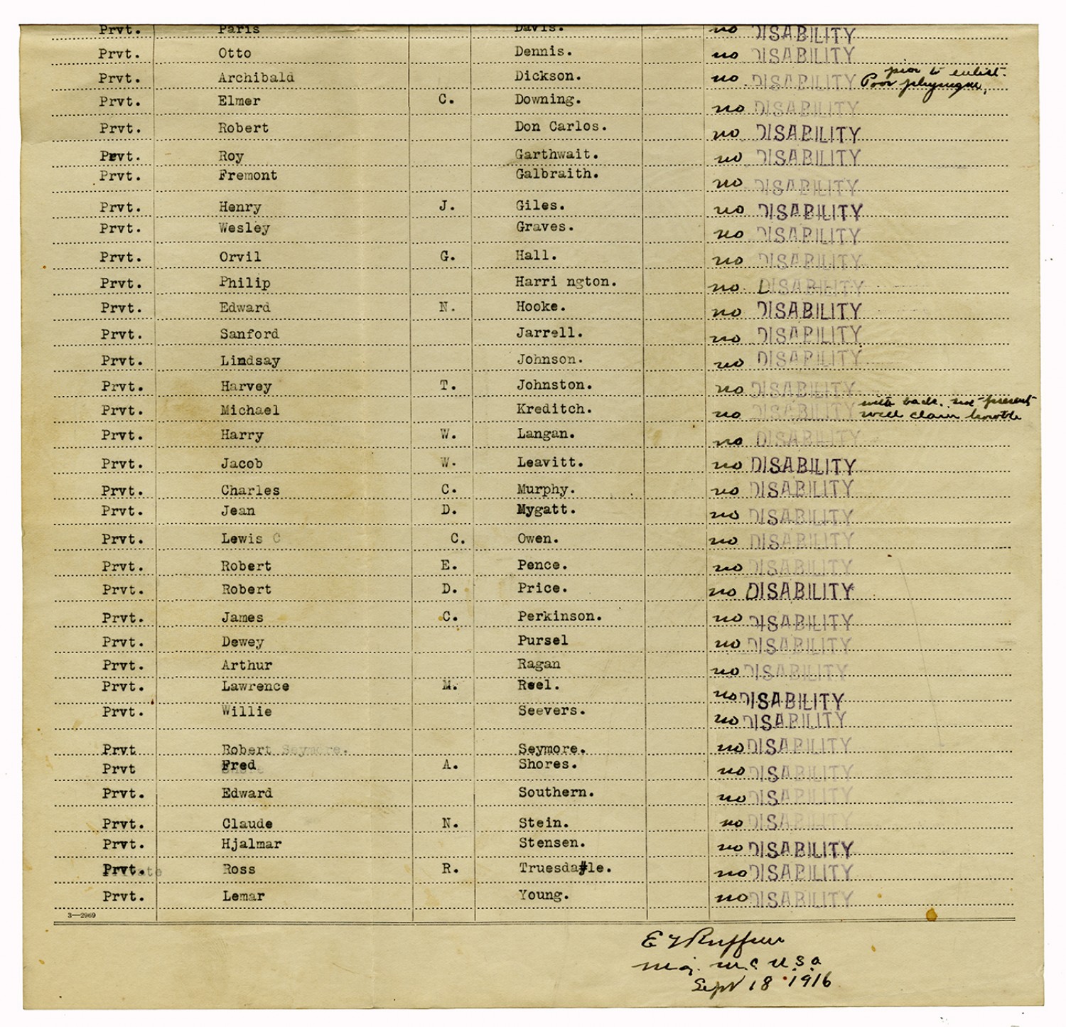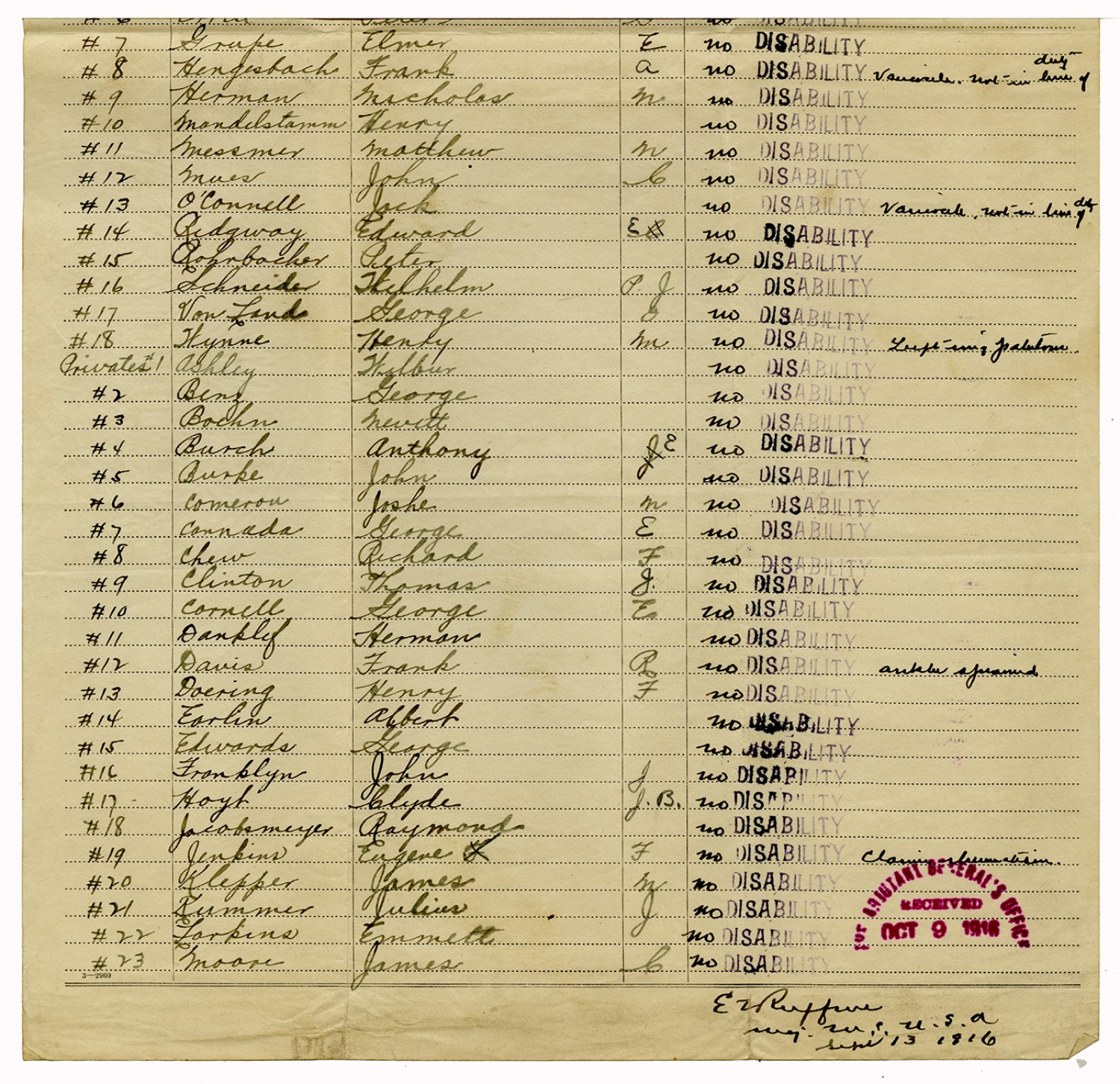 Indorsements for Disability - July 1, 1917