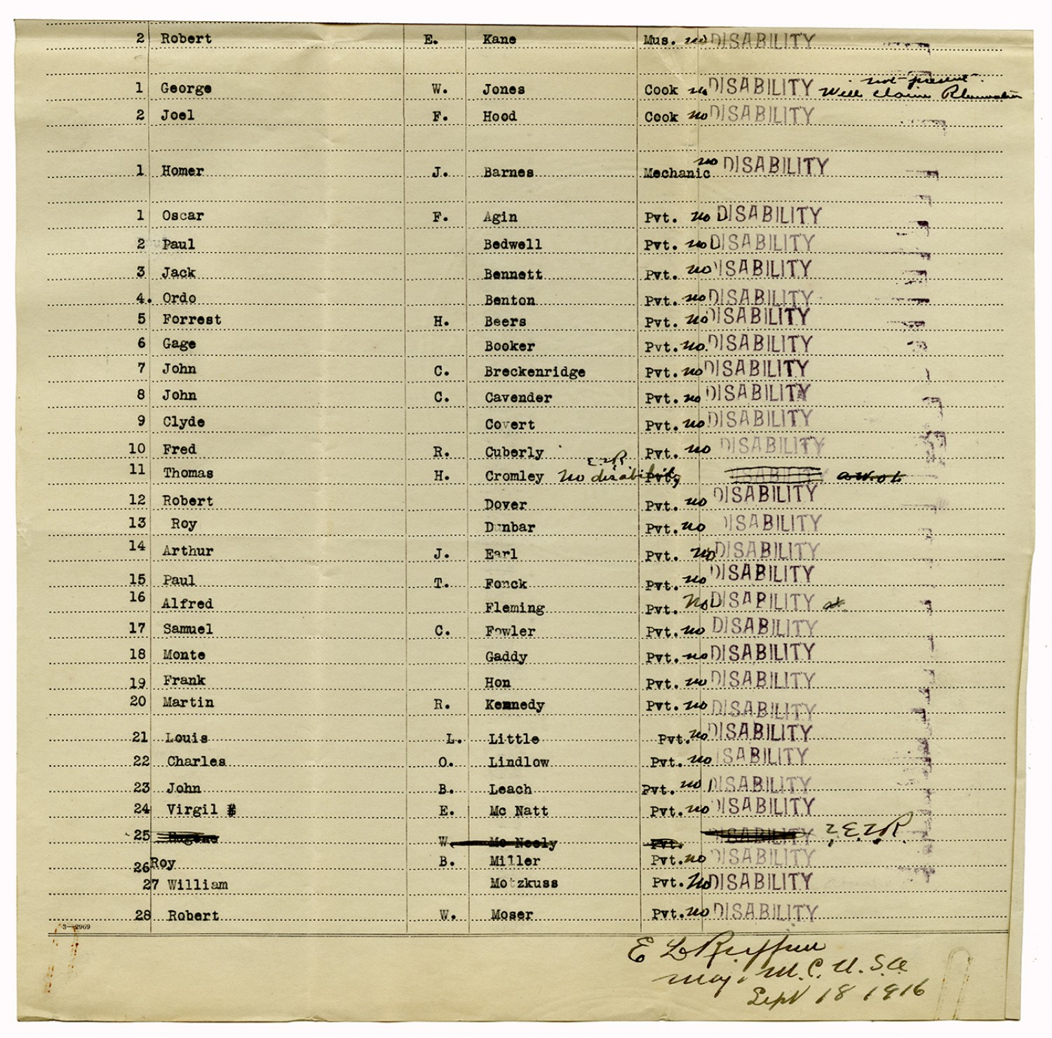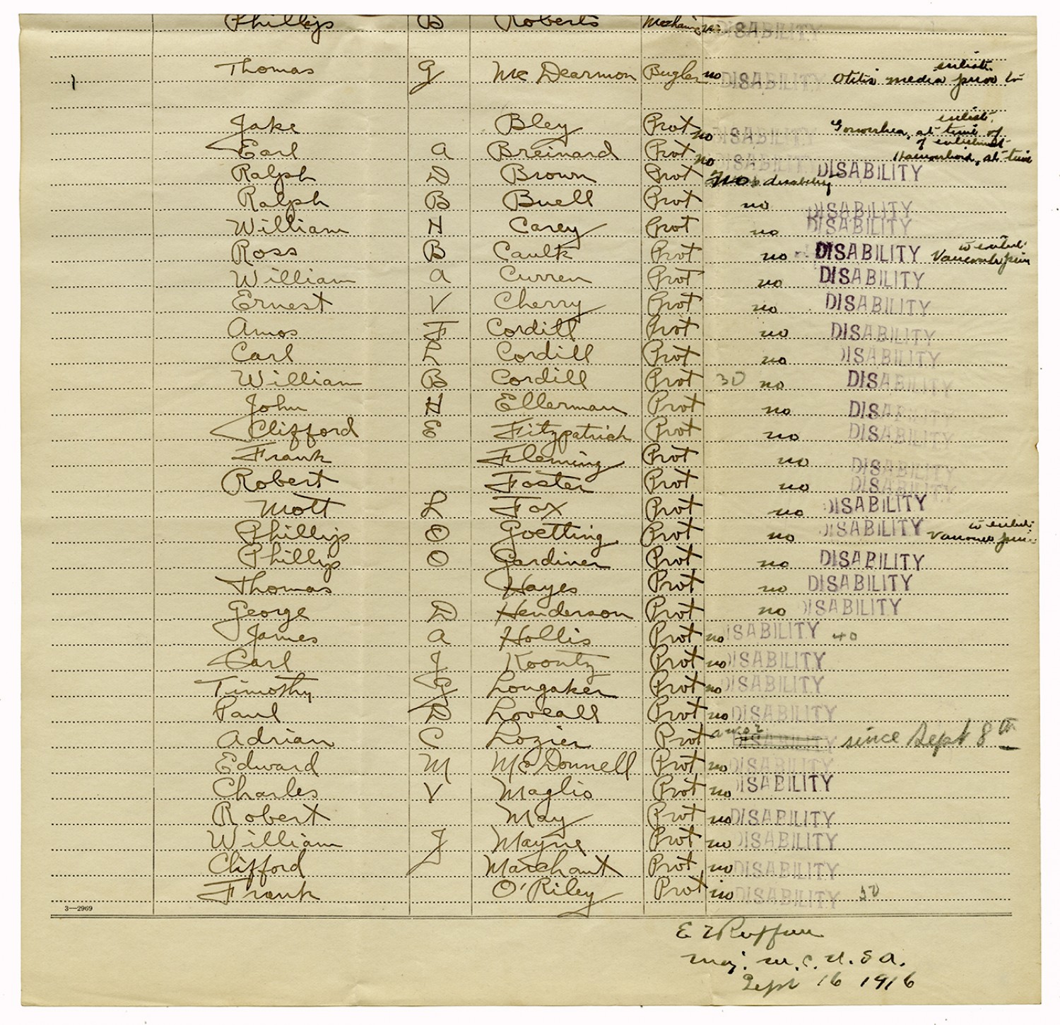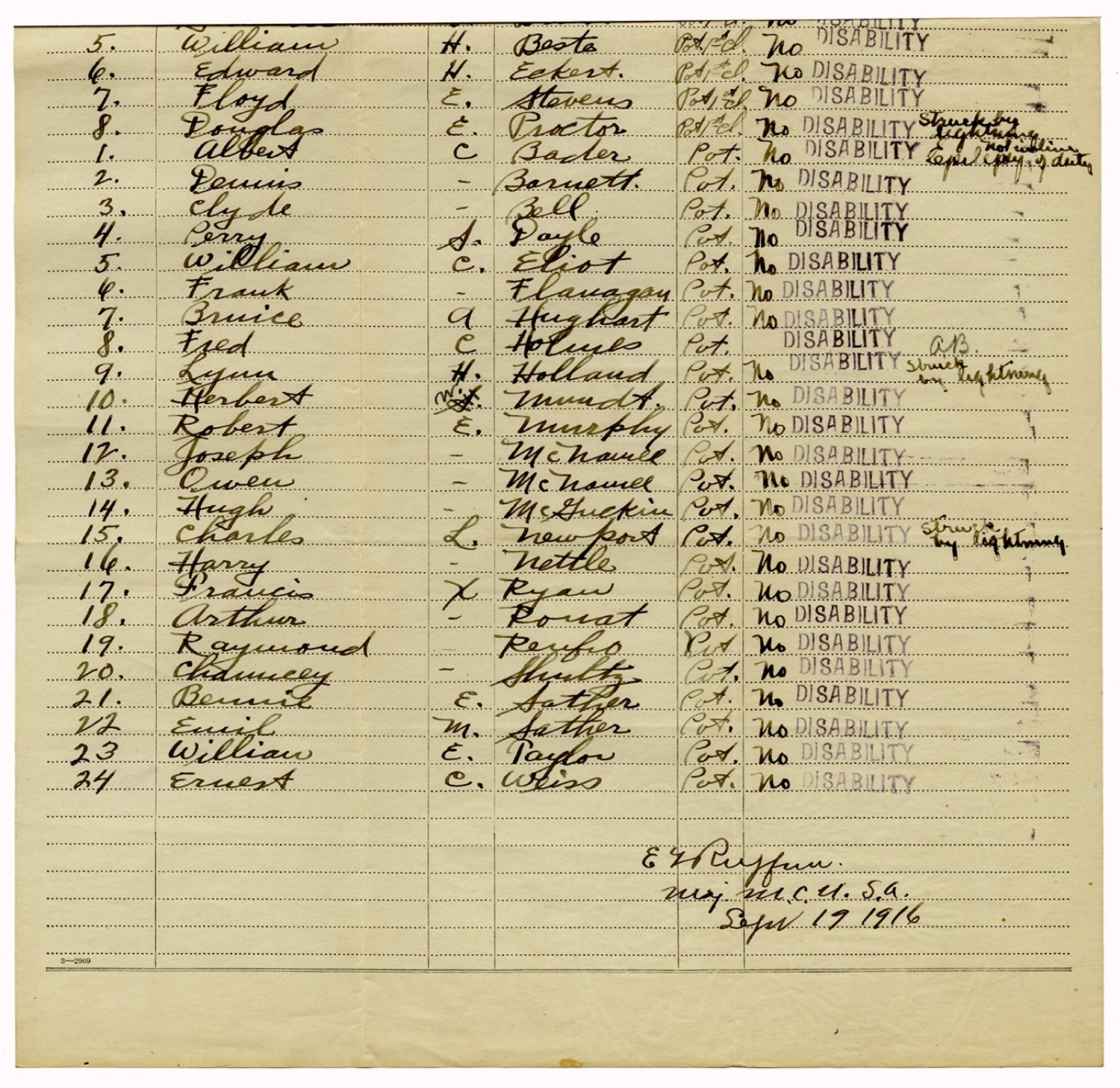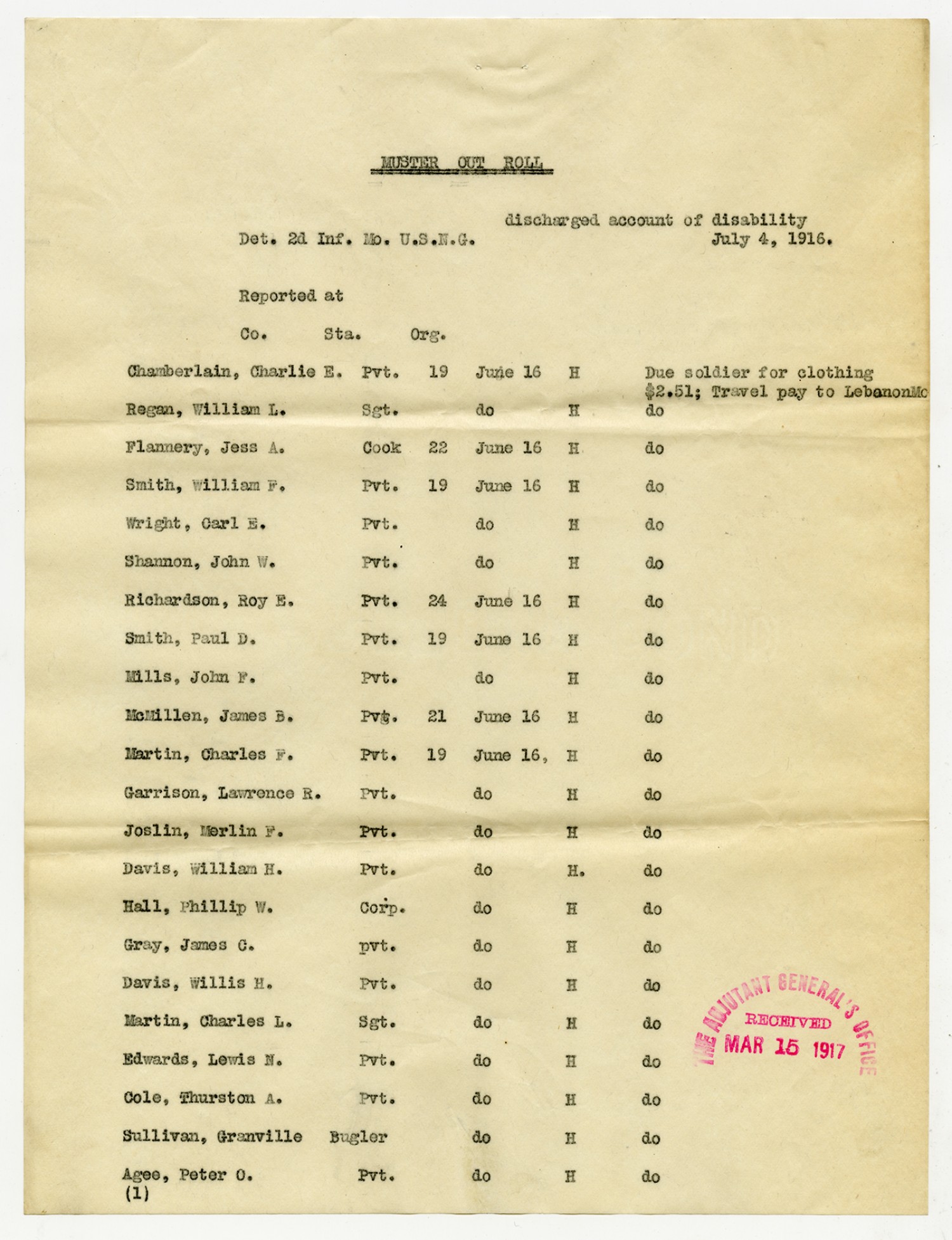 Muster Out Roll - July 4, 1916