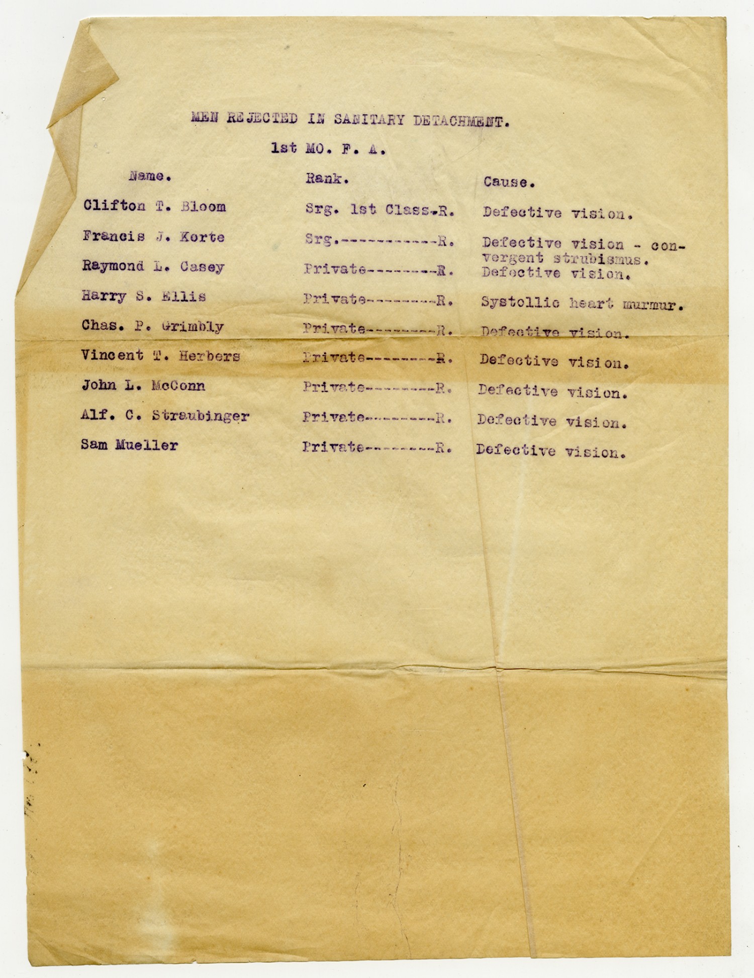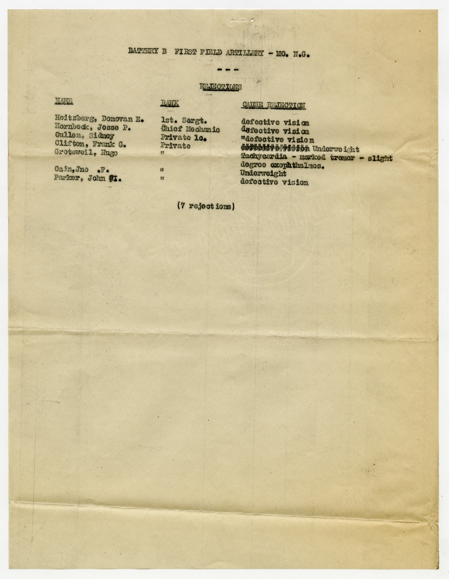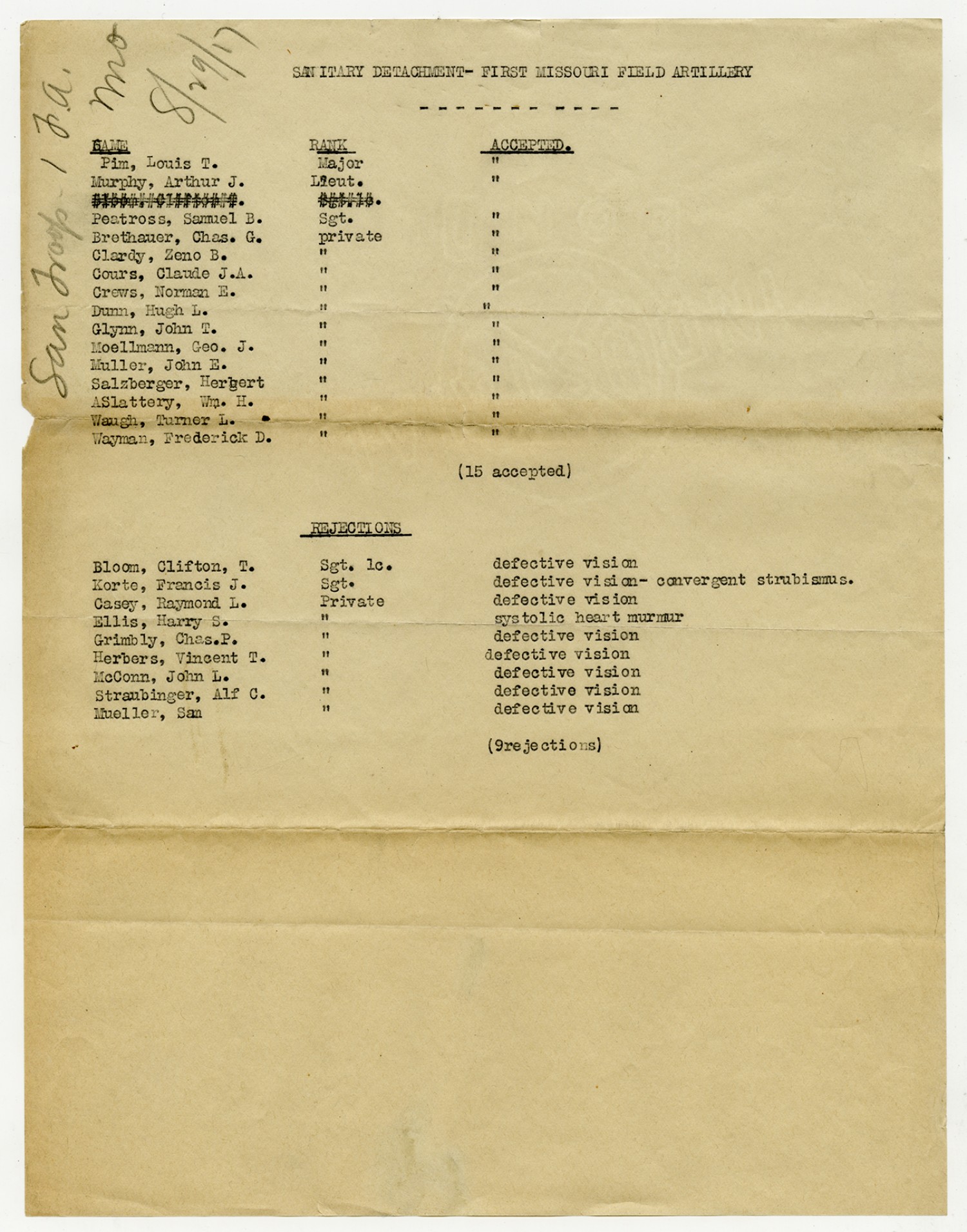 Men Rejected in Sanitary Detachment, 1st Missouri Field Artillery - n.d.