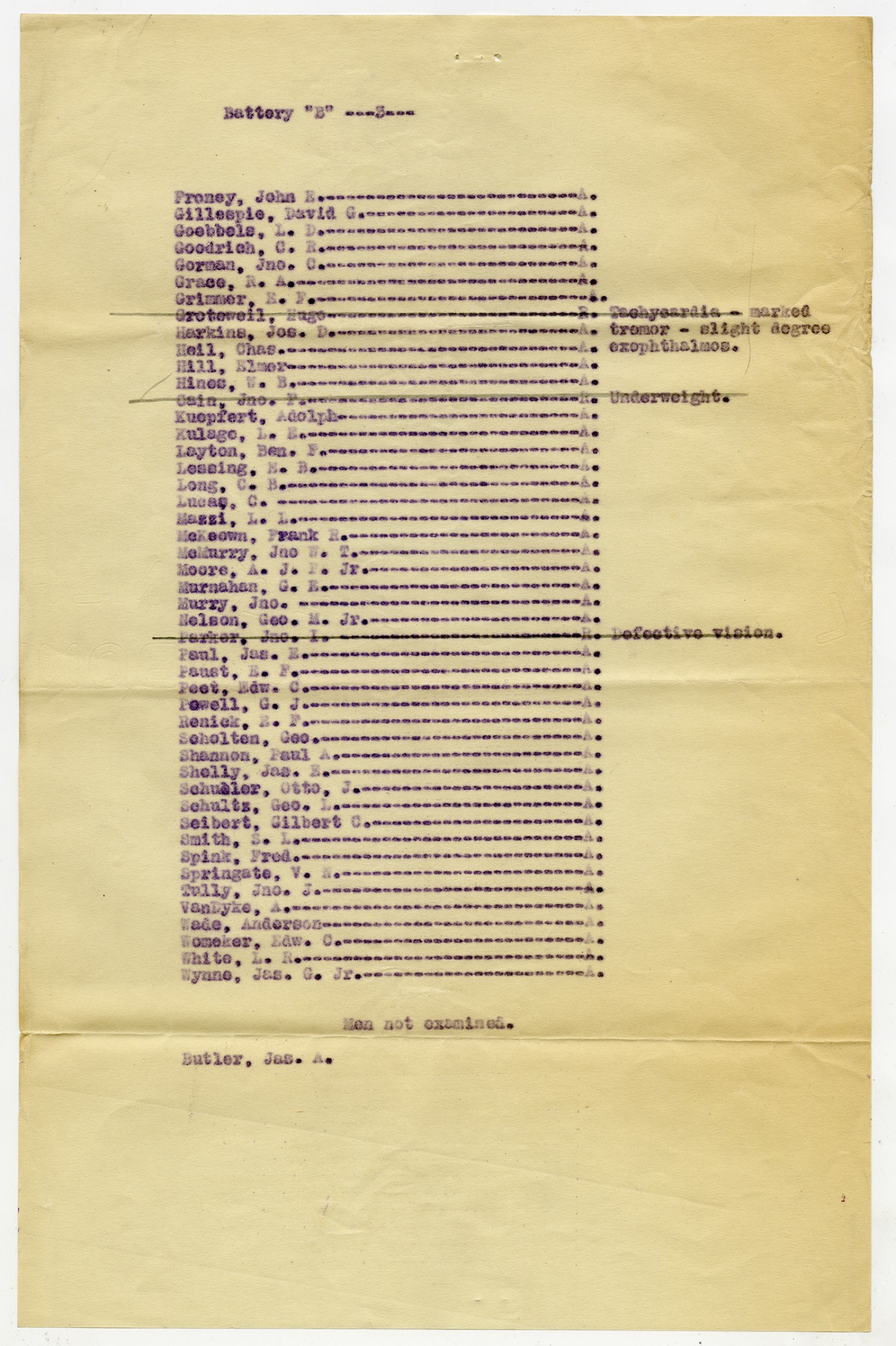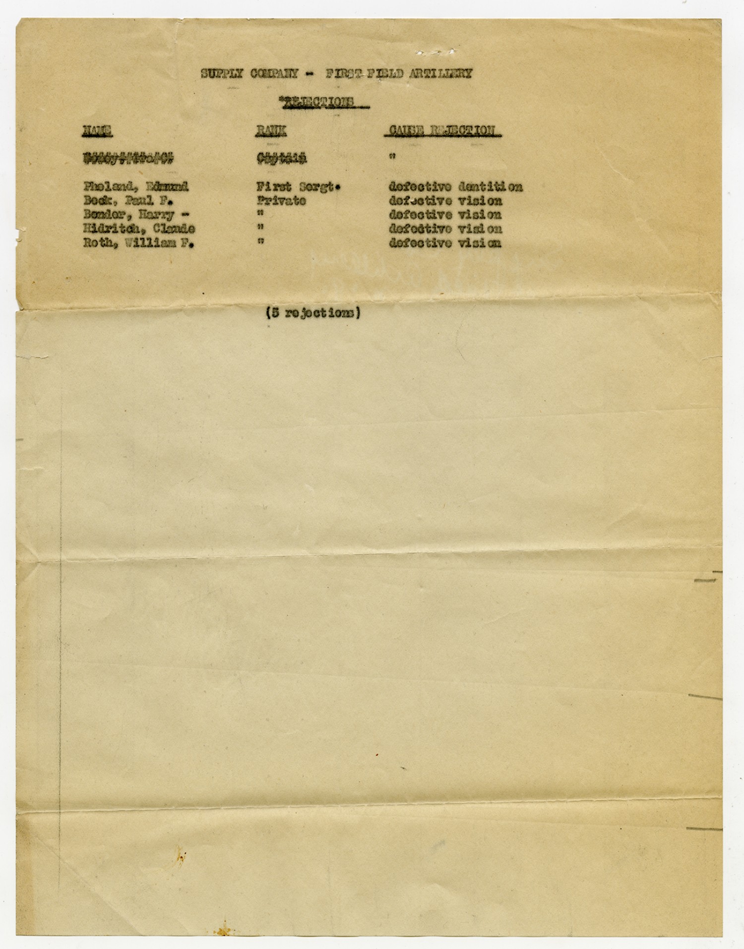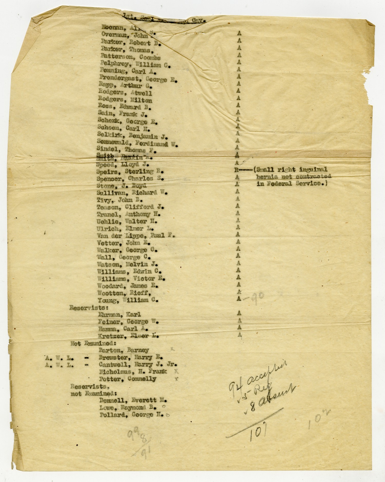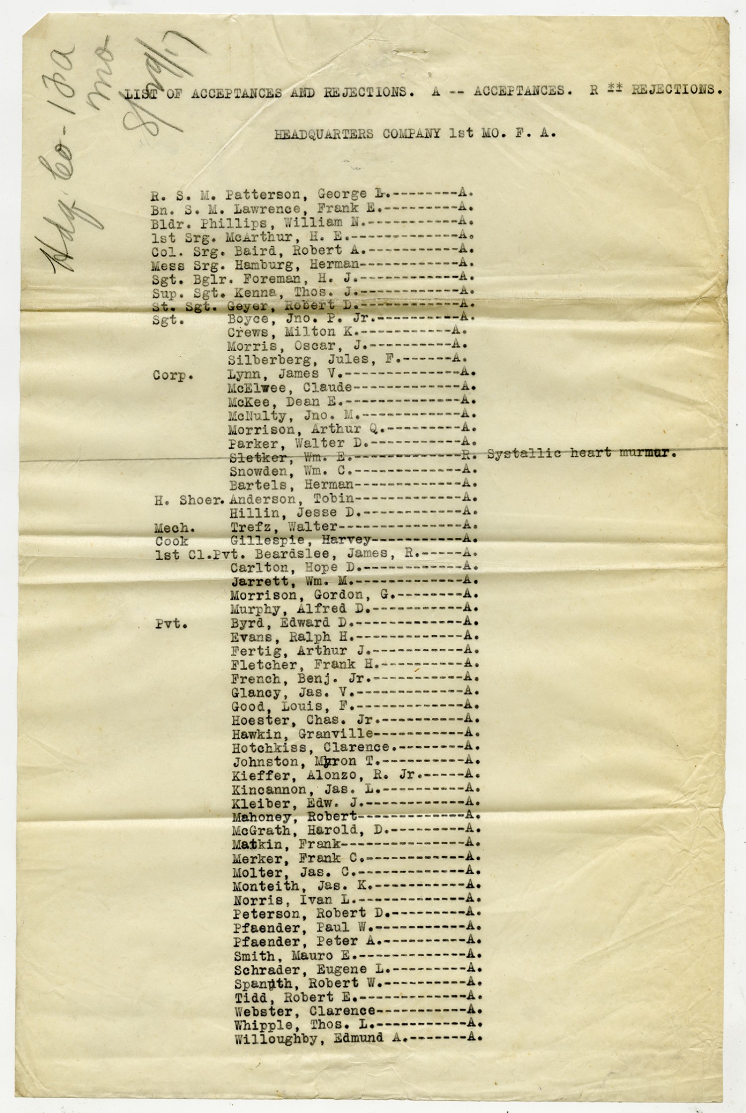 Men Accepted and Rejected in Company A, 1st Field Battalion -n.d.