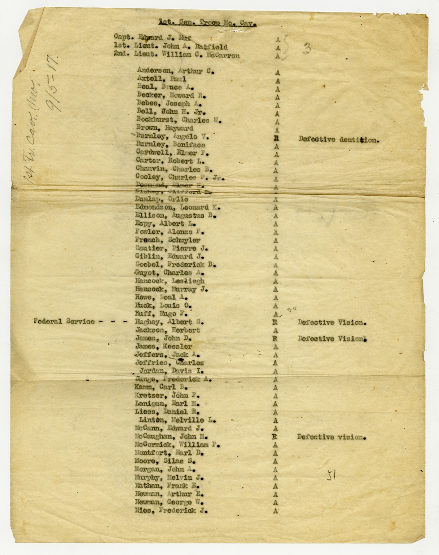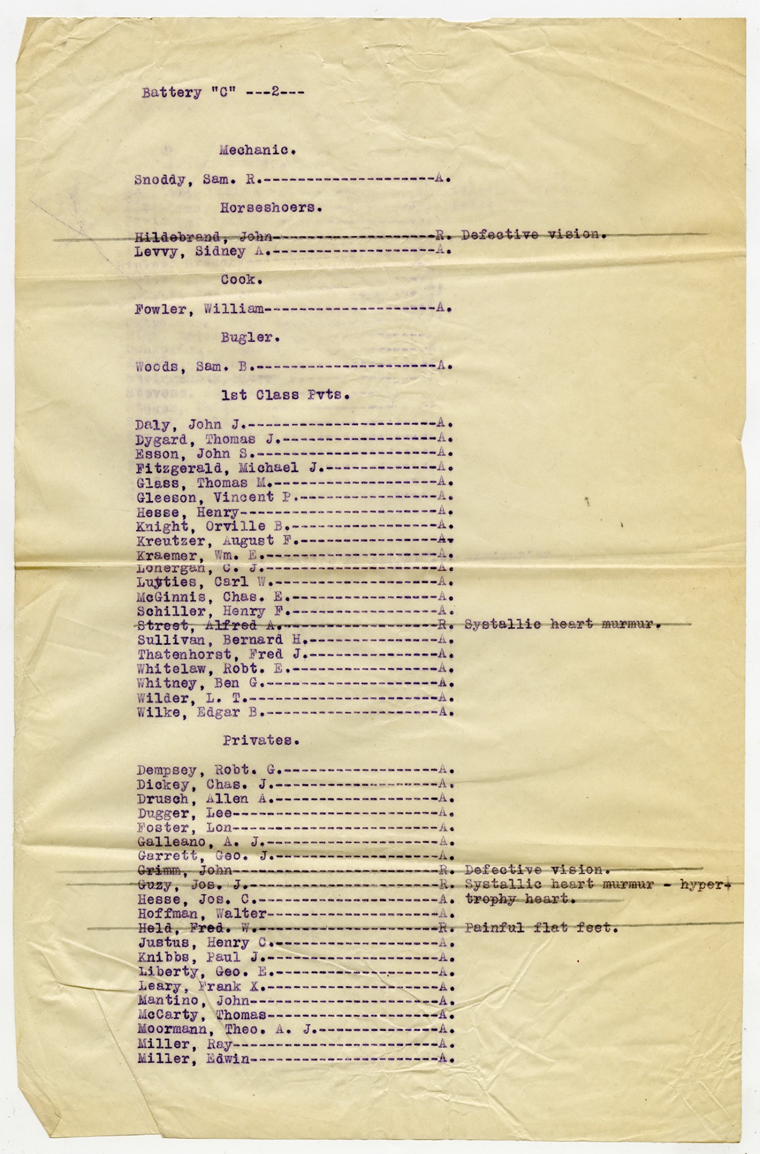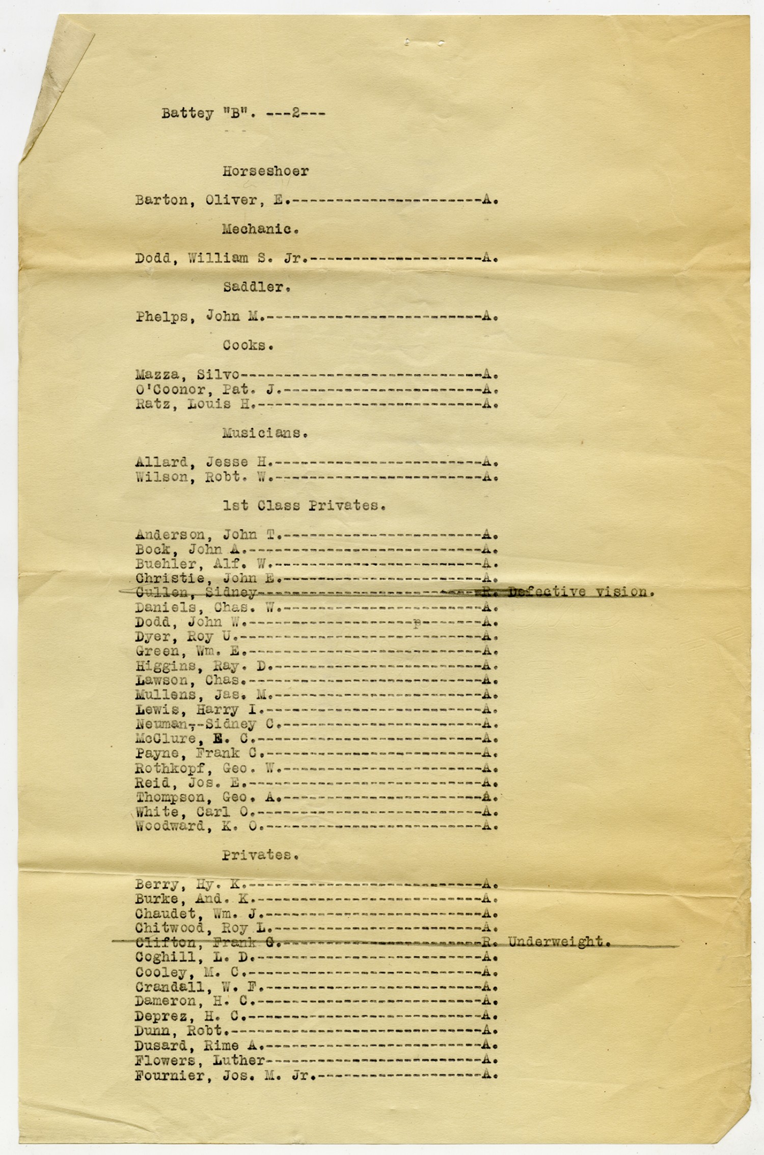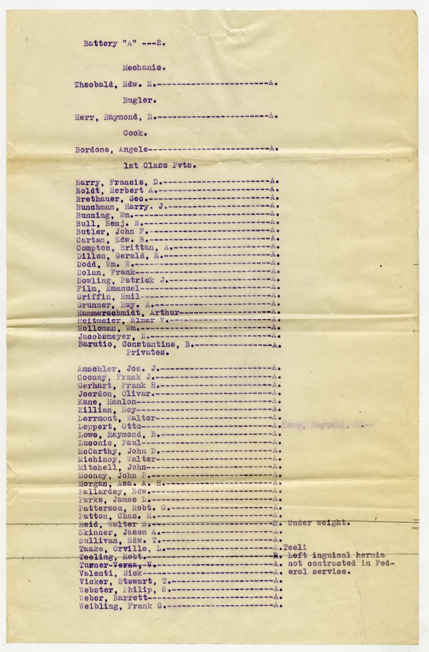 Men Accepted and Rejected in Company A, 1st Field Battalion -n.d.