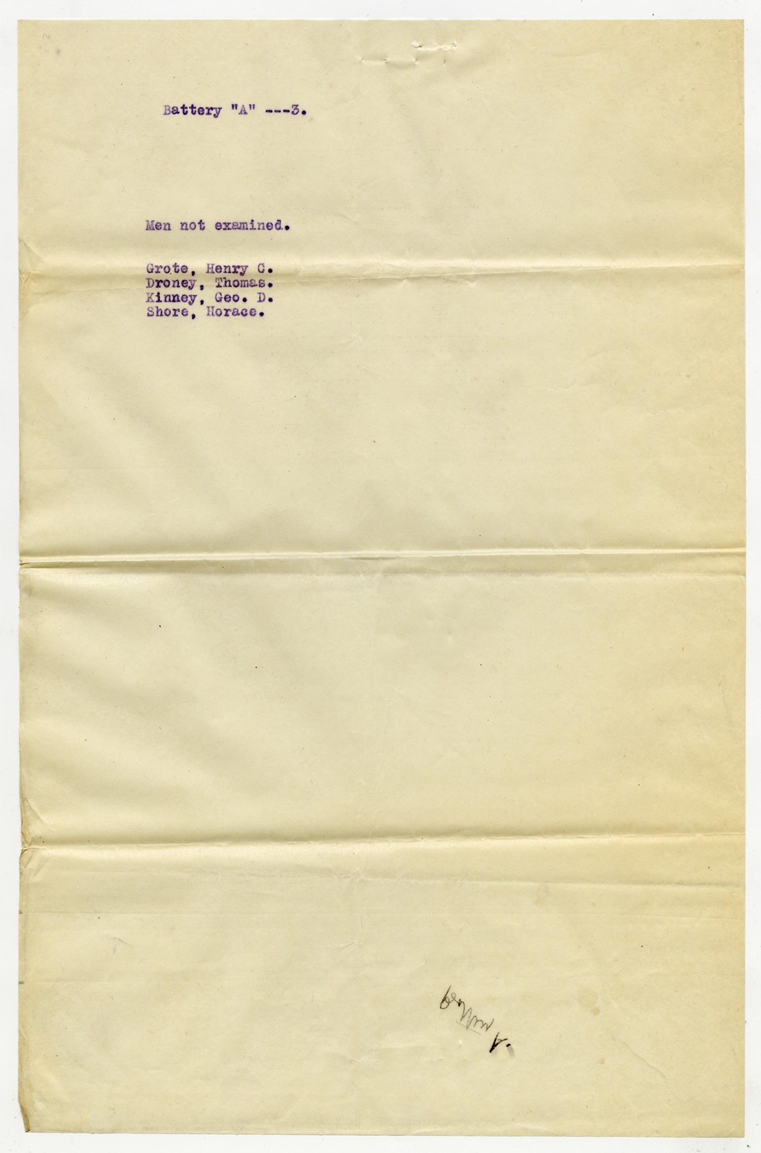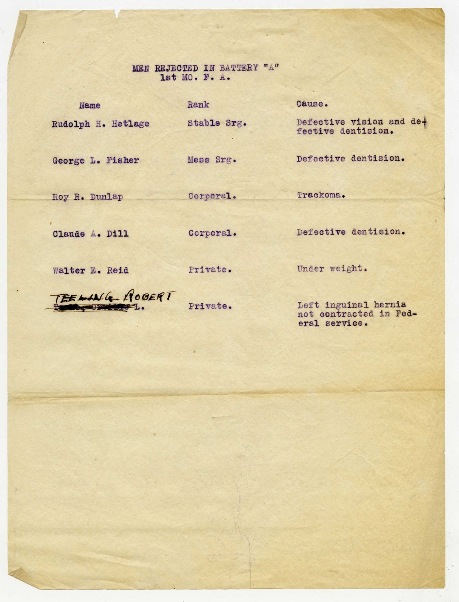 Men Rejected in Battery A, 1st Missouri Field Artillery - n.d.