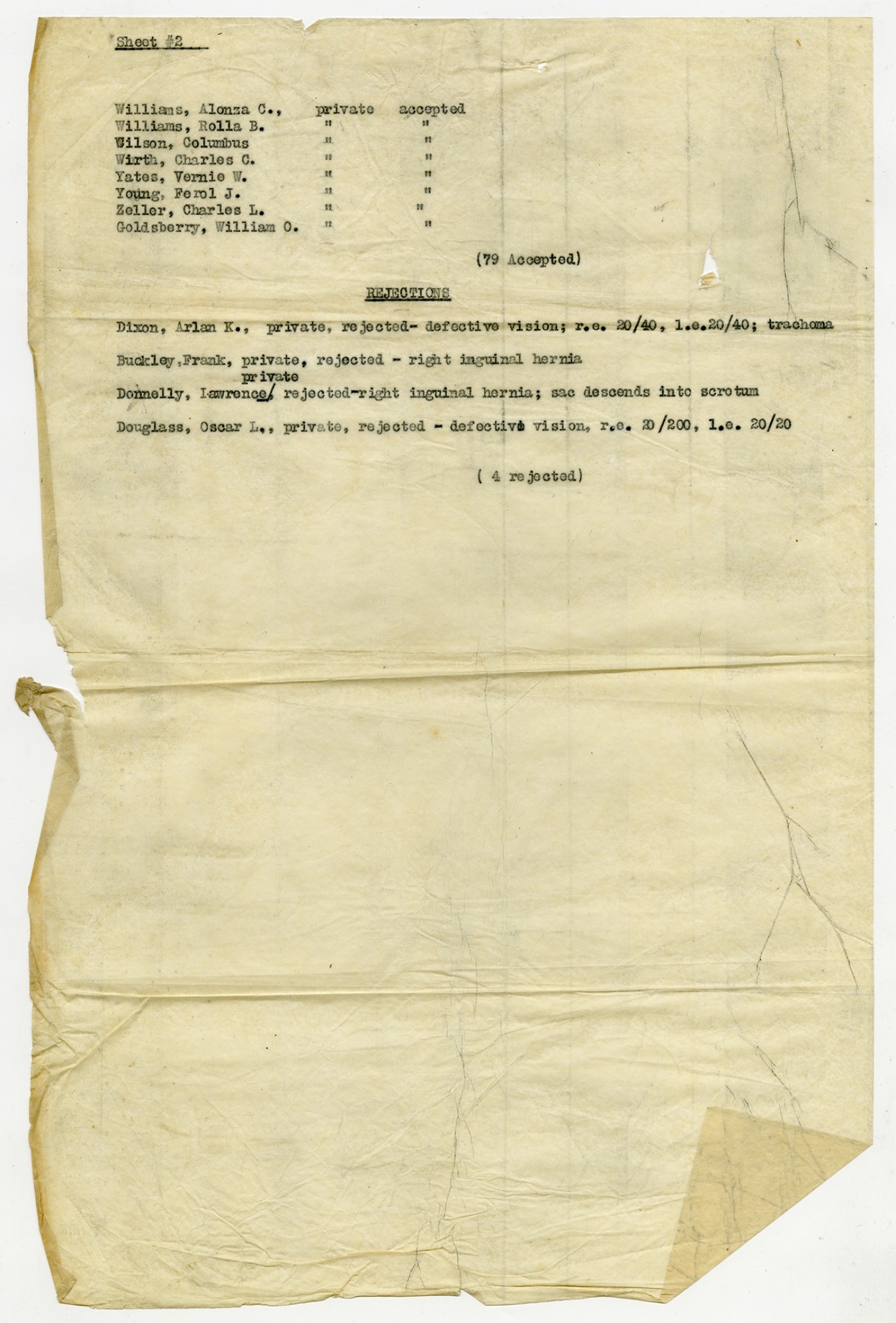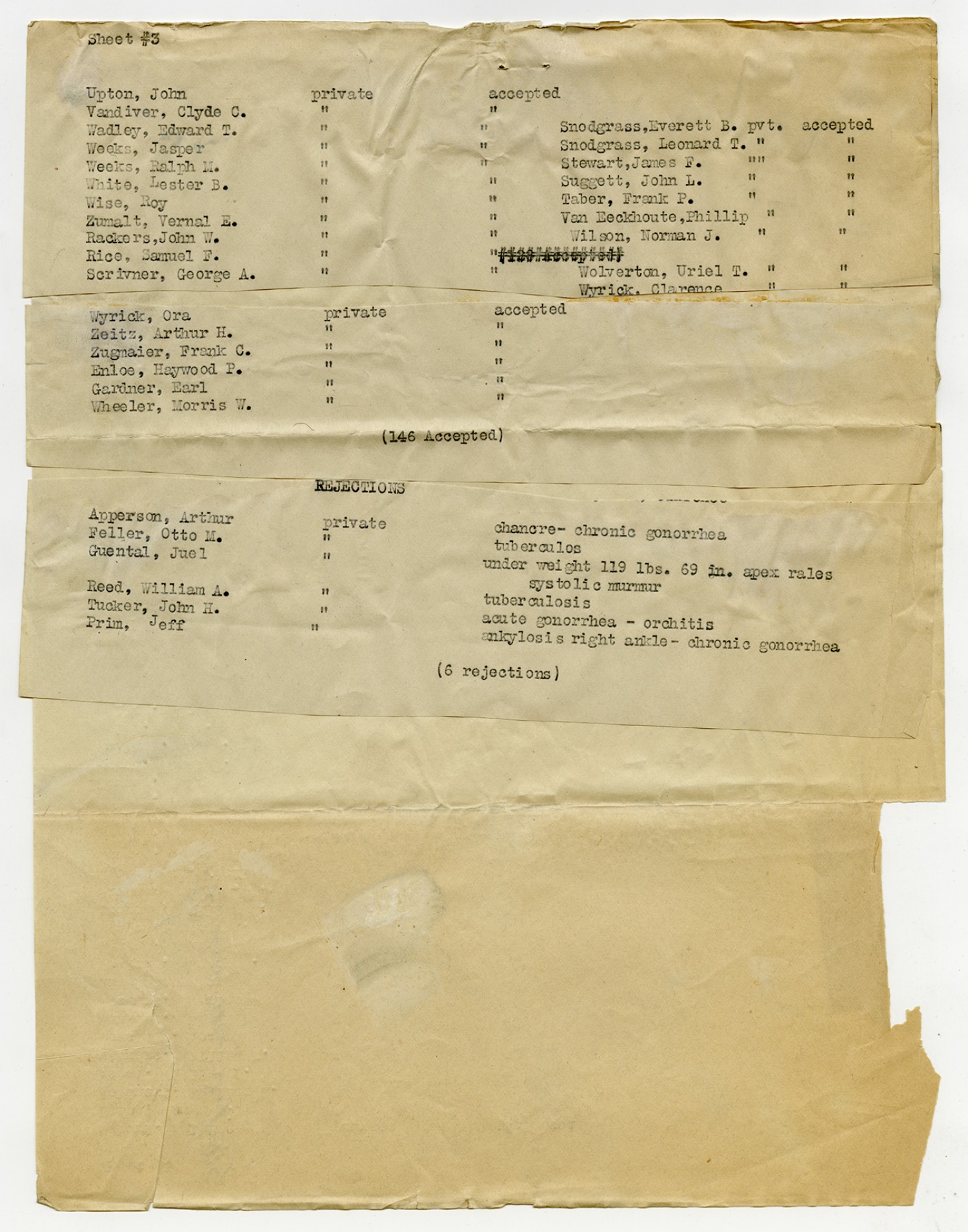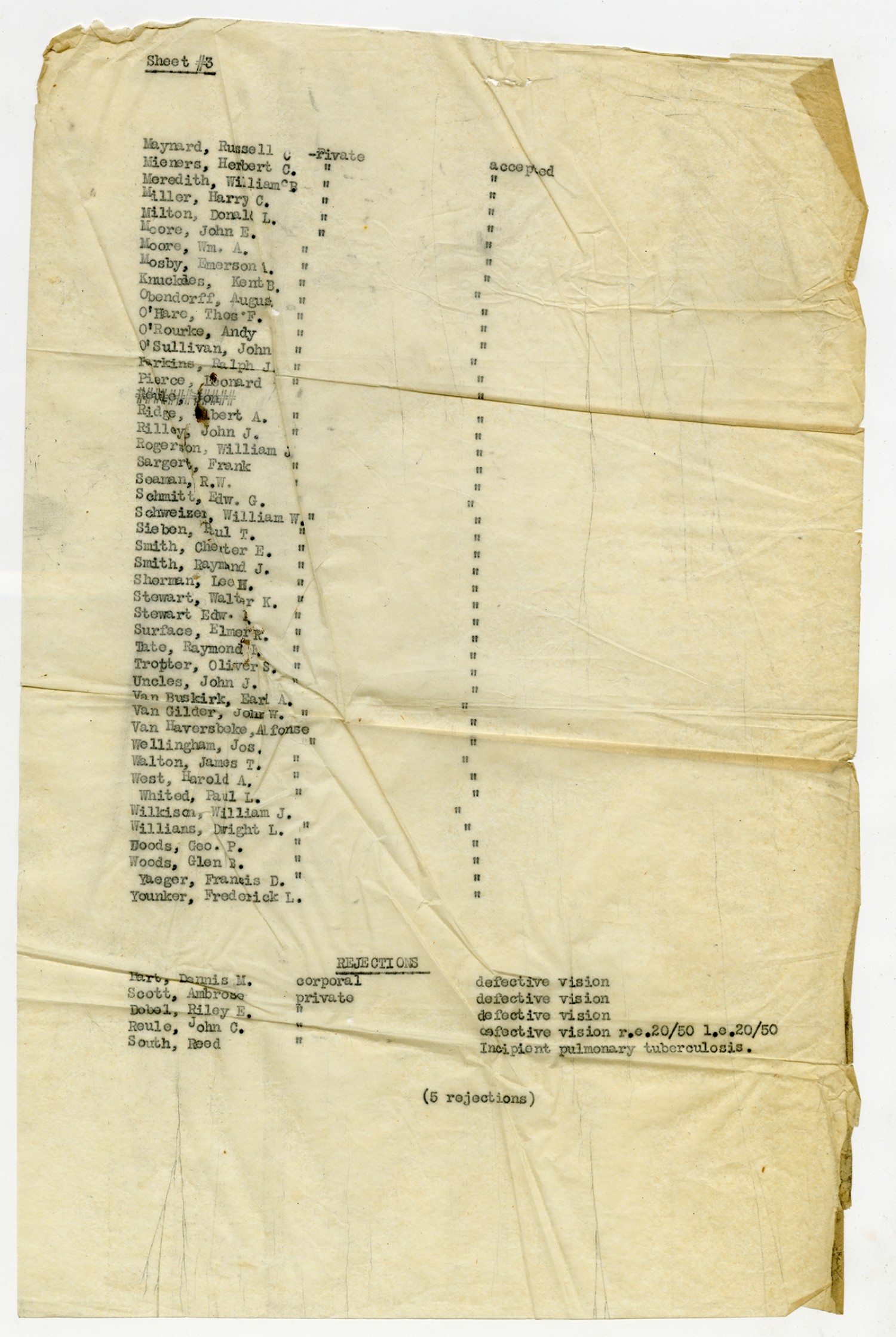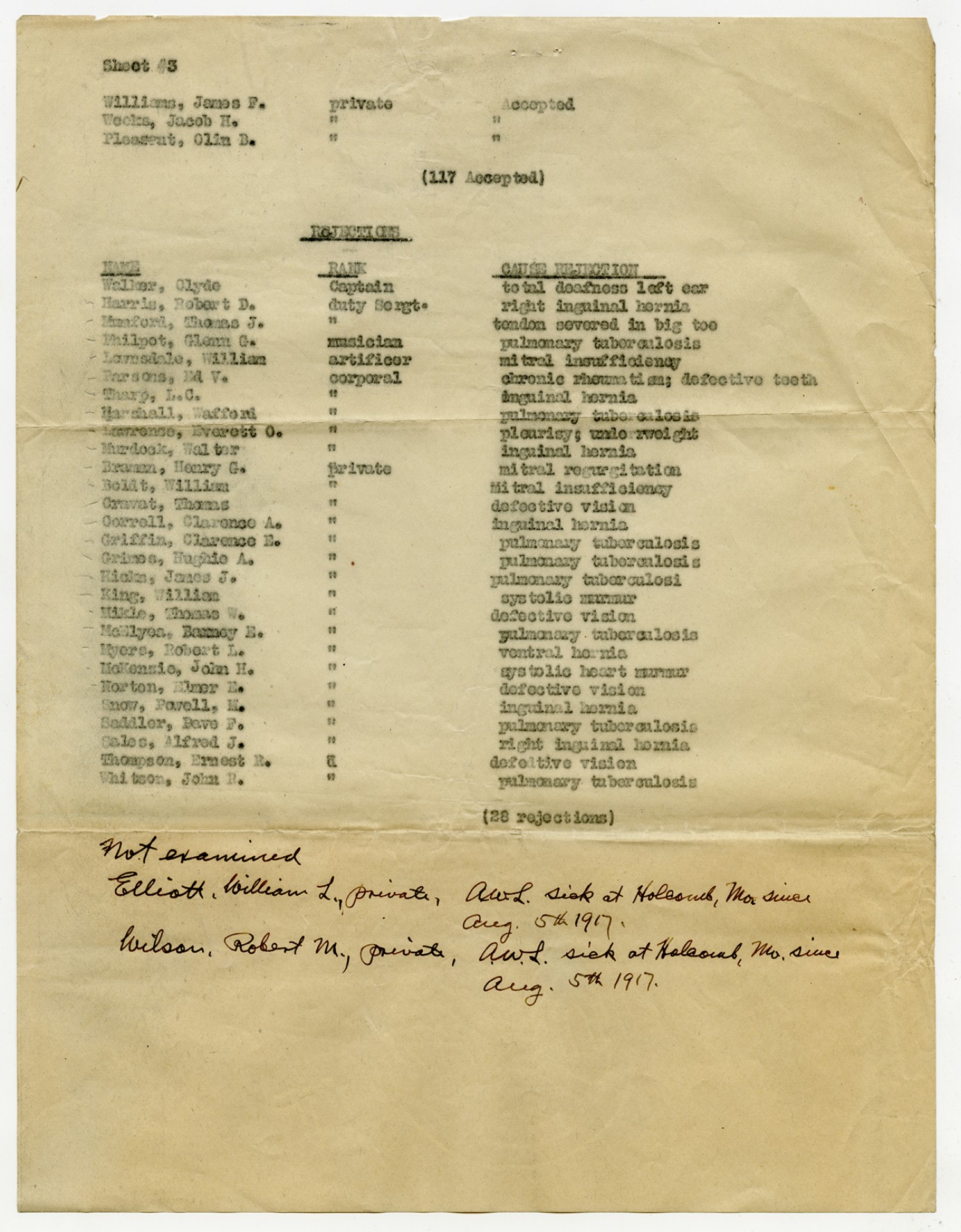 Men Accepted and Rejected in the First Separate Company - September 5, 1917