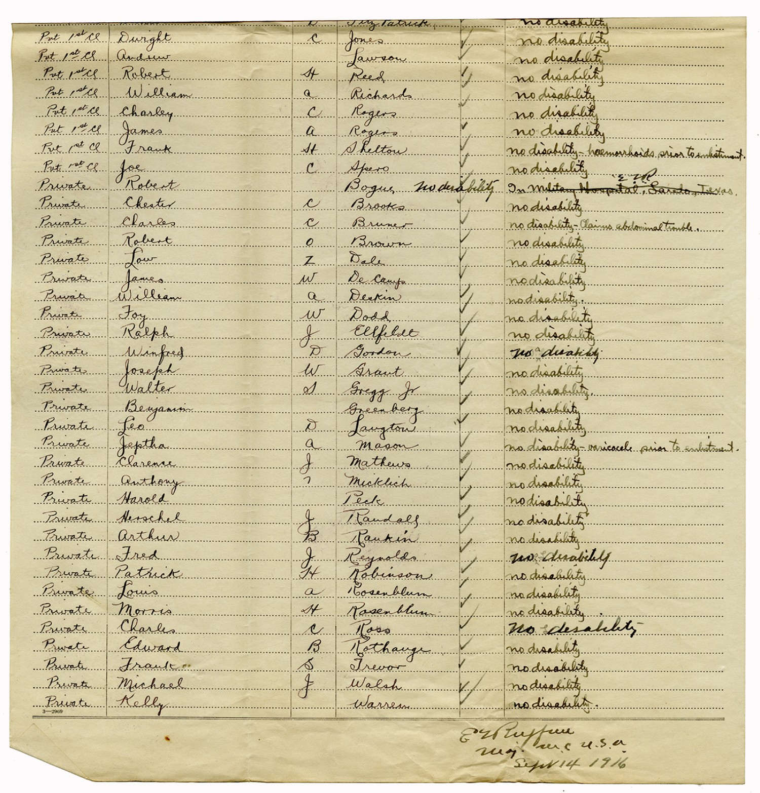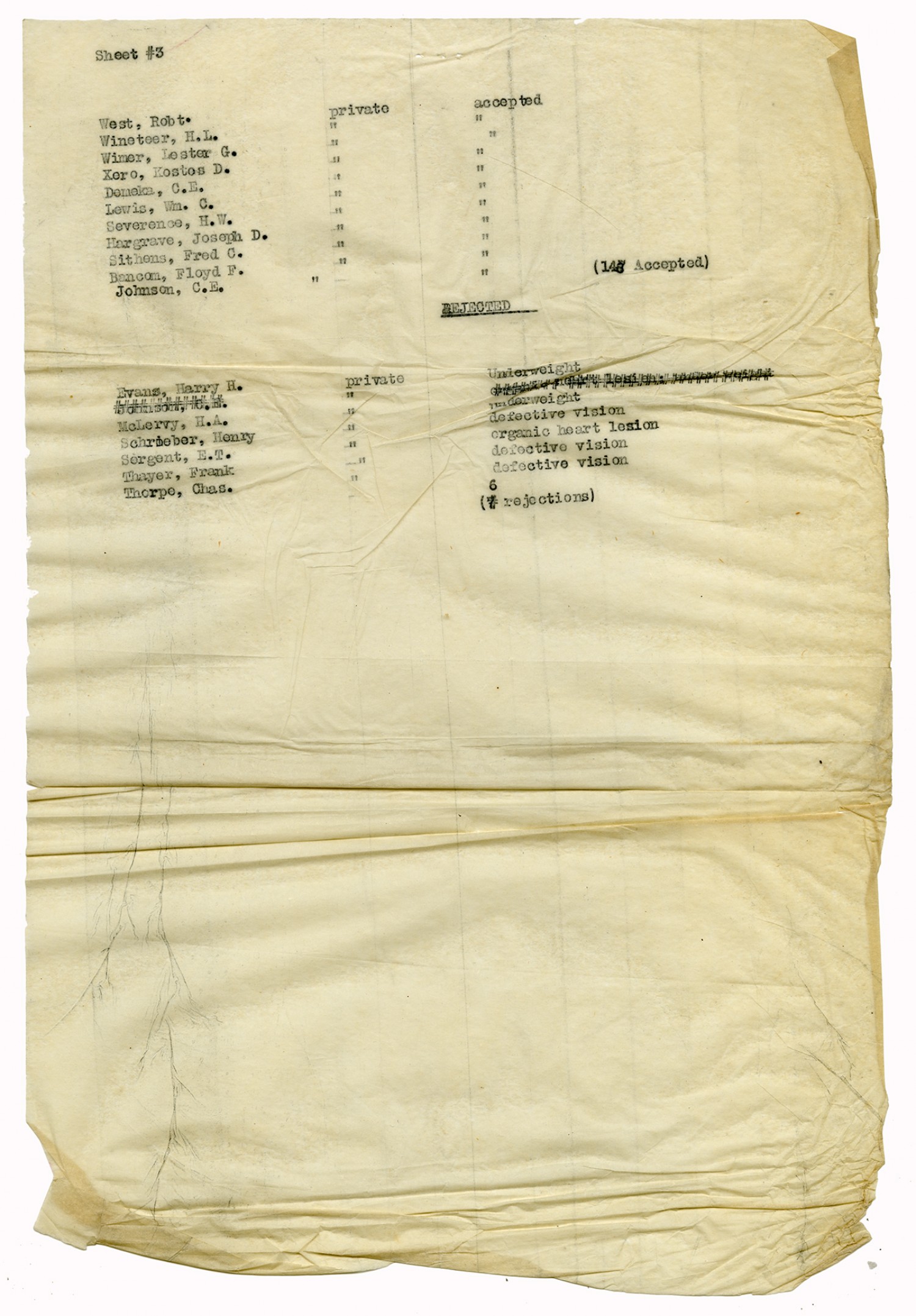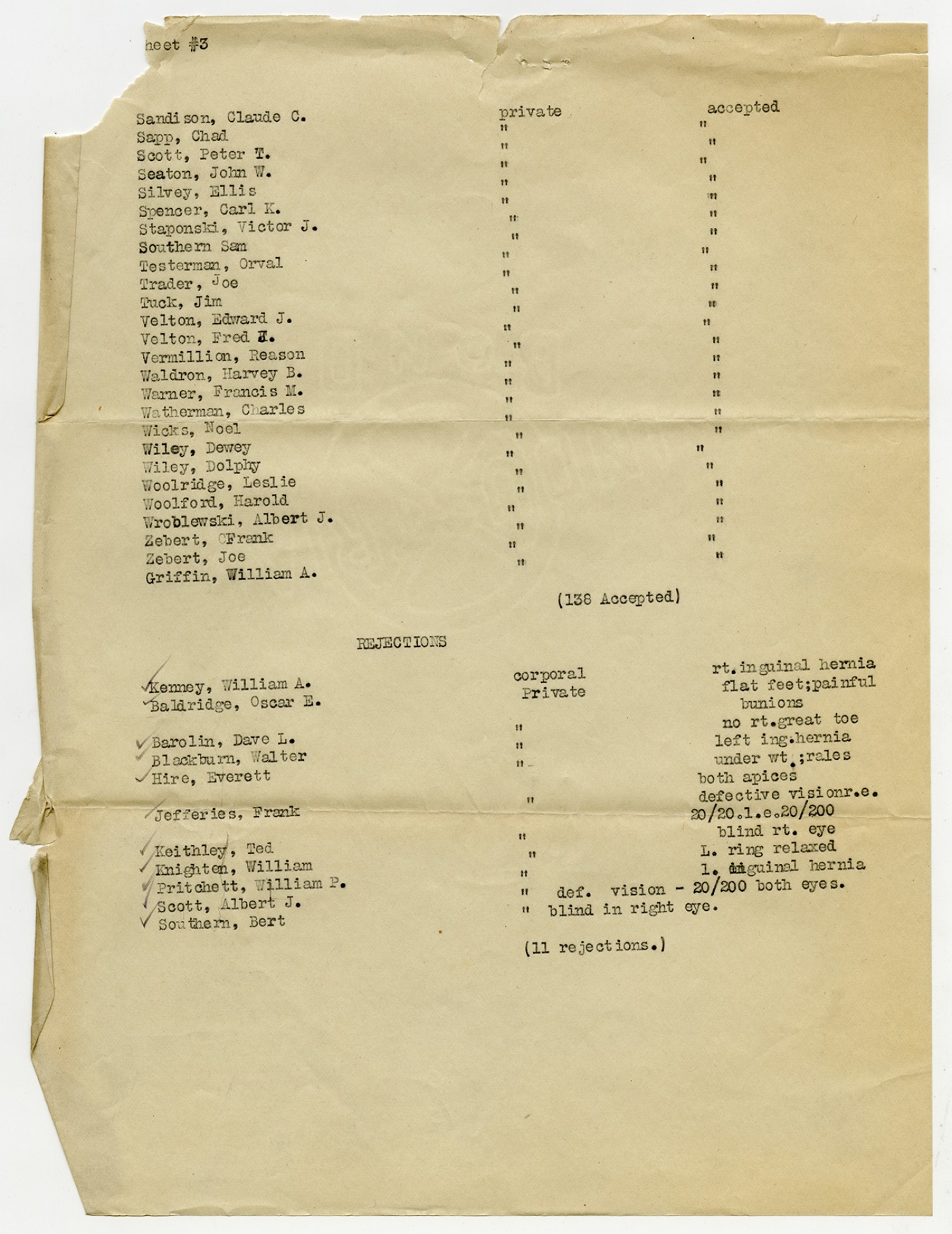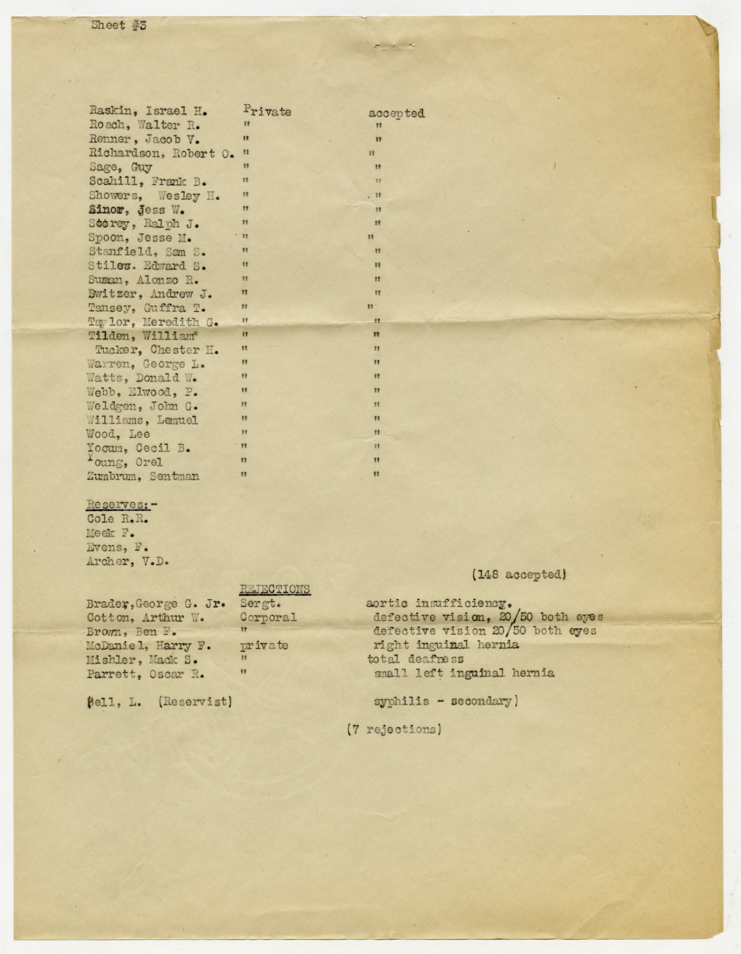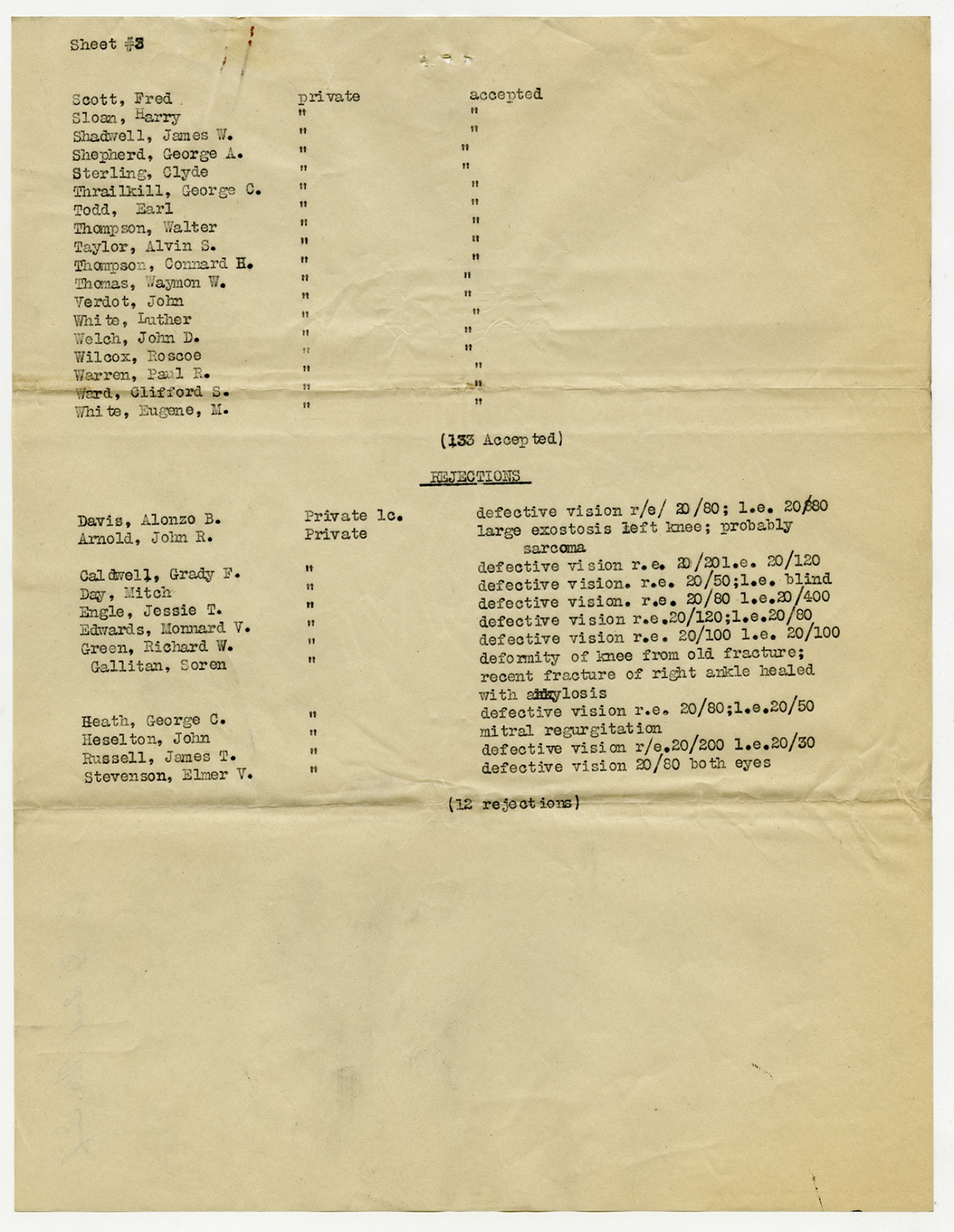 Men Accepted and Rejected in the First Separate Company - September 5, 1917