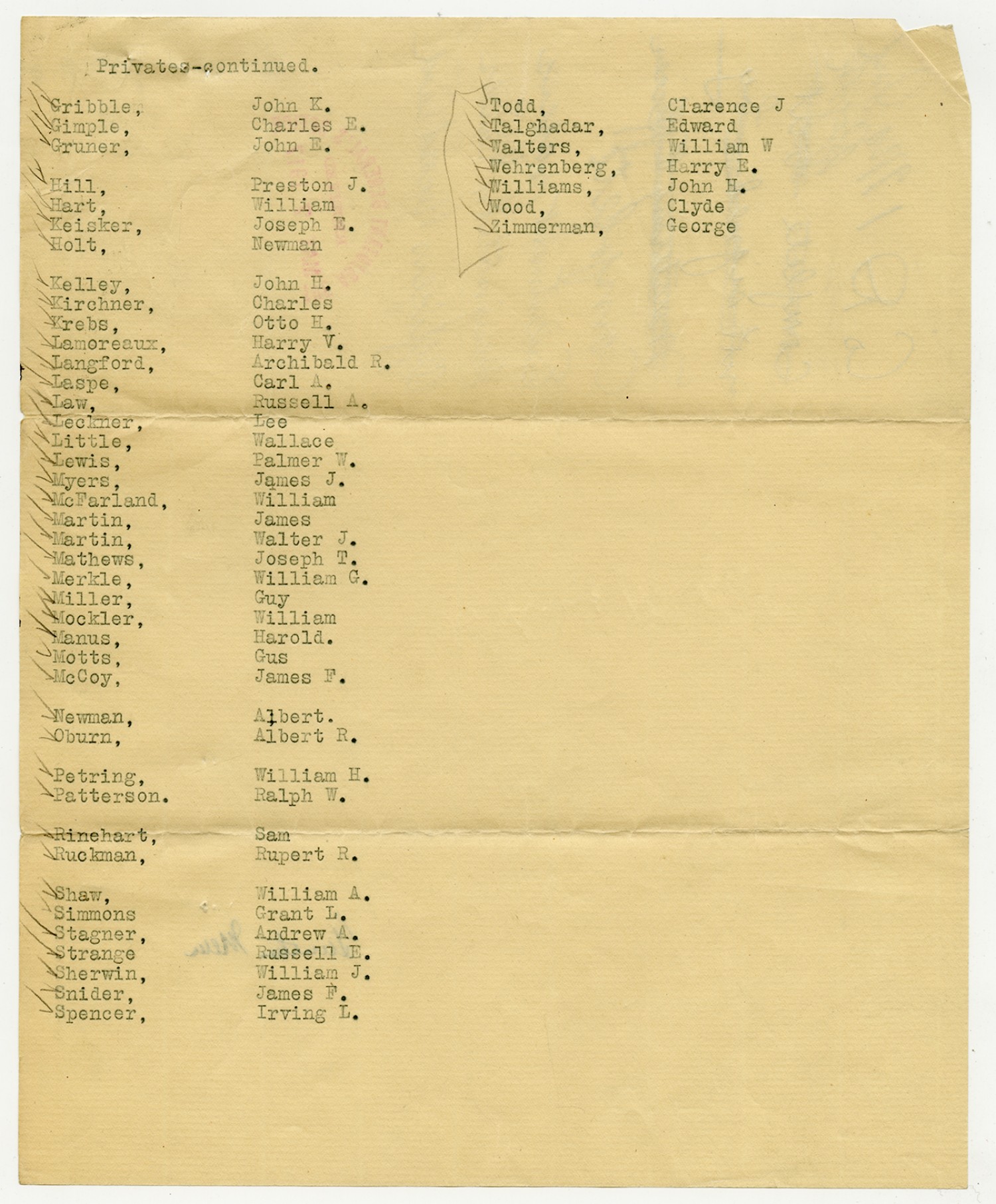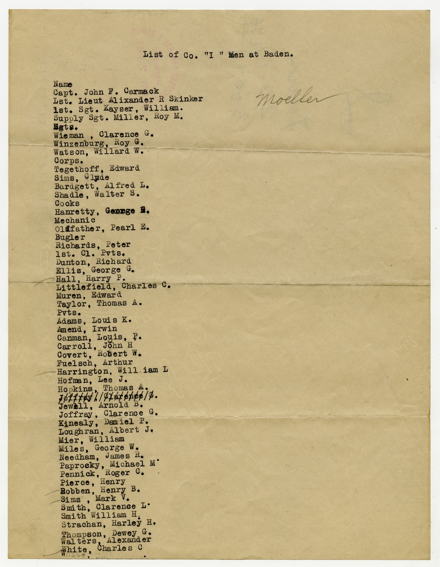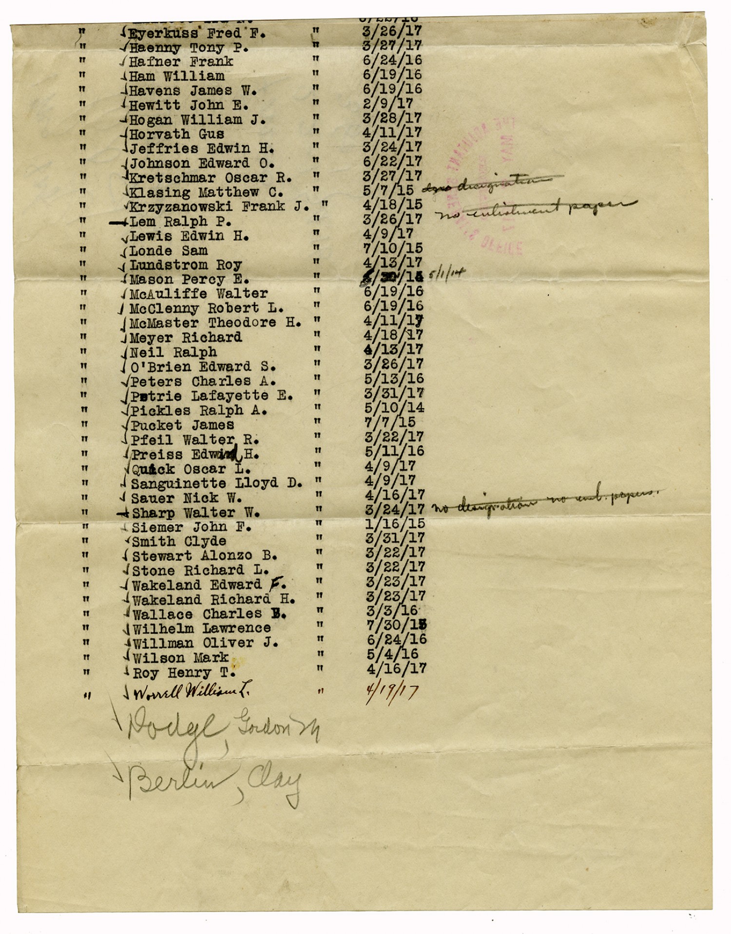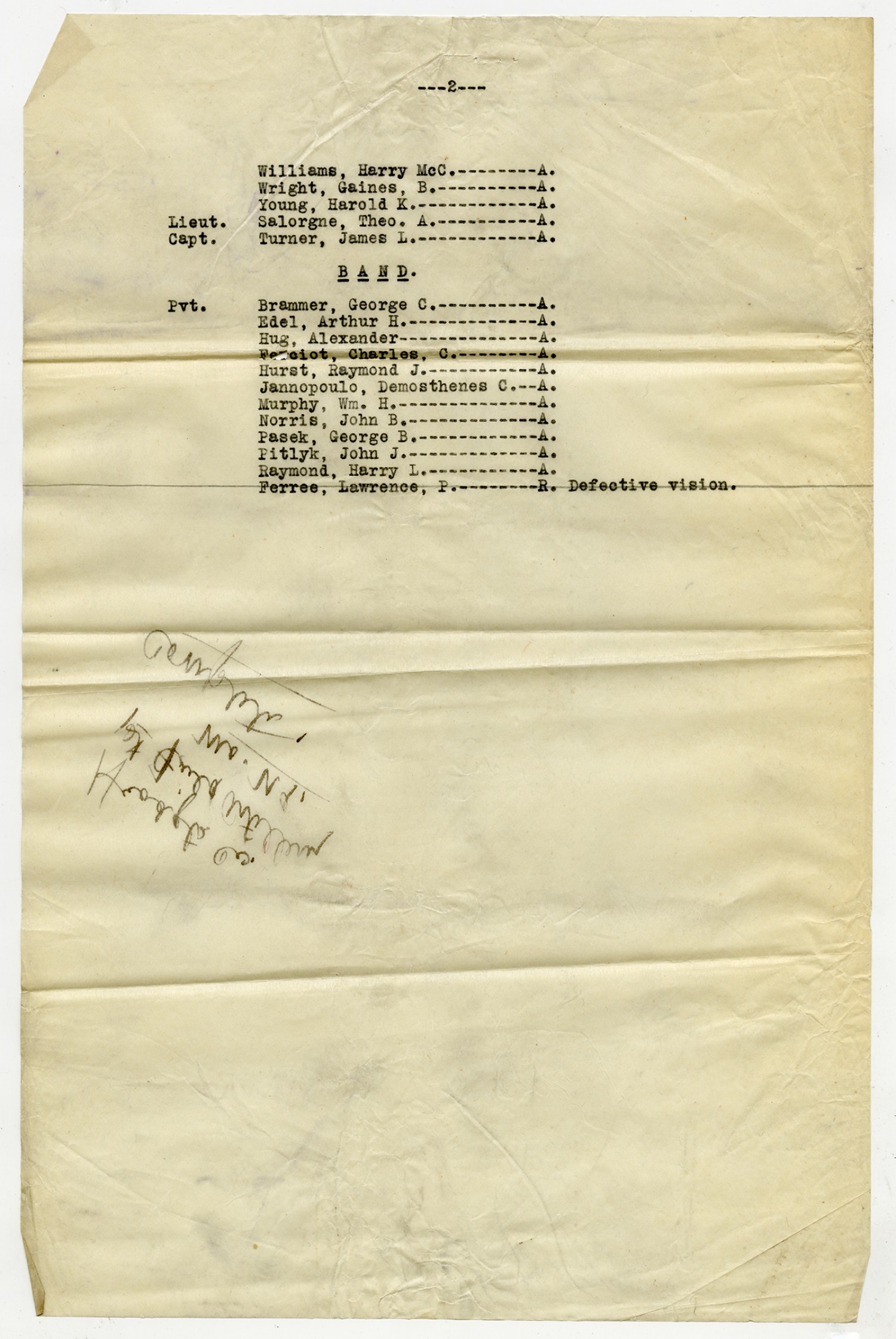 Rejected and AWOL Men from Company A - August 25, 1917