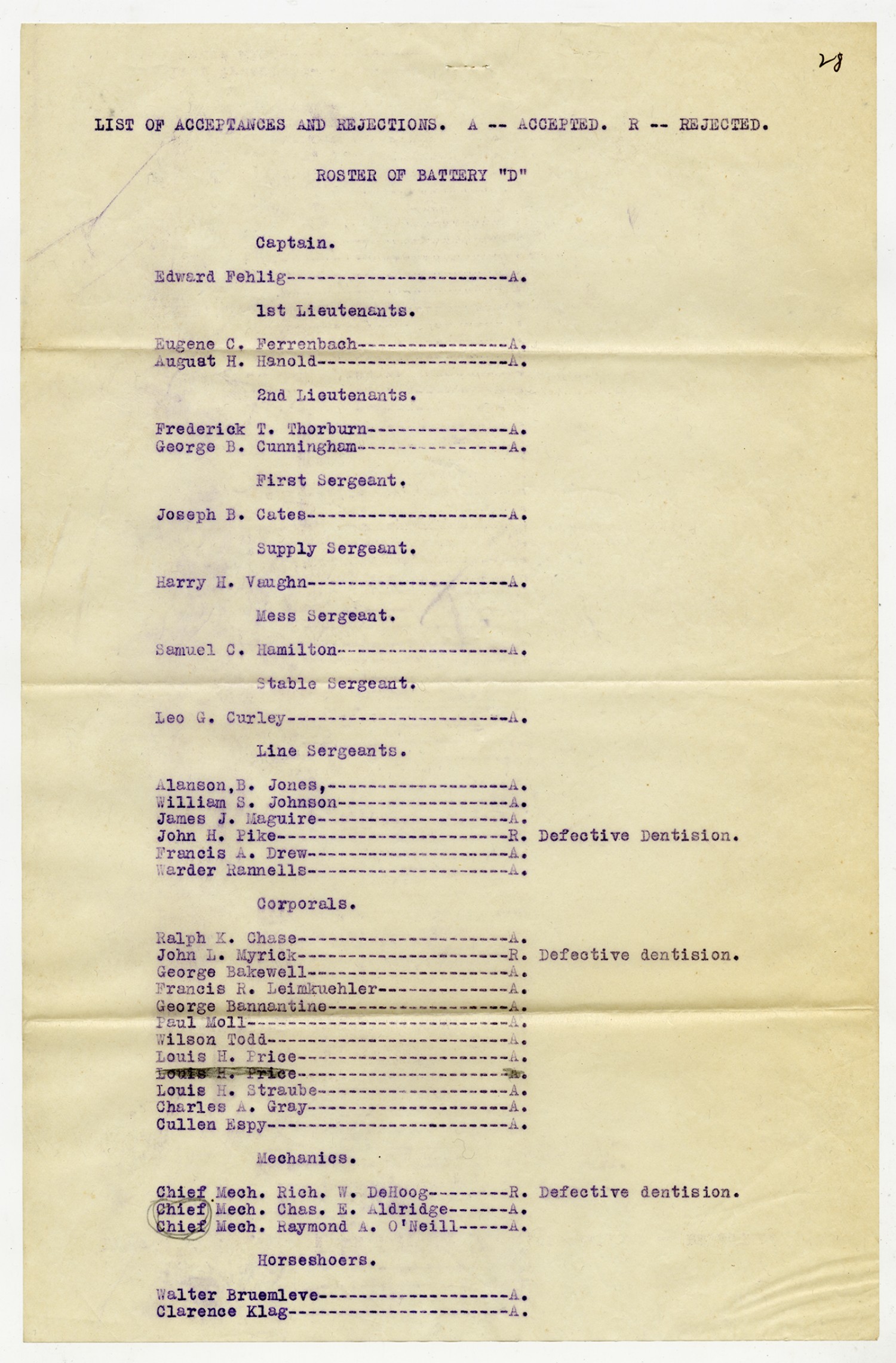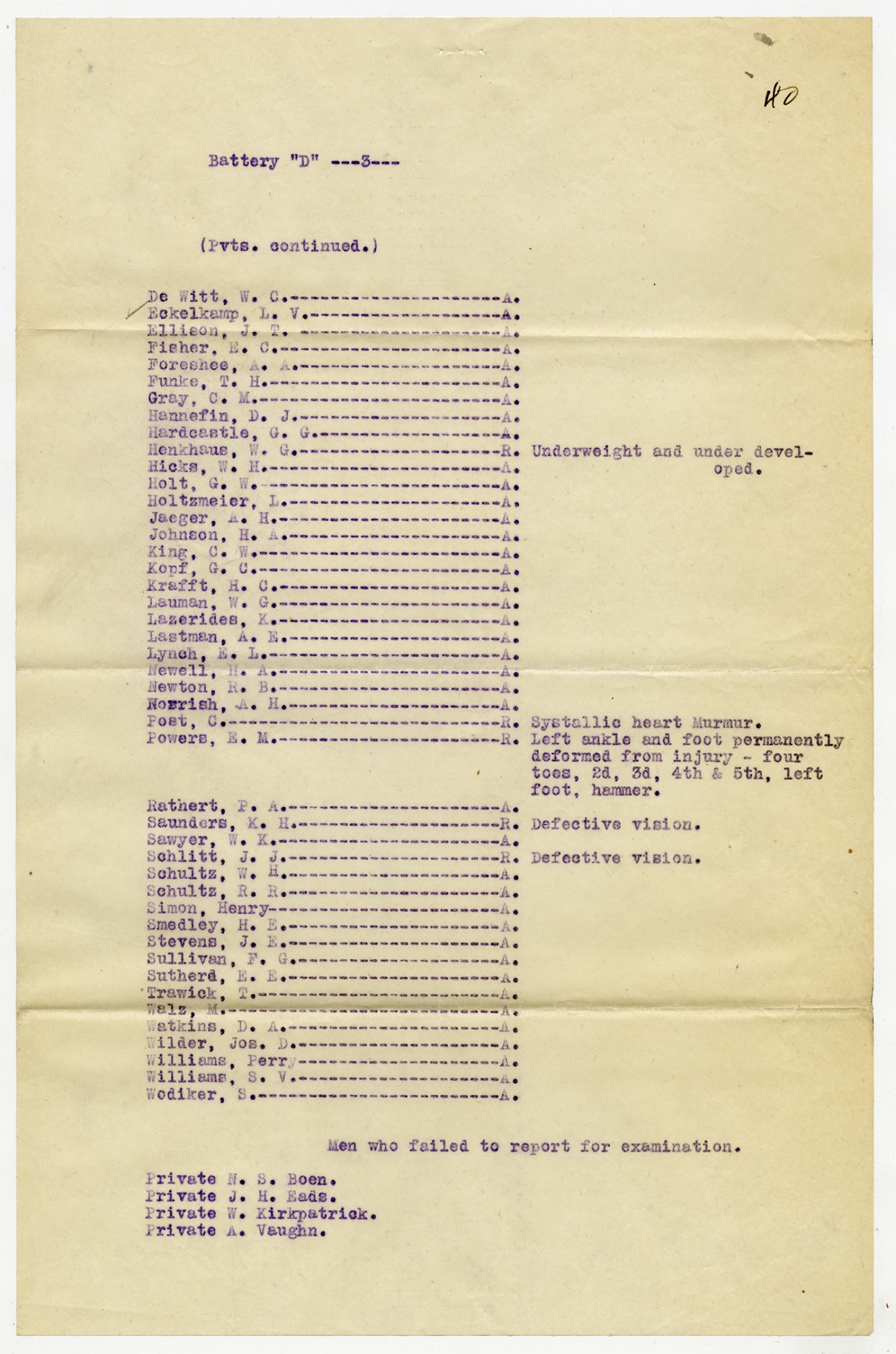 Men Accepted and Rejected in Battery D - n.d.