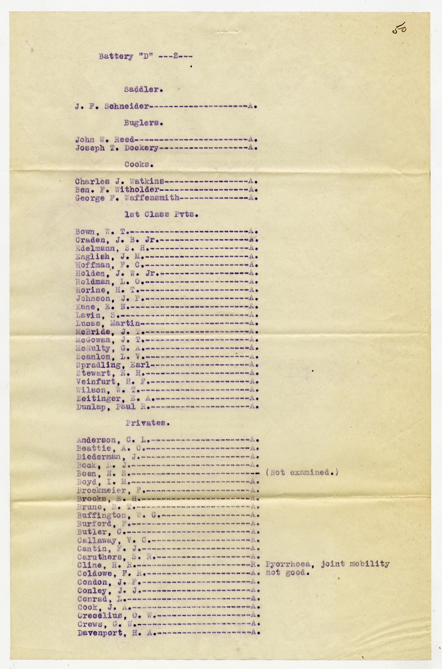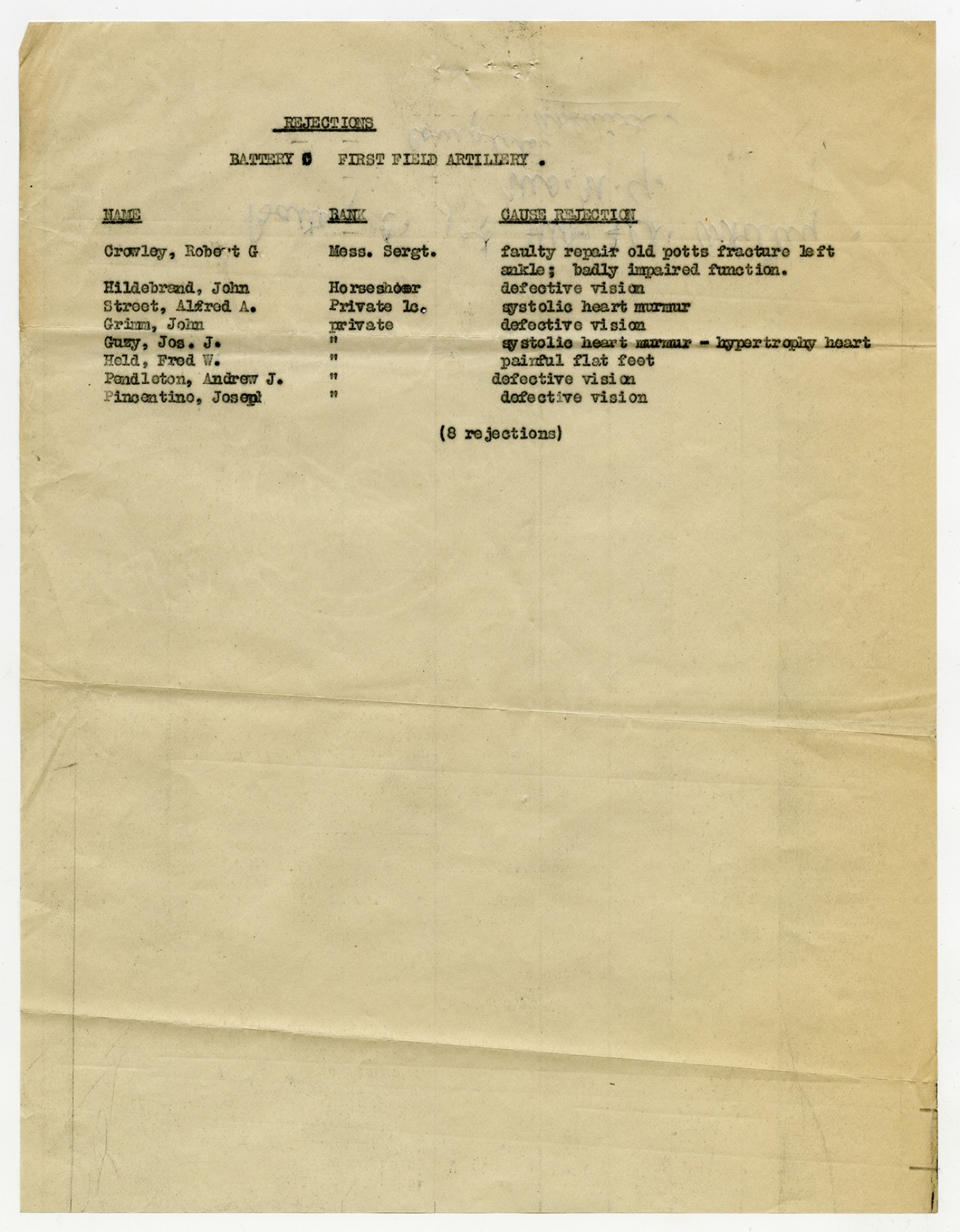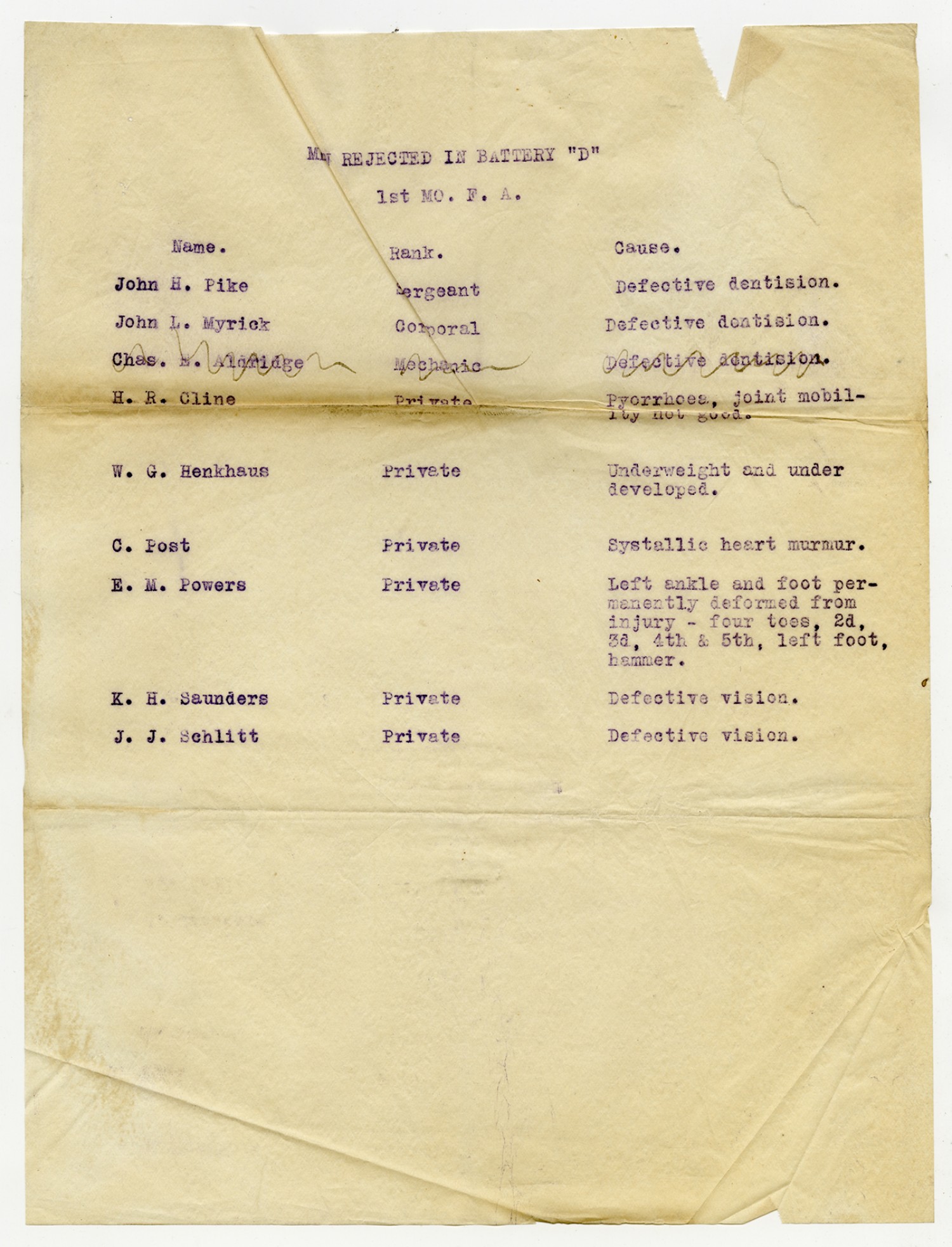 Men Rejected in Battery D, 1st Missouri Field Artillery - n.d.