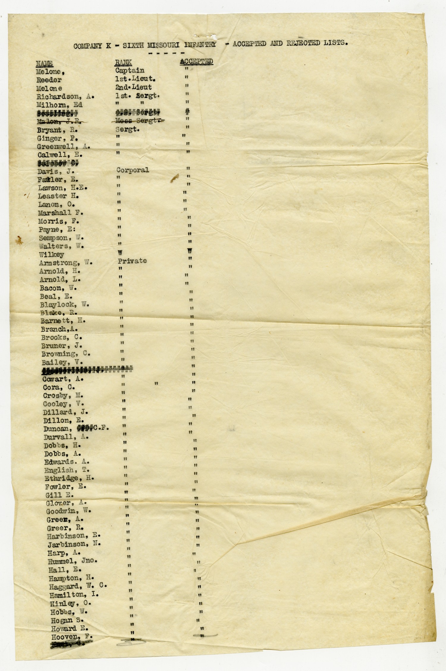 Men Accepted and Rejected in Company K, 6th Missouri Infantry - n.d.