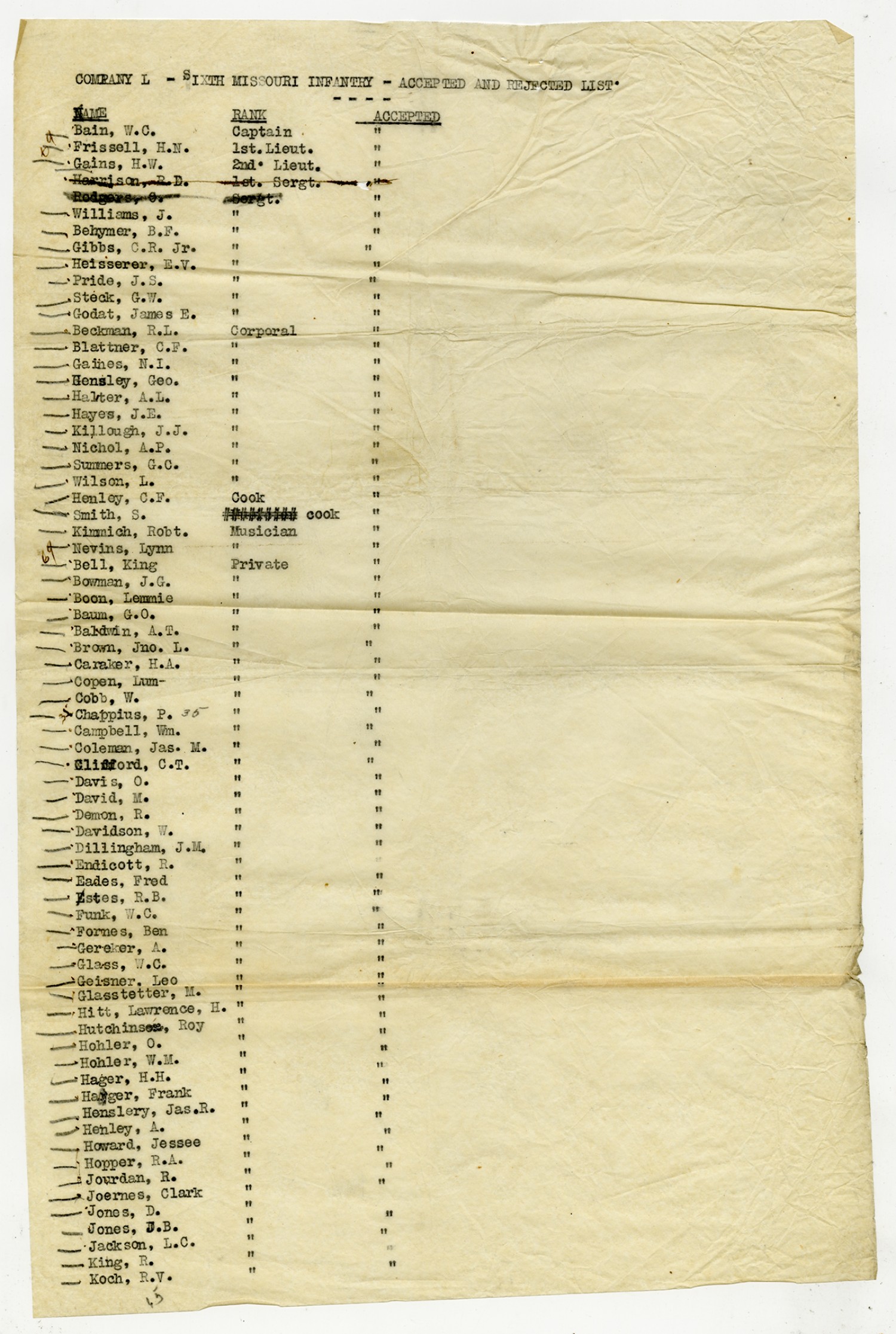 Men Accepted and Rejected in Company L, 6th Missouri Infantry - n.d.