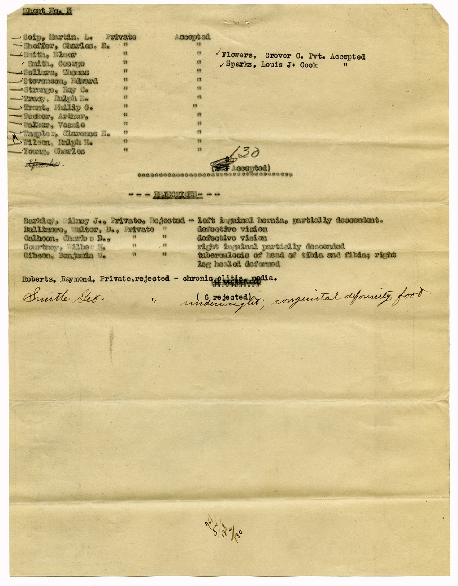 Men Accepted and Rejected in Company B, 1st Field Battalion - n.d.