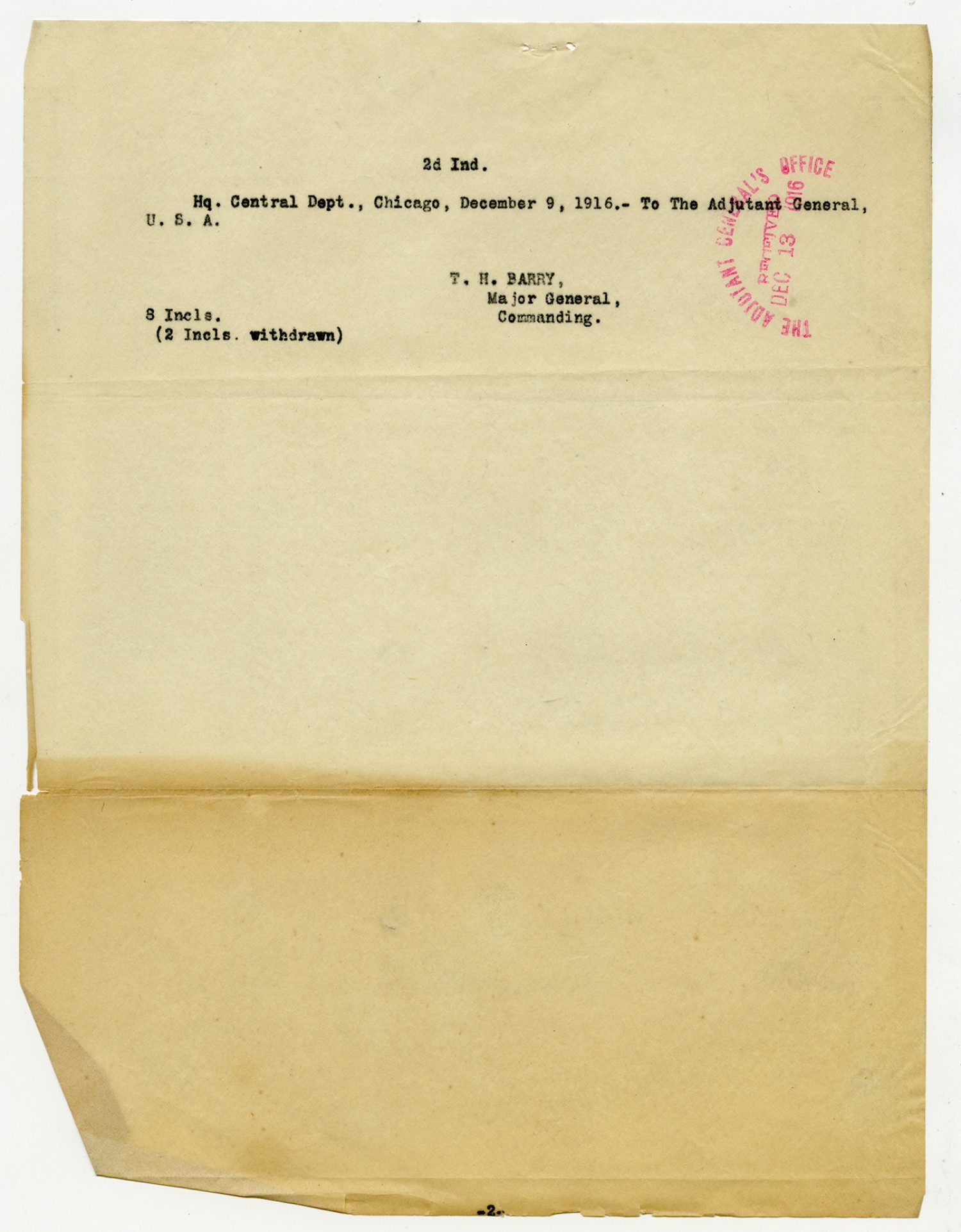 T.H. Barry letter to the Adjutant General - December 9, 1916