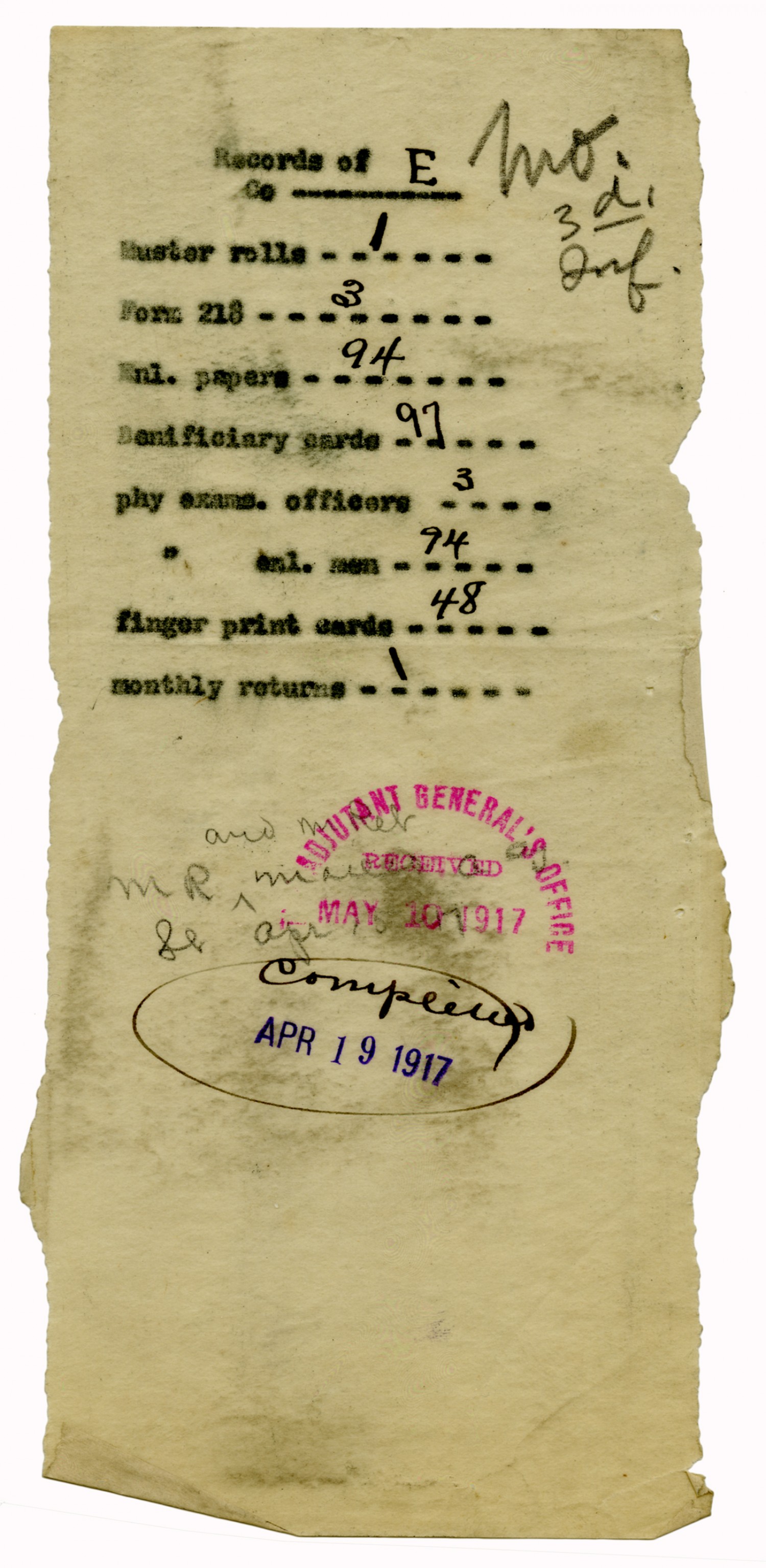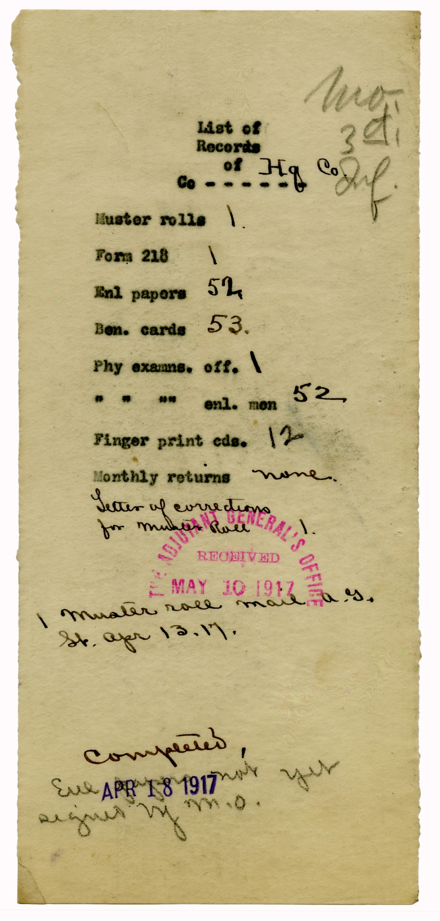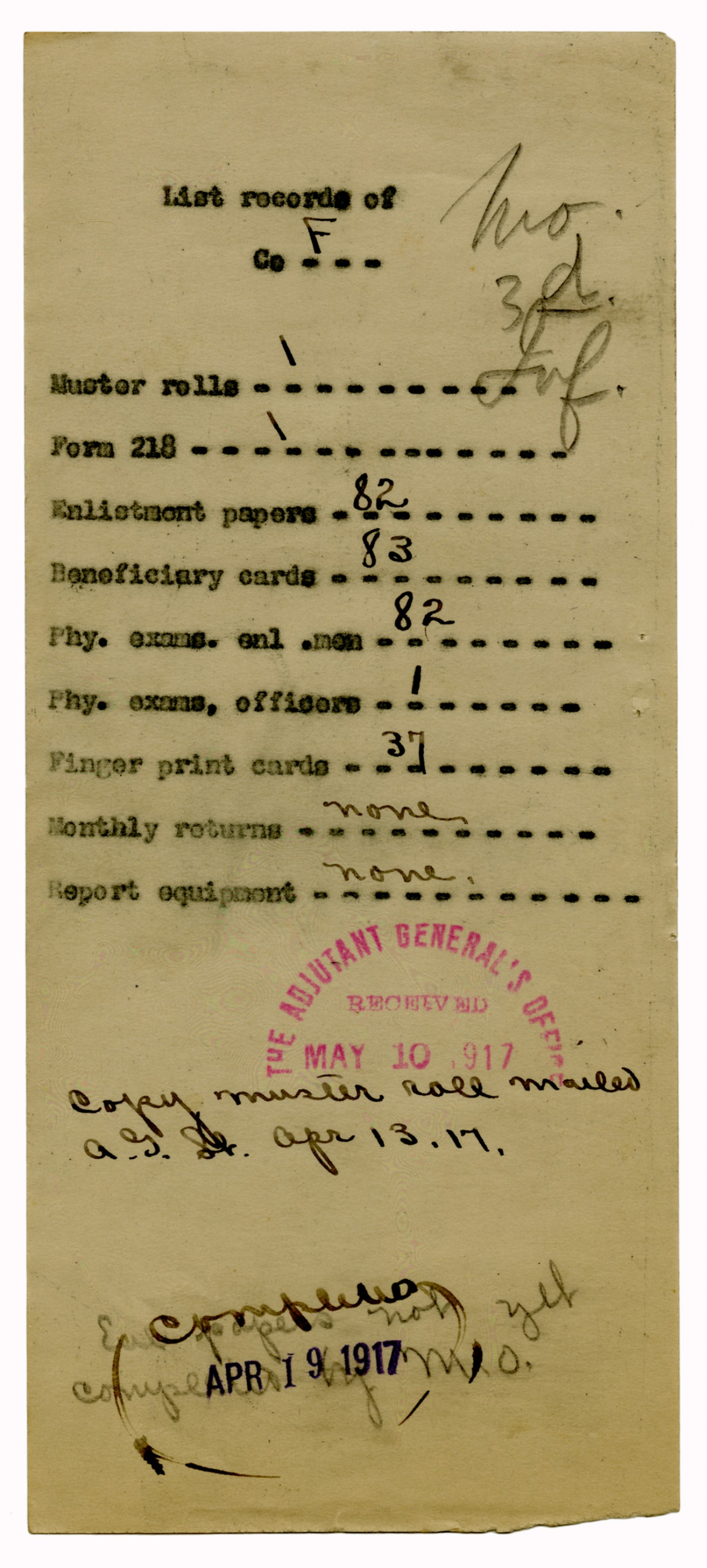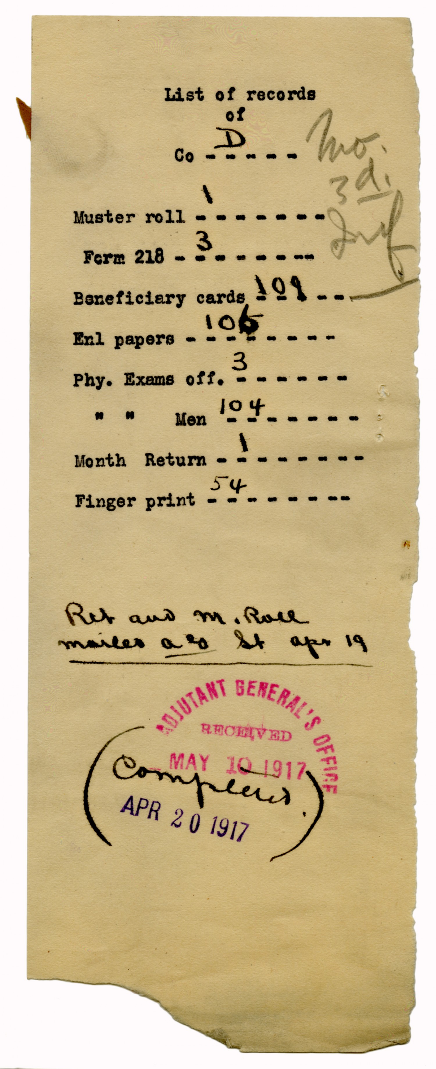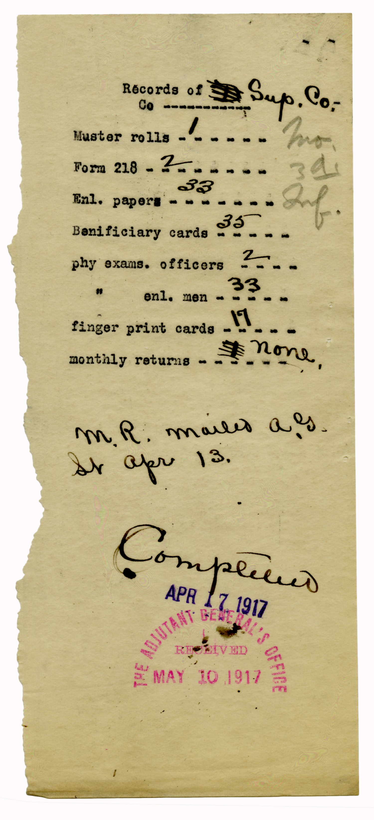 Company Records - April 13, 1917-April 20, 1917