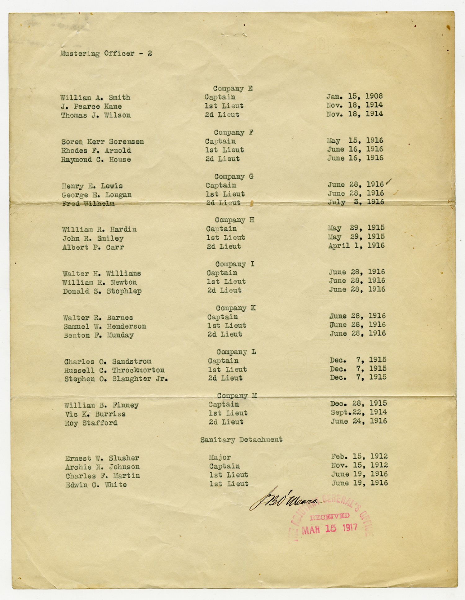 Colonel John D. McNeely Roster - March 15, 1917