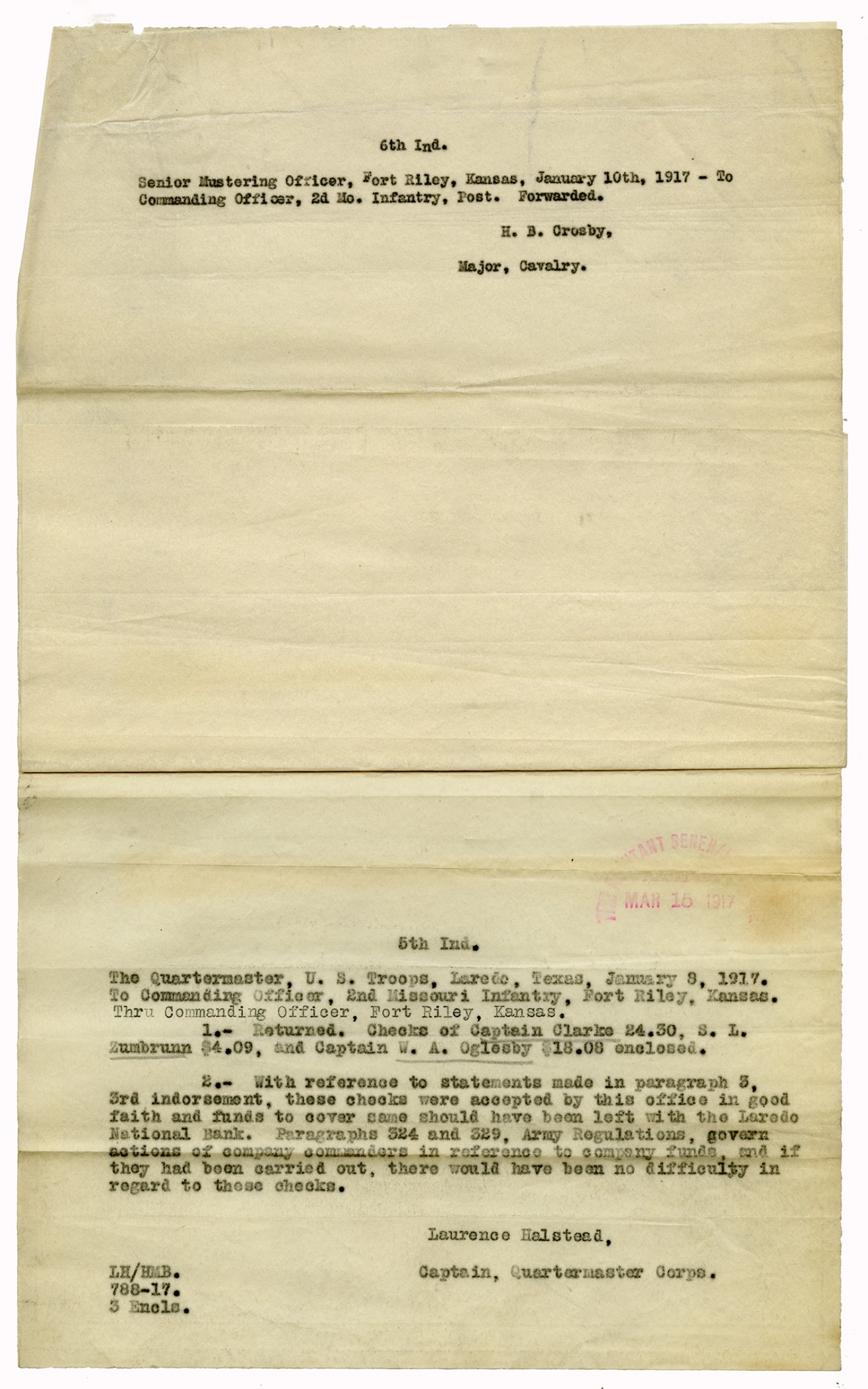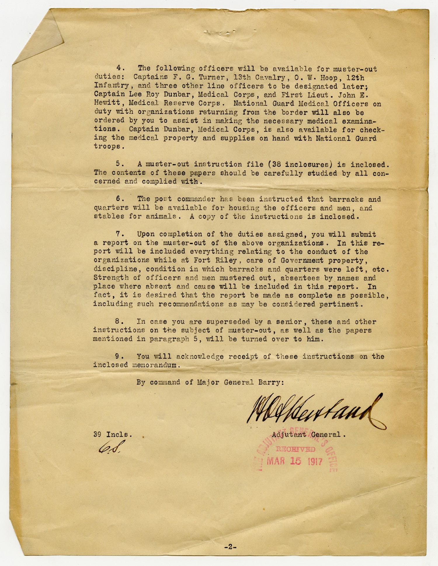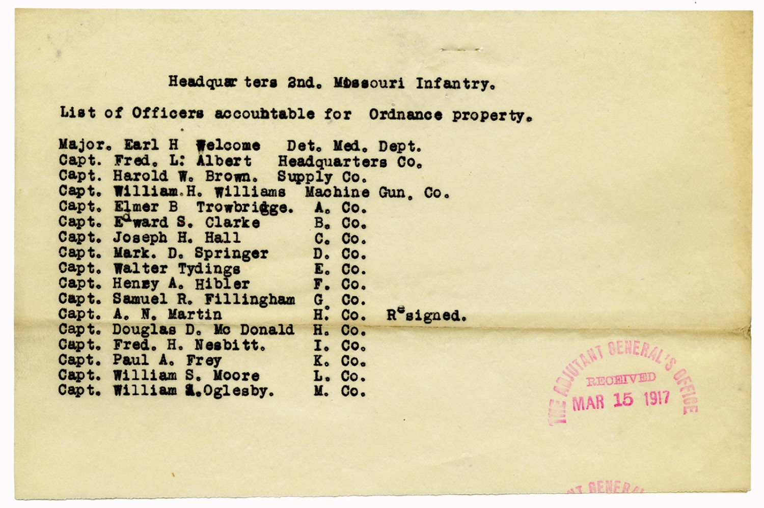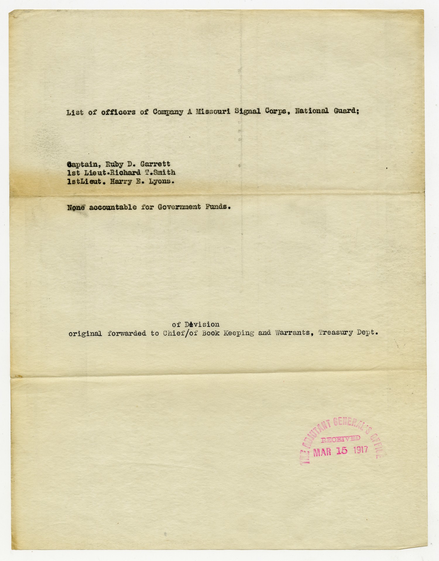 Officers accountable for Property - March 15, 1917