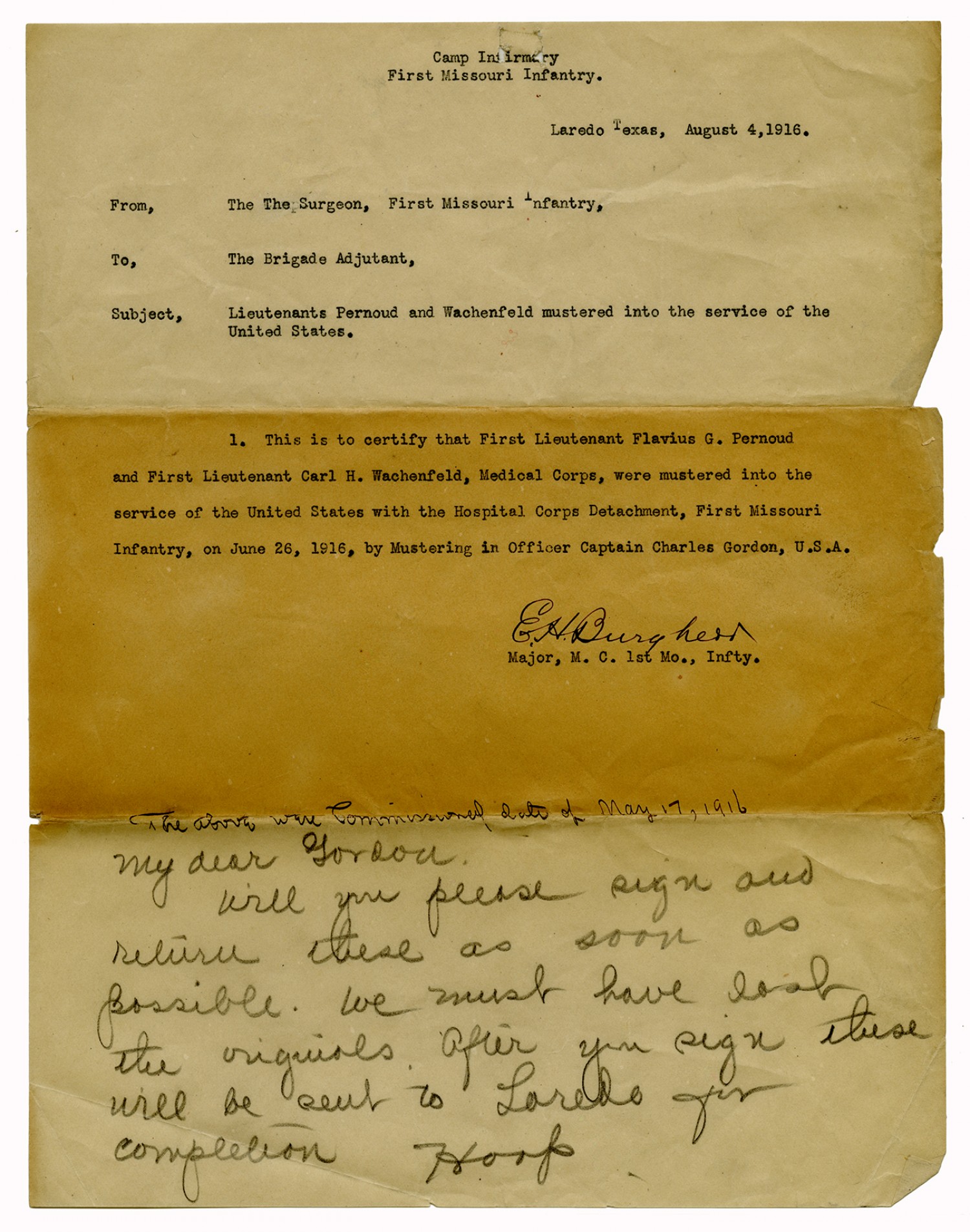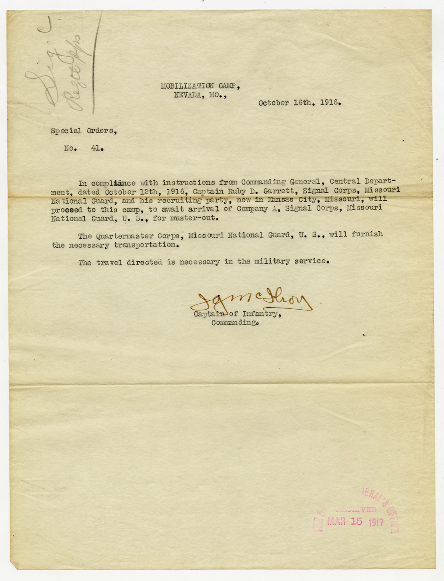 Captain of Infantry Special Orders - October 16, 1916