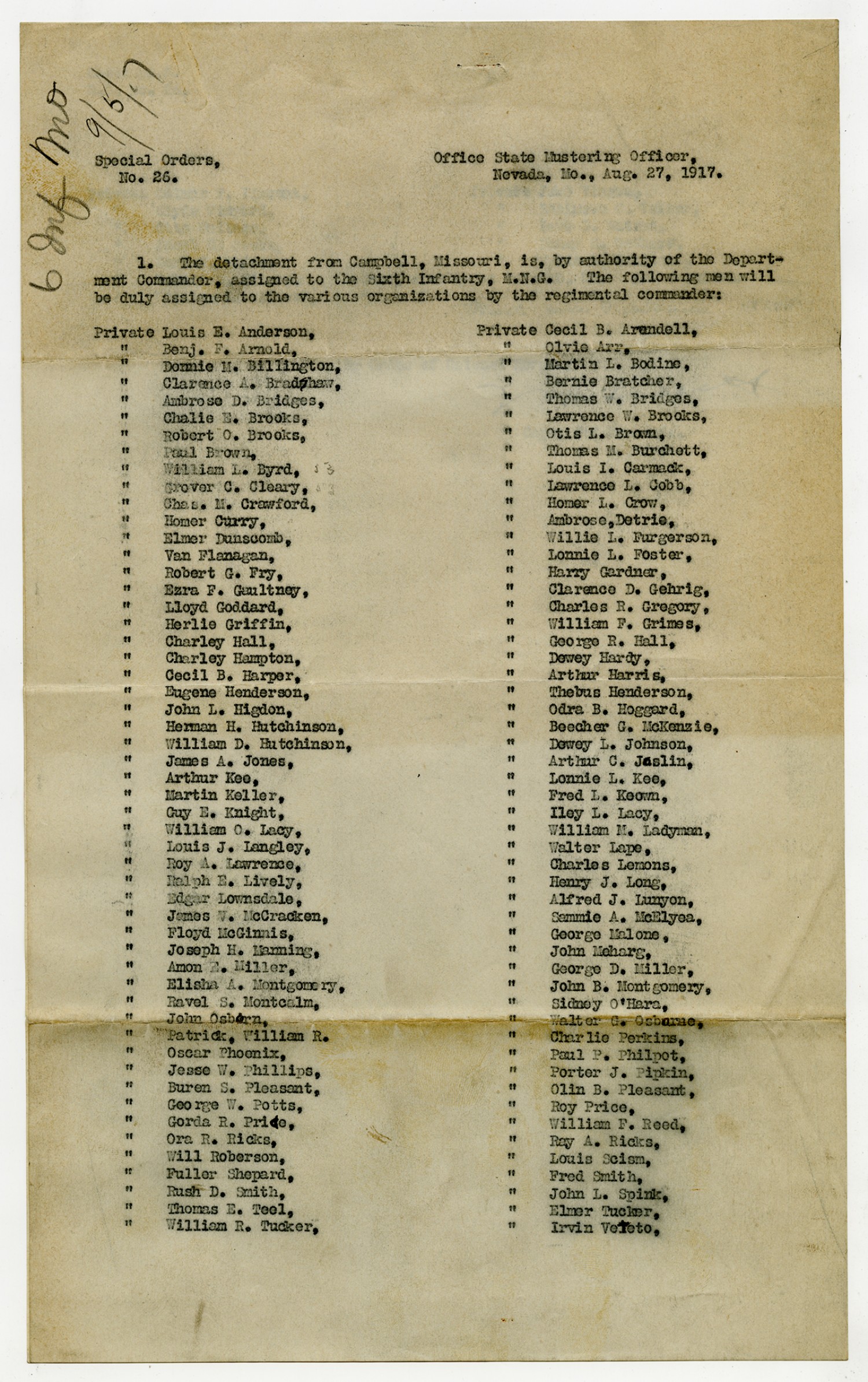 Special Orders from Captain Imes - August 15, 1917