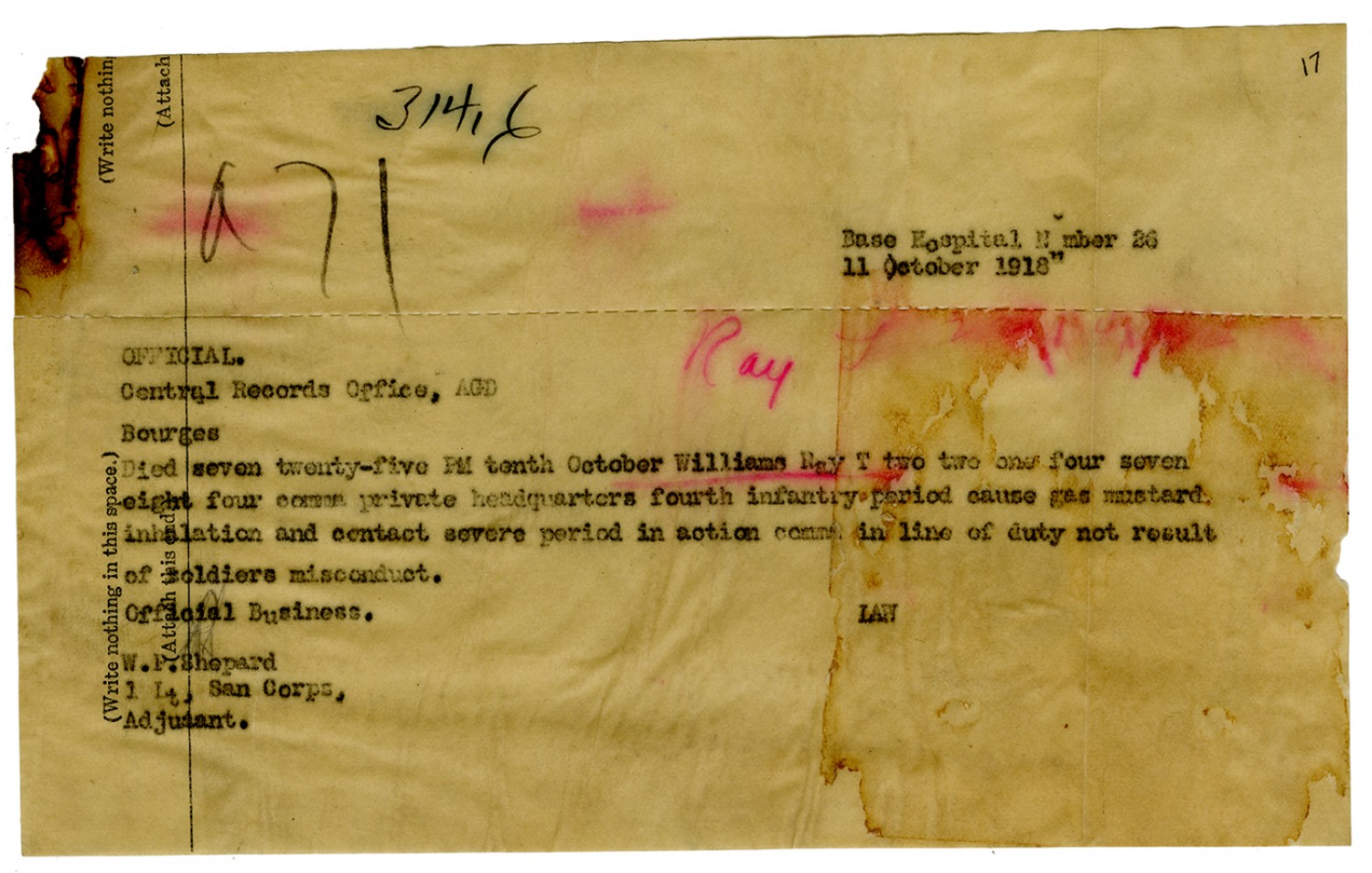 Ray T. Williams Citation - January 15, 1918