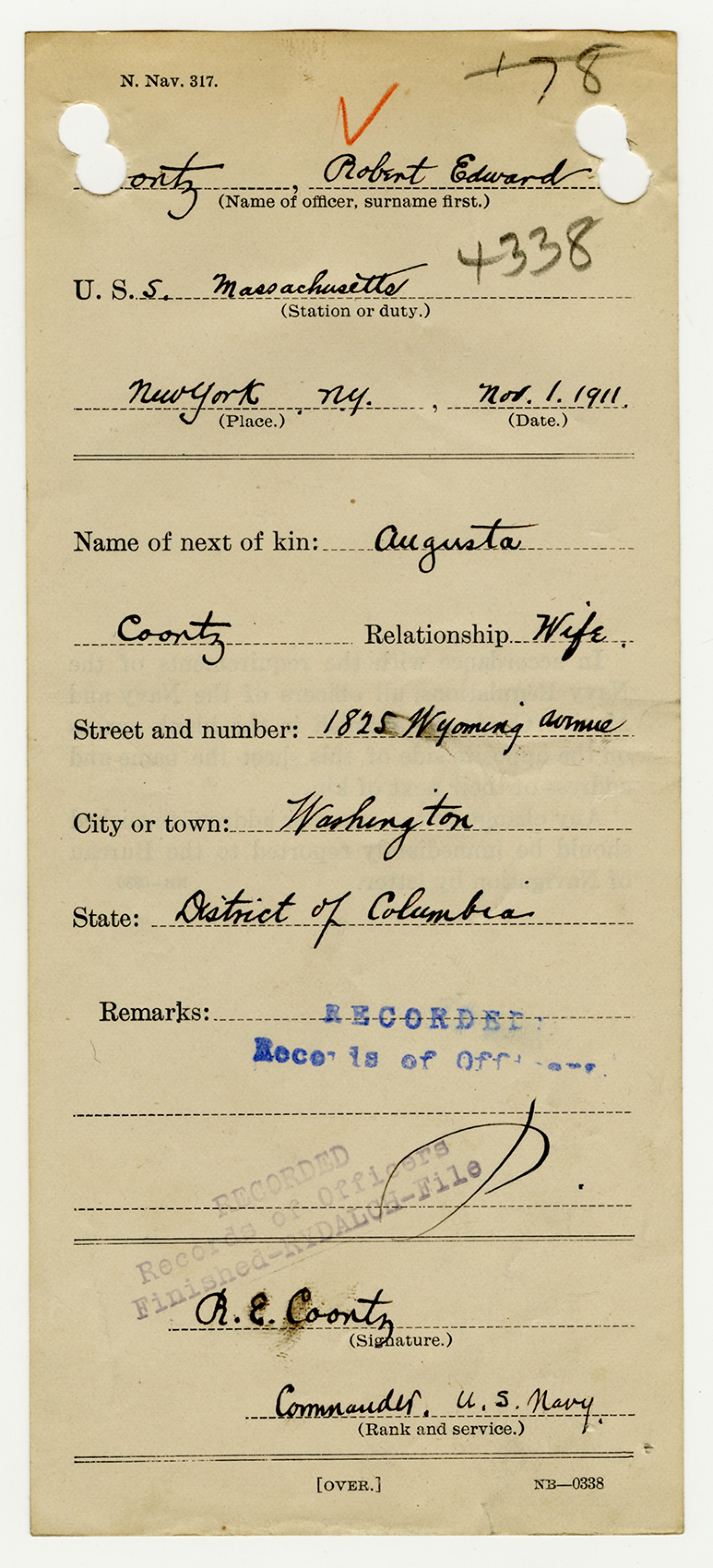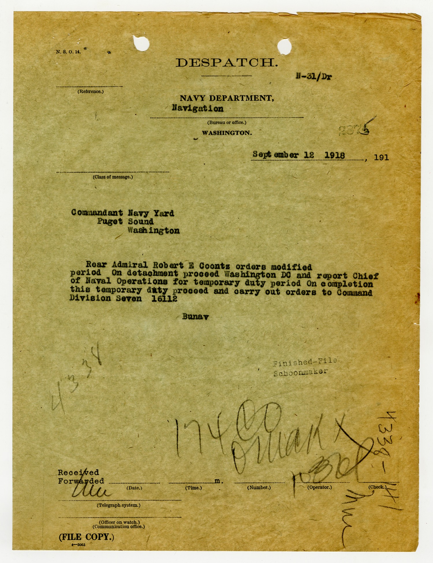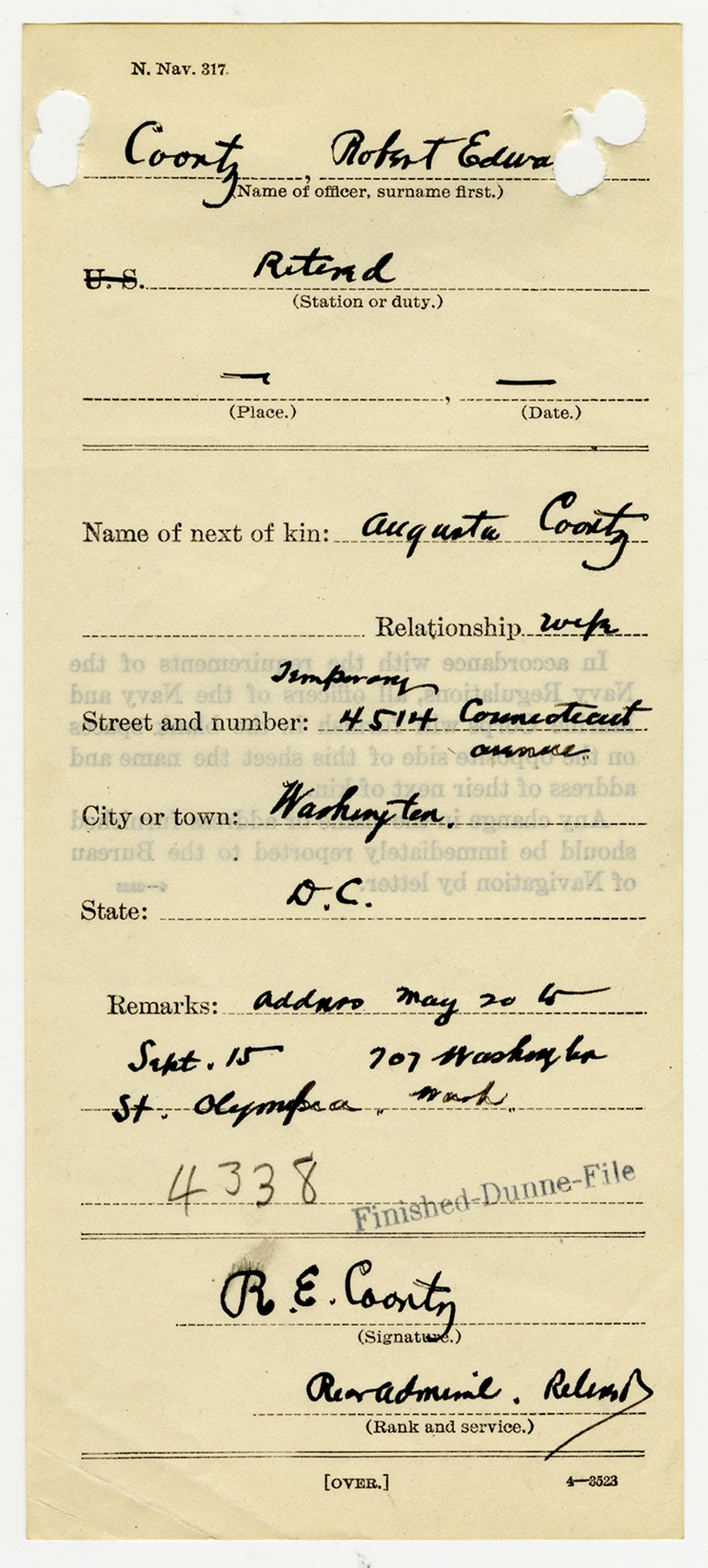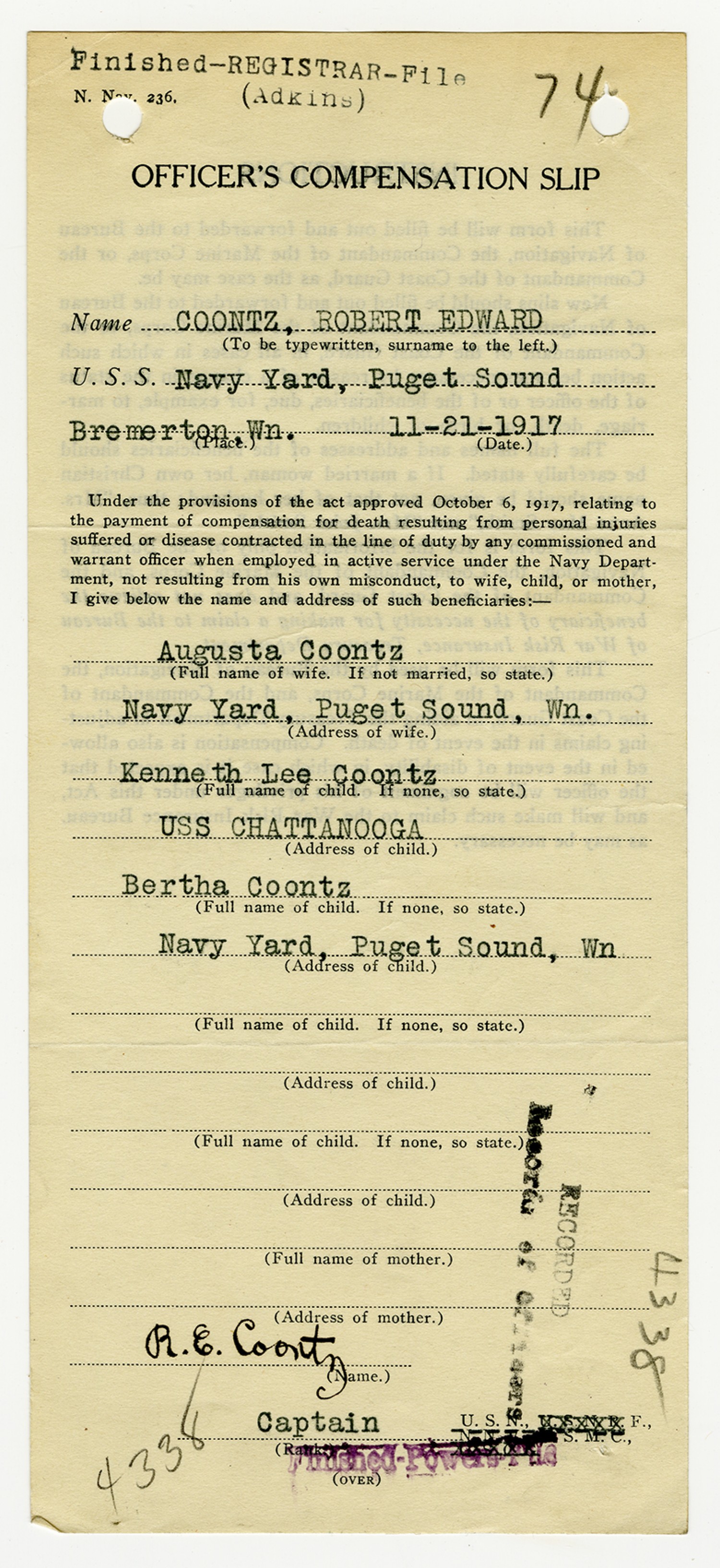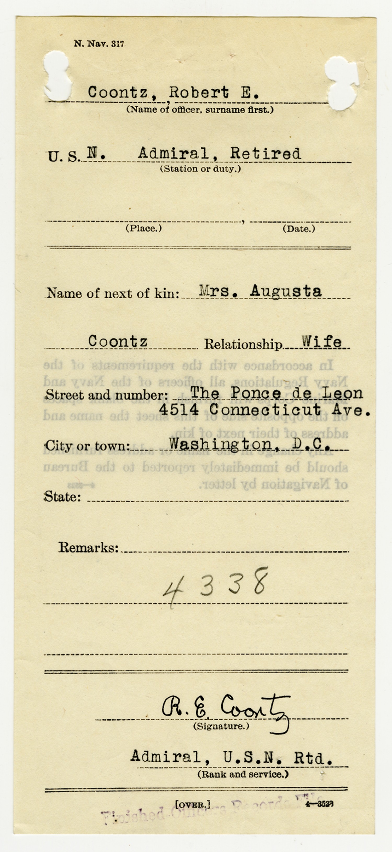Robert E. Coontz - Military Personnel File