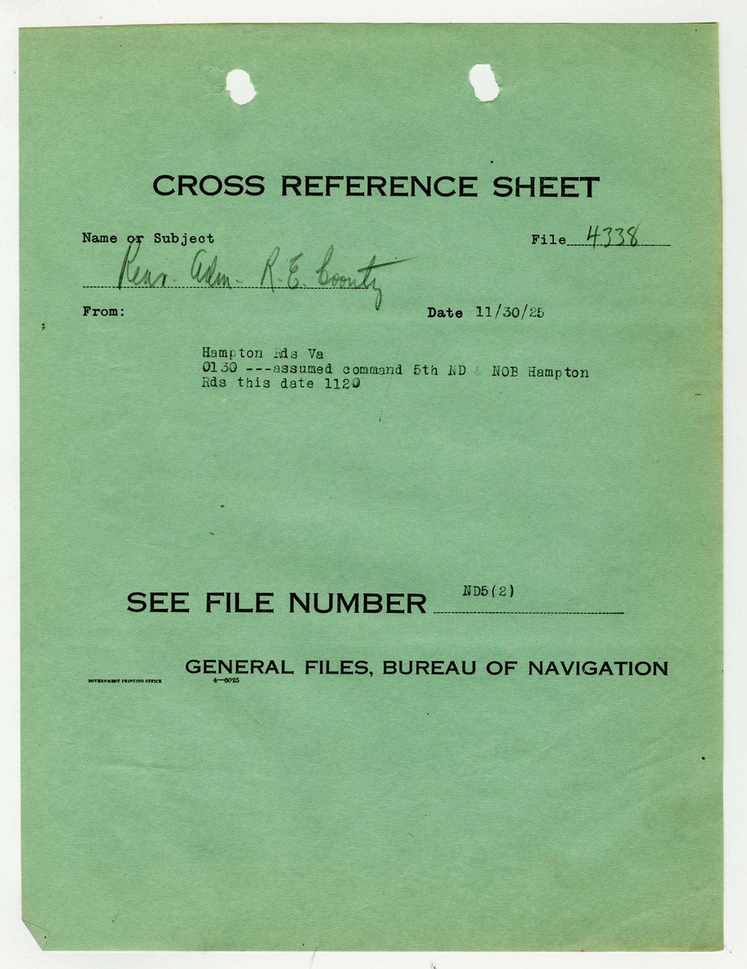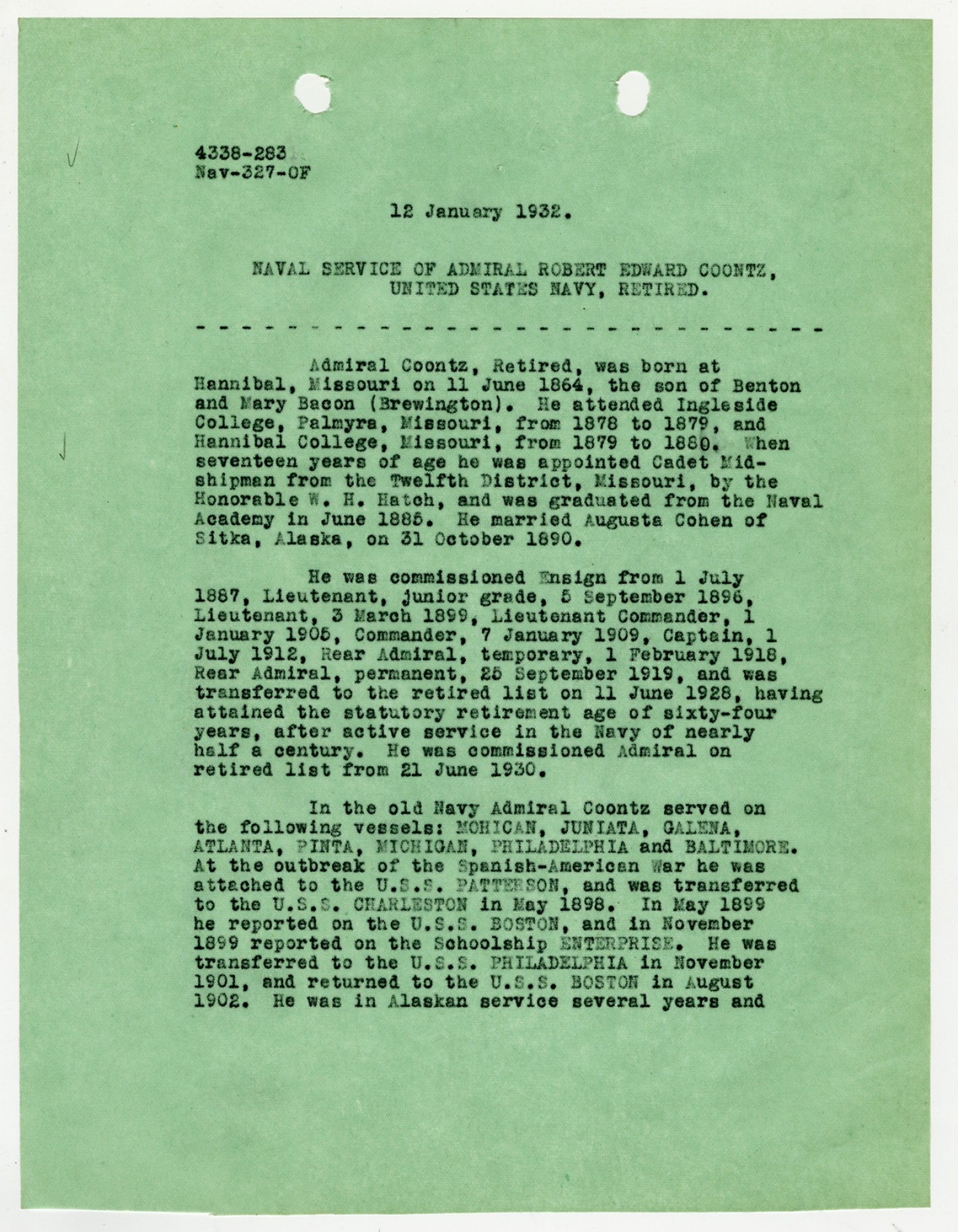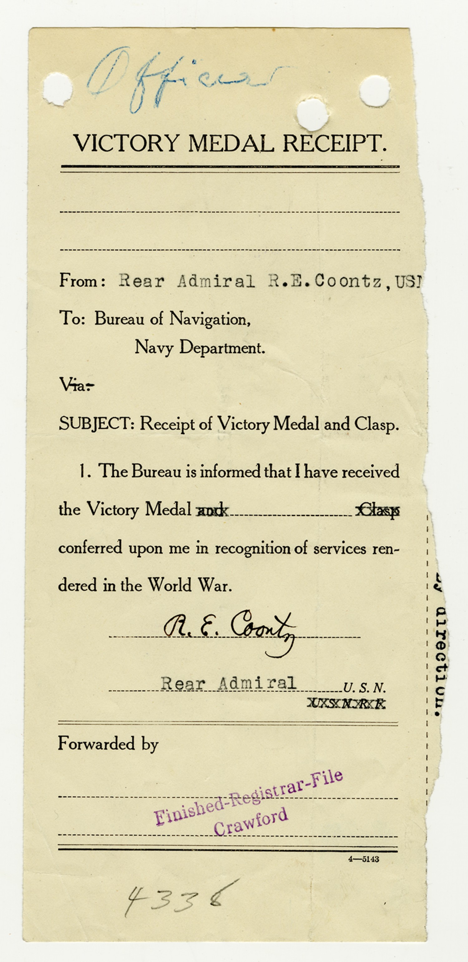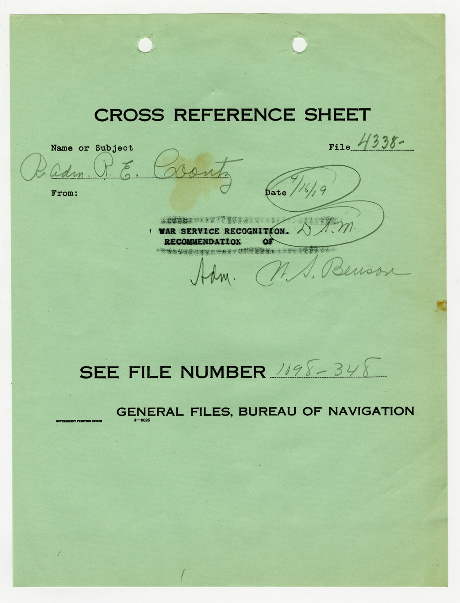 | Title | Robert E. Coontz - Military Personnel File |