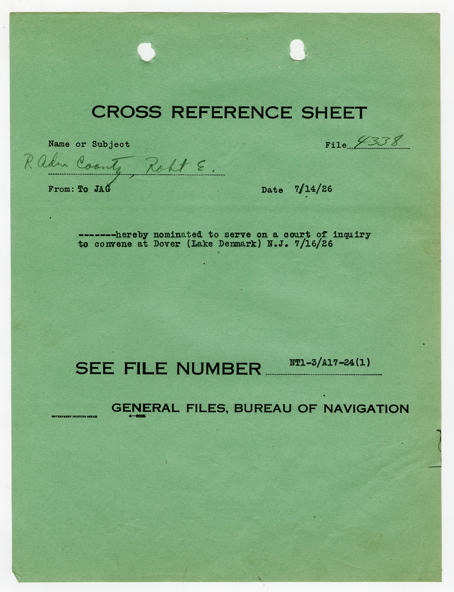 Cross Reference Sheet - July 14, 1926