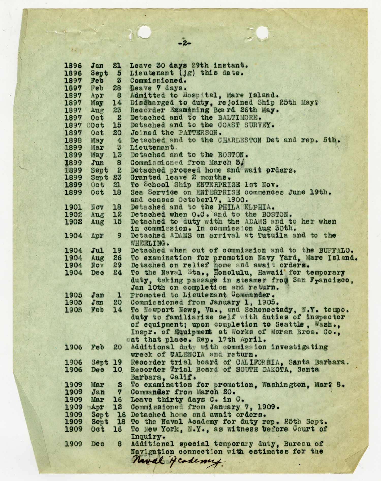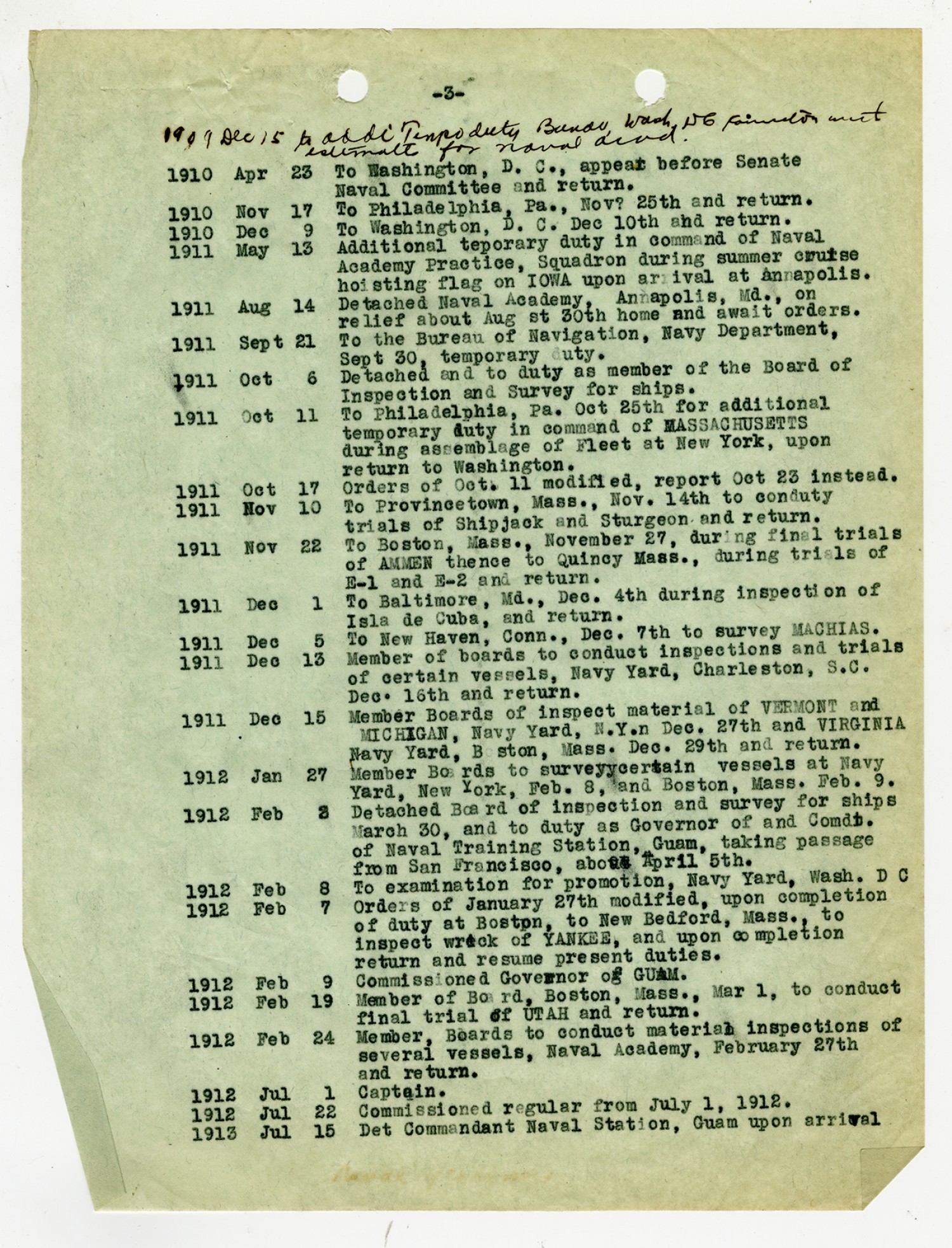 Letter to the Chief of the Bureau of Navigation - December 9, 1931