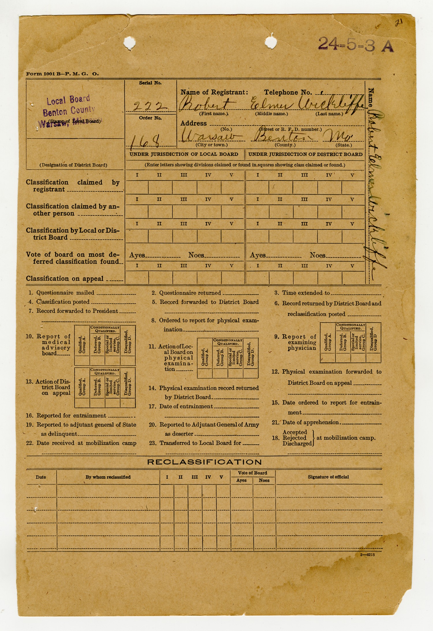 Robert E. Wickliffe Registration Form - n.d.