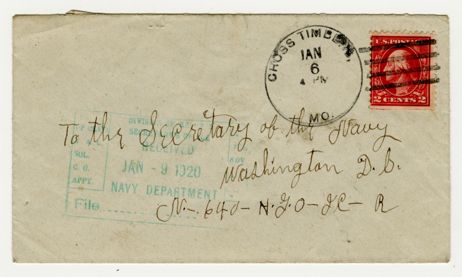 Envelope to the Secretary of the Navy - January 6, 1920