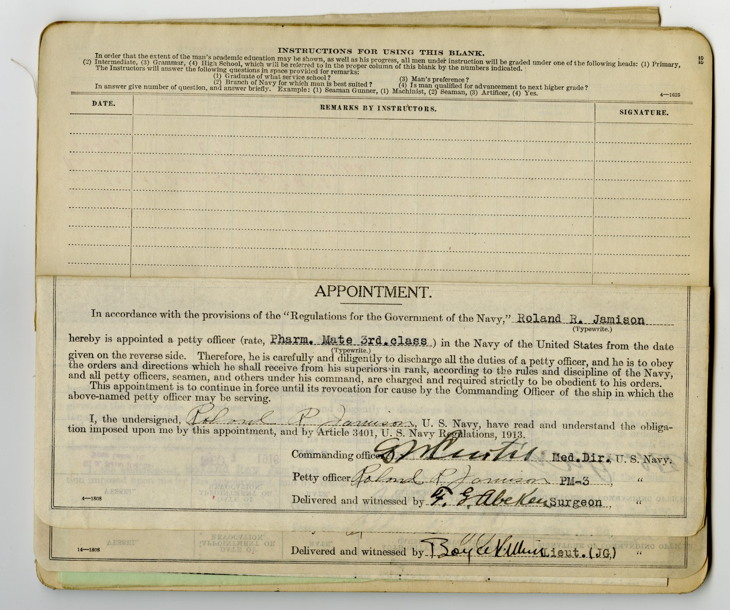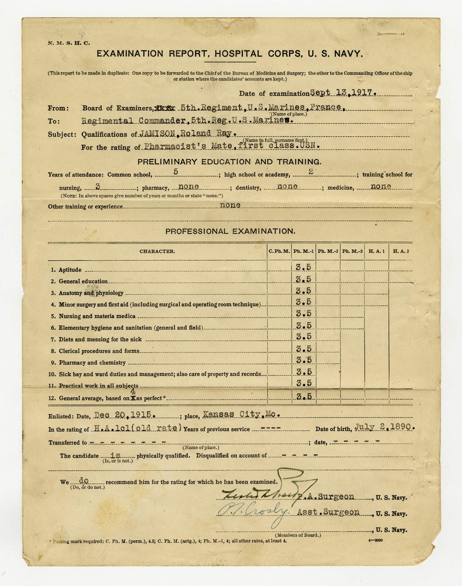 Roland Jamison Examination Report - September 13, 1917